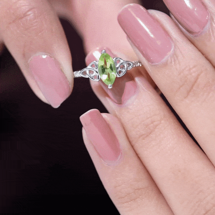 • Sterling Silver: A peridot silver ring is a perfect choice for those who enjoy the beauty of vibrant green gems with a striking sterling silver contrast, highlighting the gem’s lively green color.