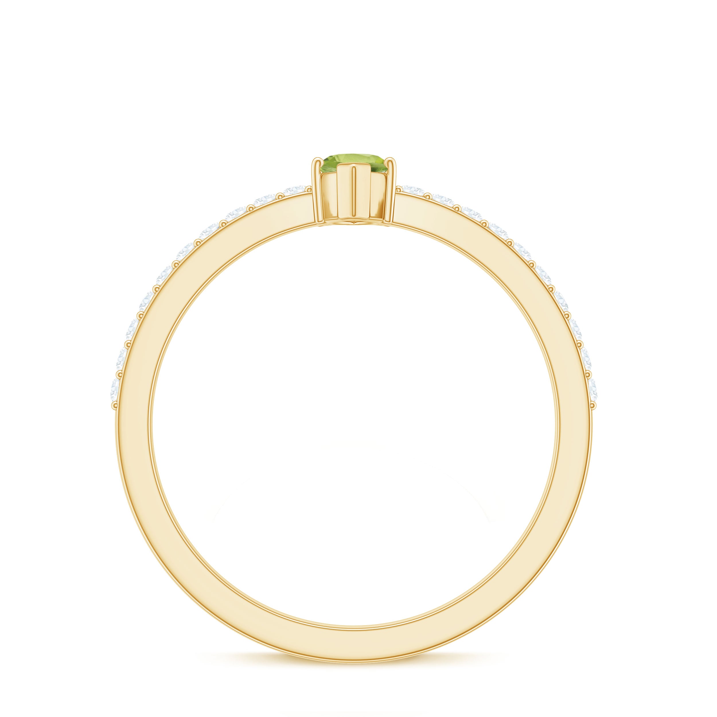 Yellow Gold: A Yellow Gold Peridot Ring exudes a warm yellow hue that makes it a prized possession for those who have a liking for everything luxurious and traditional.