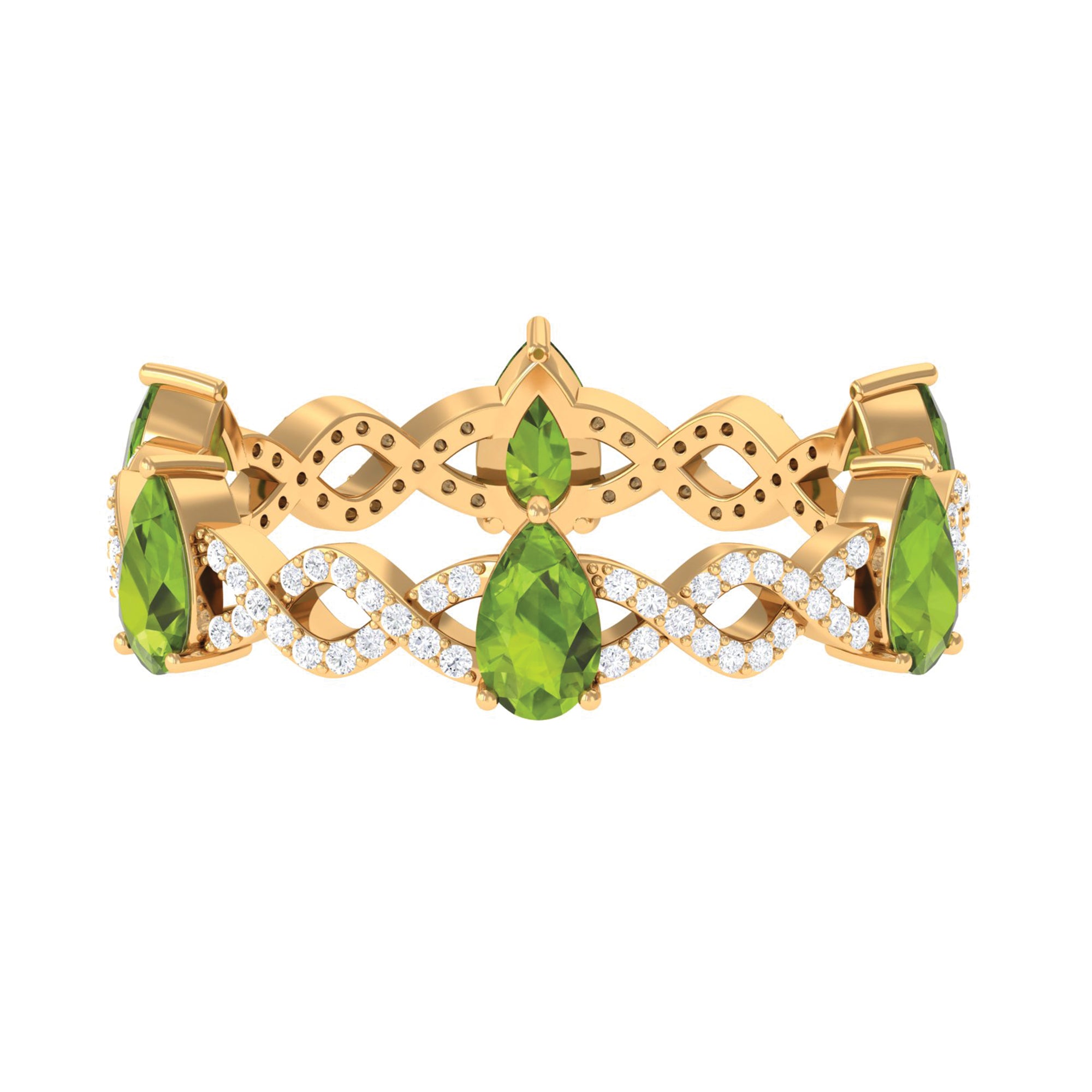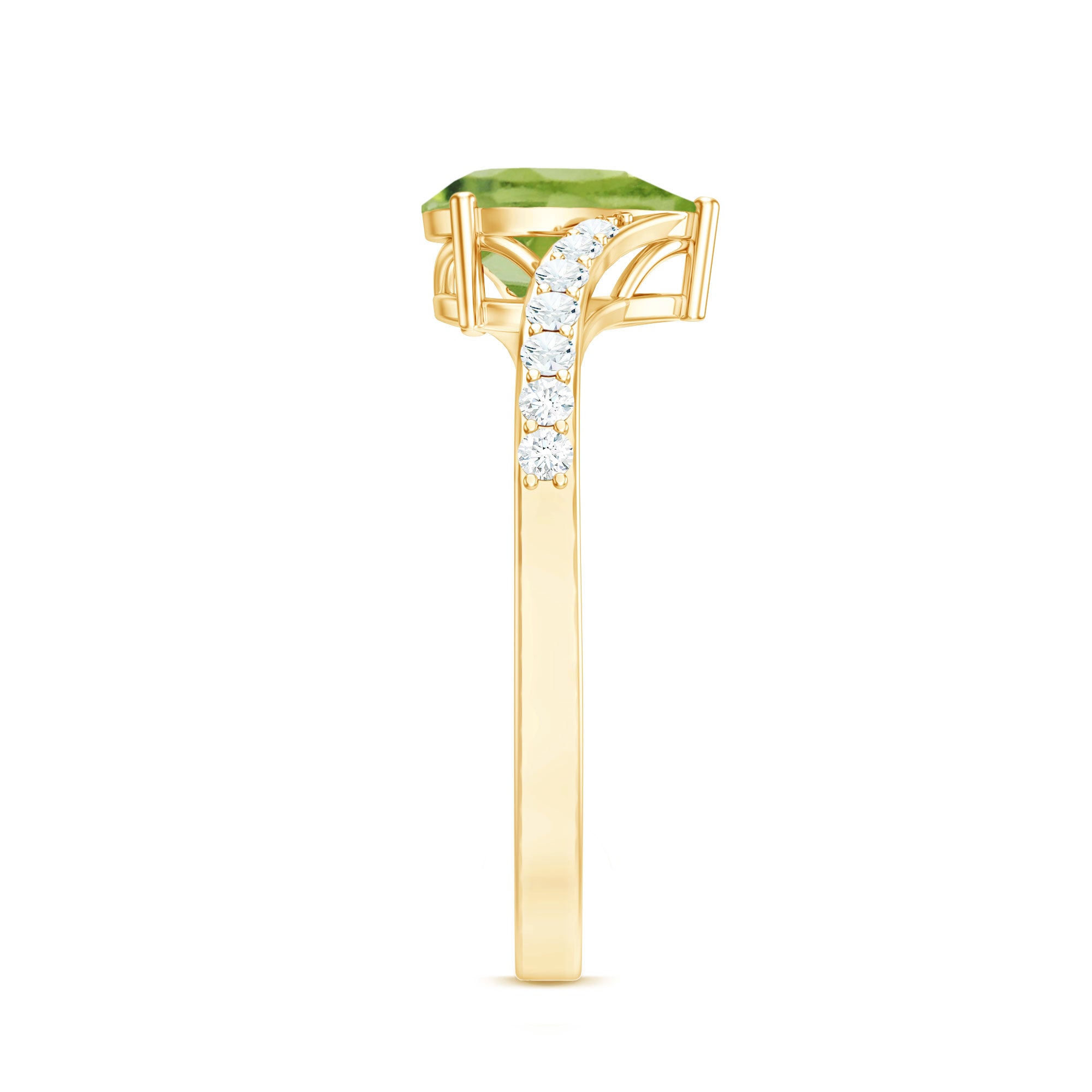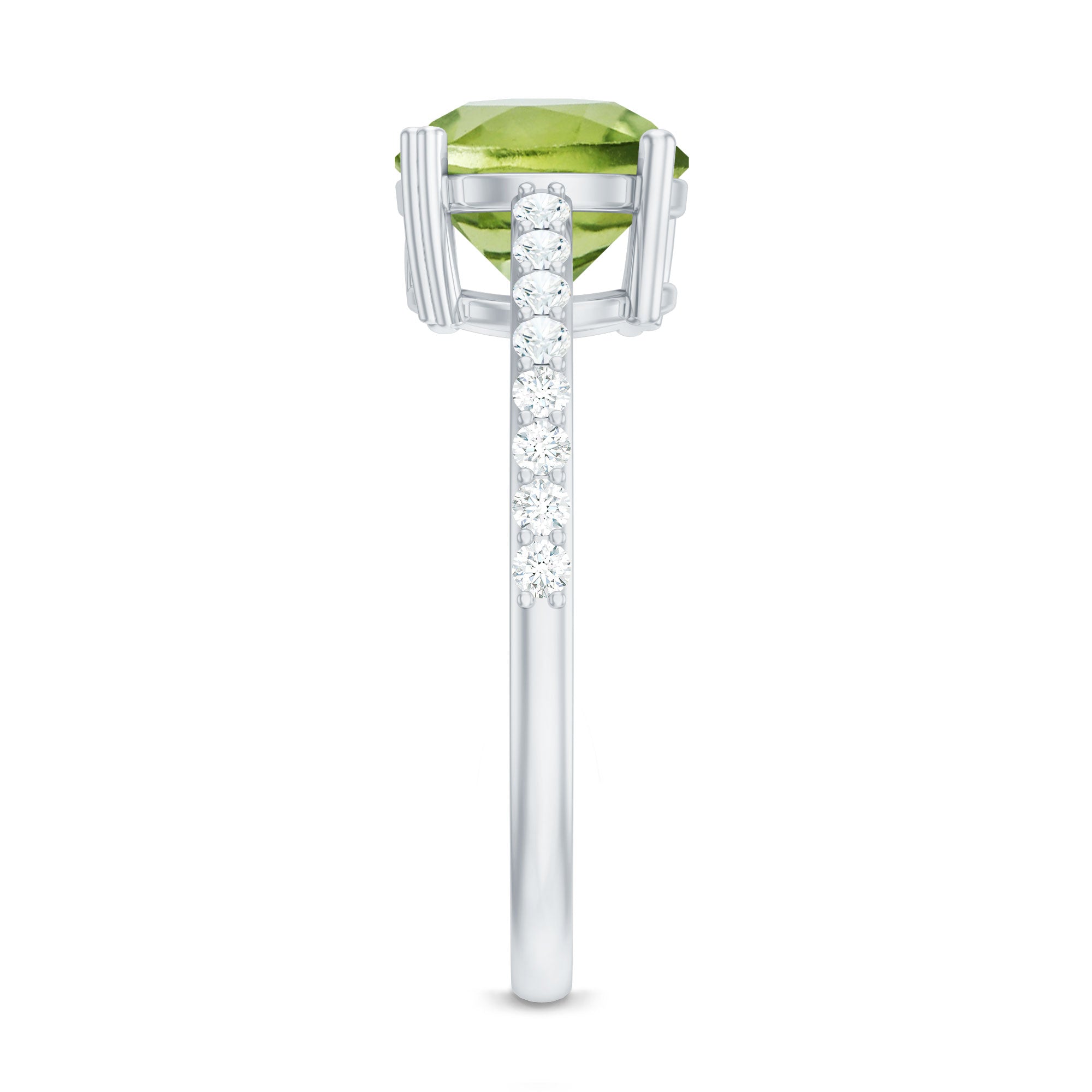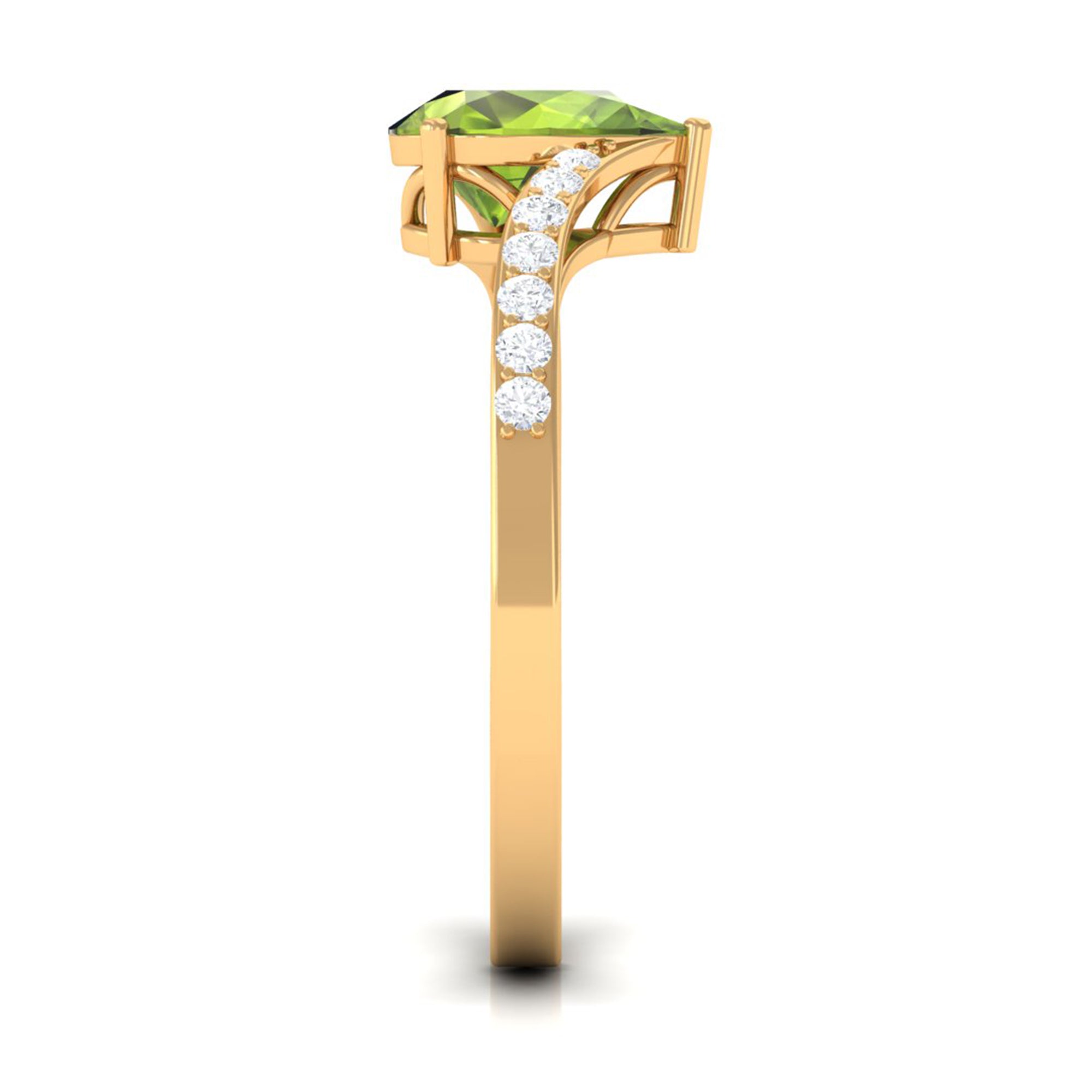 Held in high regard as one of the most classic Peridot Engagement Rings out there, it is characterized by a solo centerpiece of Peridot that steals the limelight. It can also be labeled as the most versatile ring style since the Peridot Solitaire offers you a sea of options in terms of aesthetics, be it the classic Round Peridot Rings offering a traditional aesthetic, the ones fashioned with Pear, Marquise, and Princess exuding an unconventional touch, or Asscher and Emerald Cut Peridot Rings for that perfect vintage vibe.