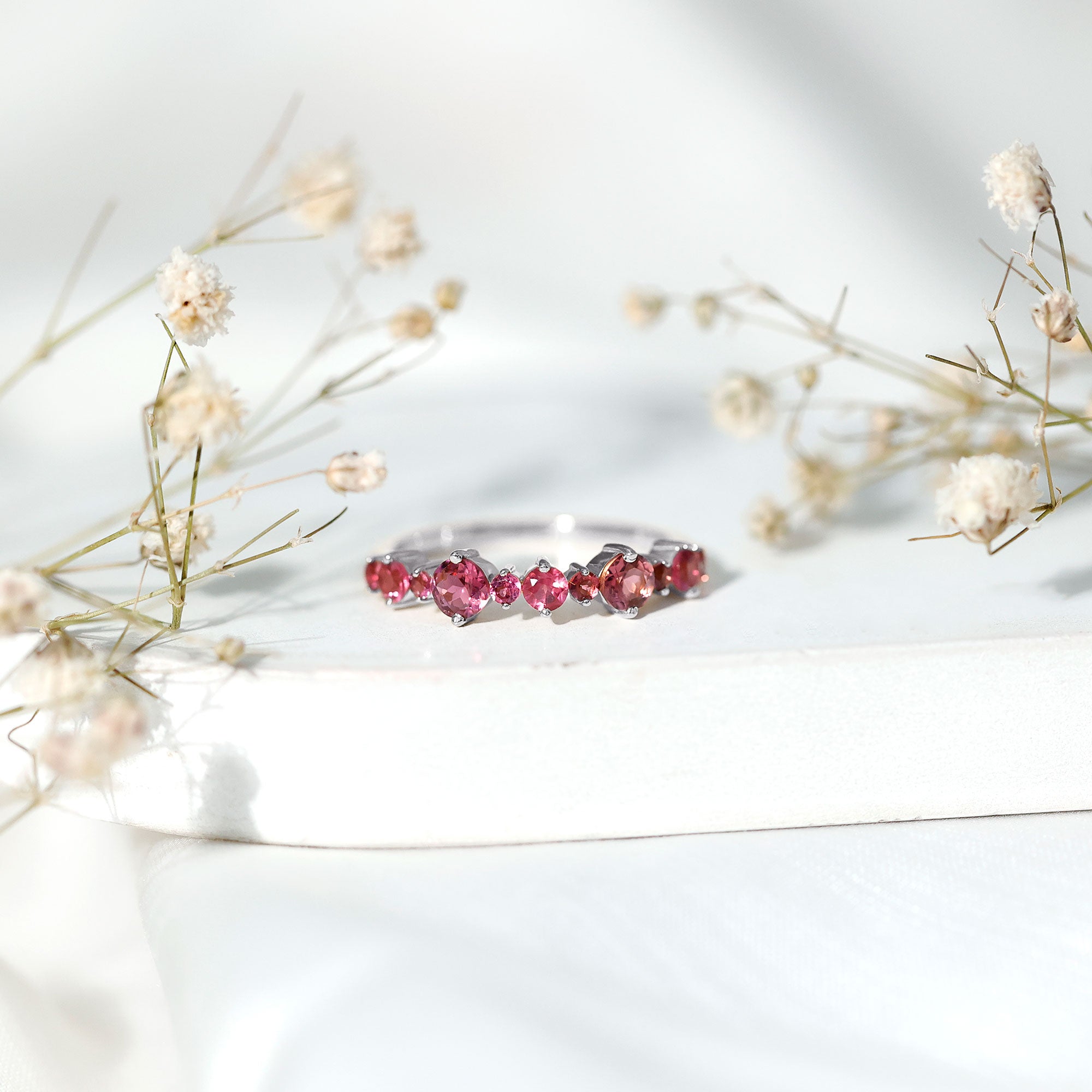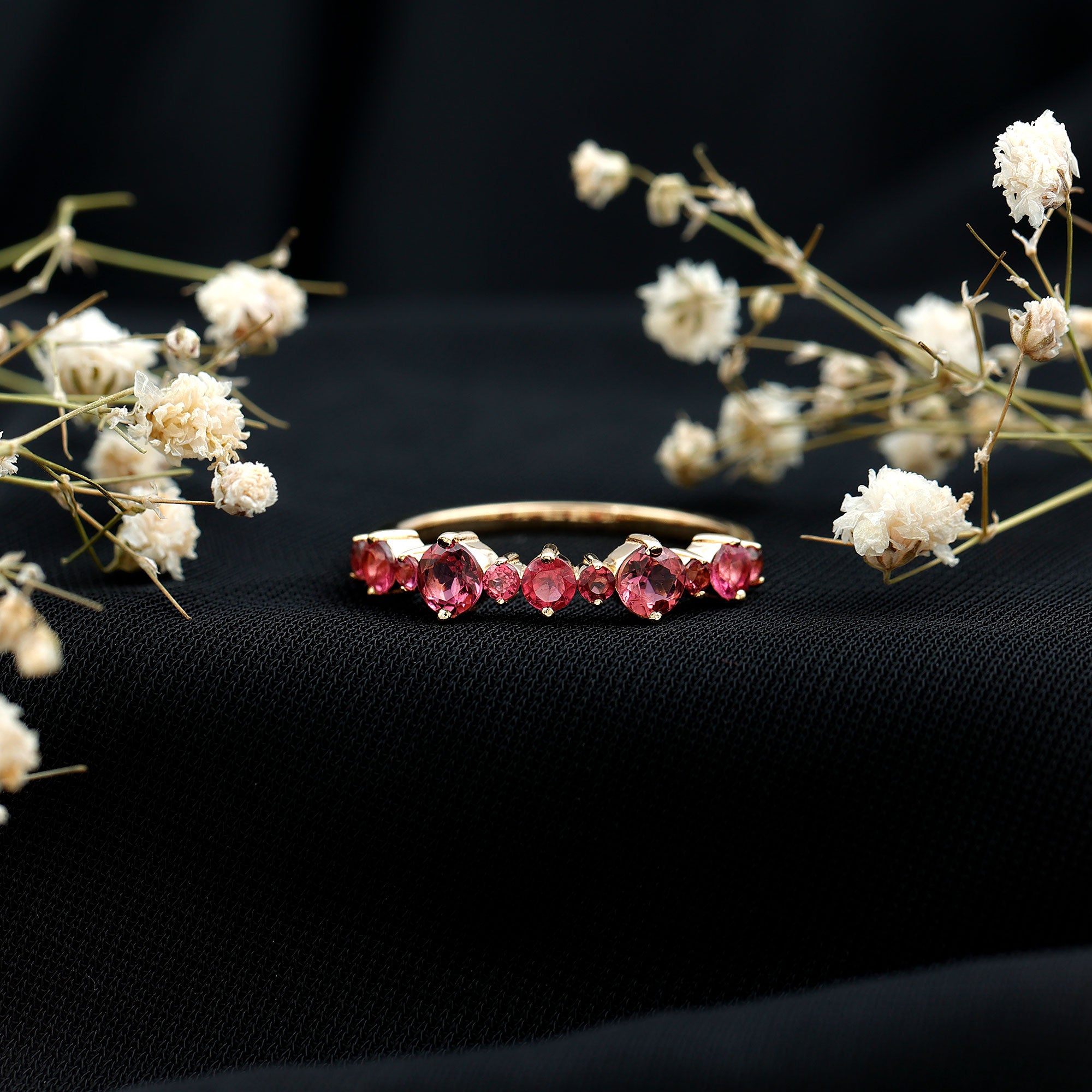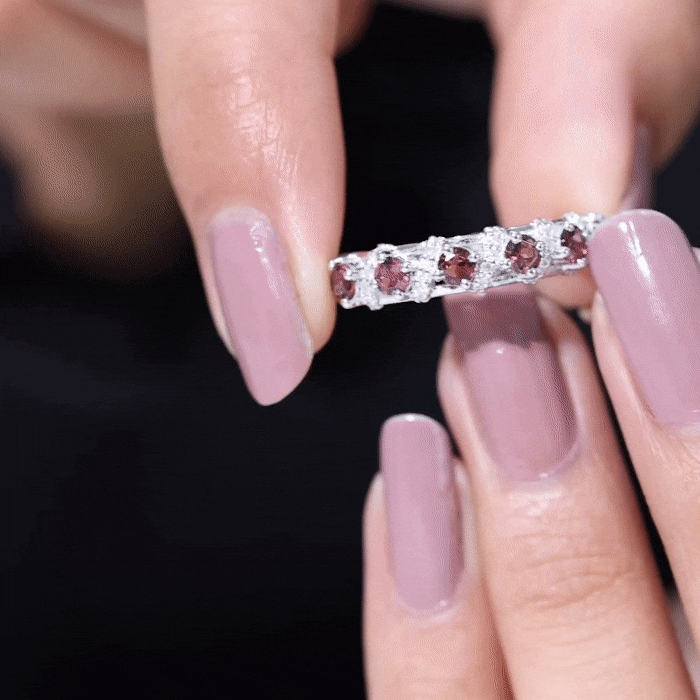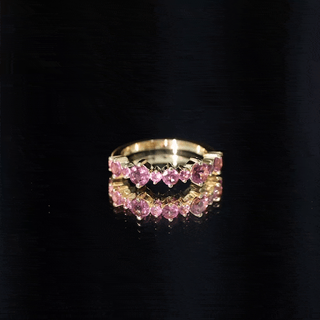 A Pink Tourmaline Eternity Ring is adorned with identically sized Pink Tourmaline all over the band. If you can’t get enough of the rosy pink hue of this October Birthstone, the good news is that an Eternity Ring is all about it. Besides that, it carries a meaning just as romantic as its appearance. It commemorates the kind of love that is meant to last a lifetime, which also makes it a meaningful Pink Tourmaline Wedding Ring.