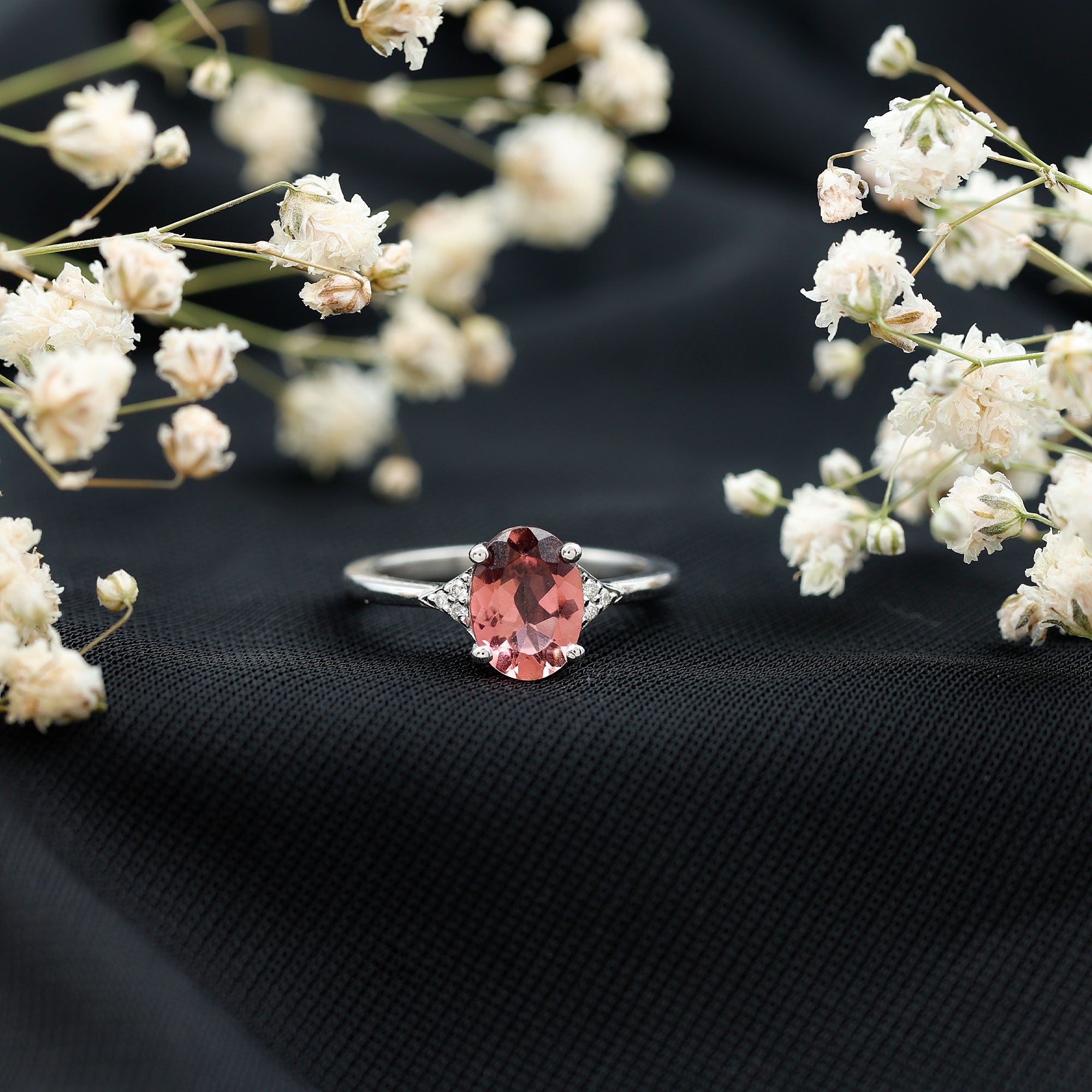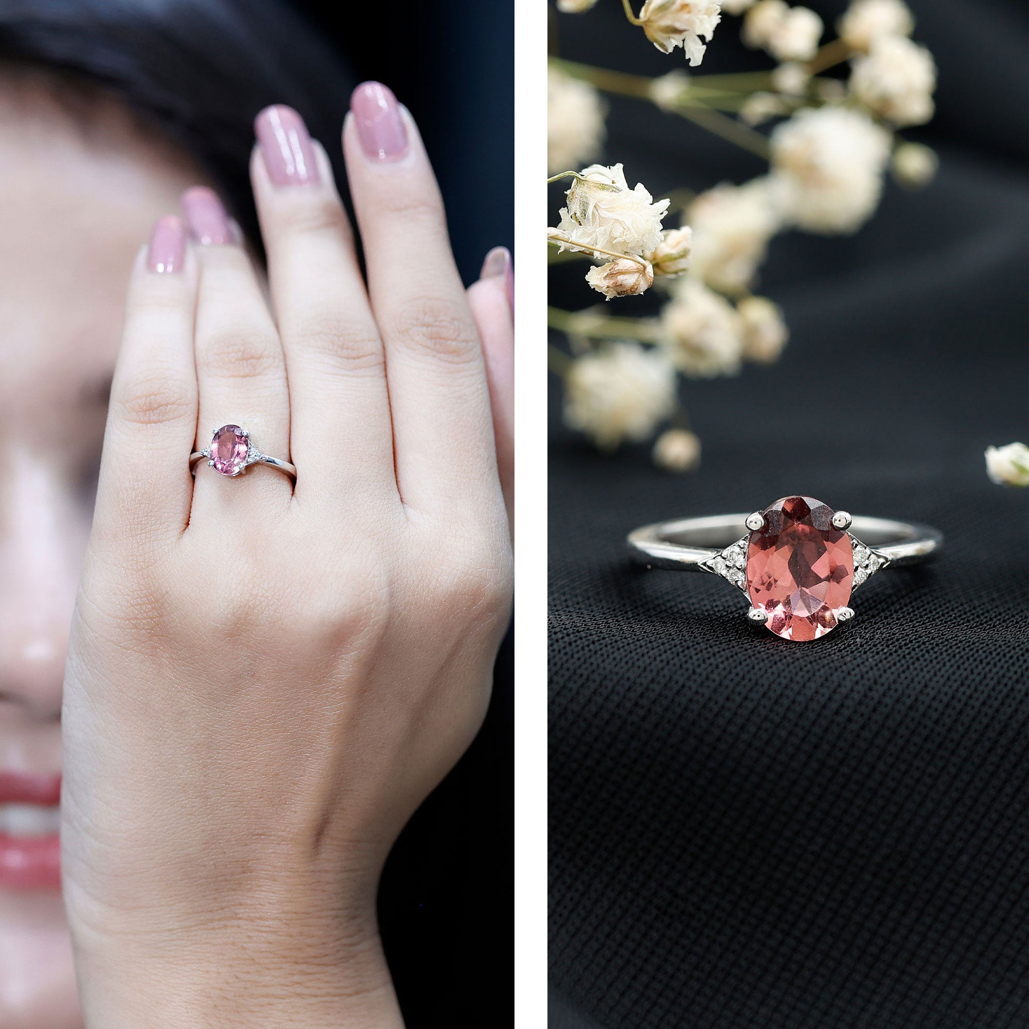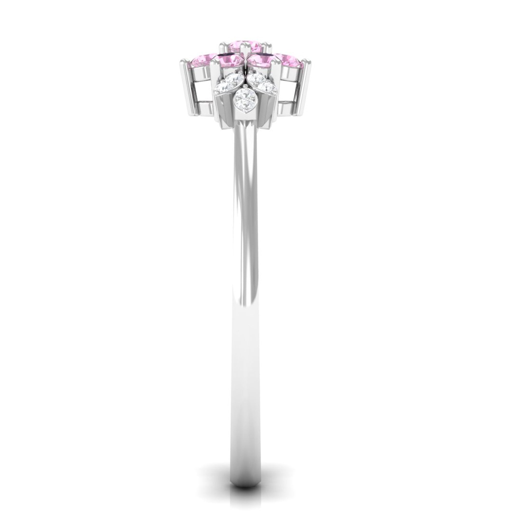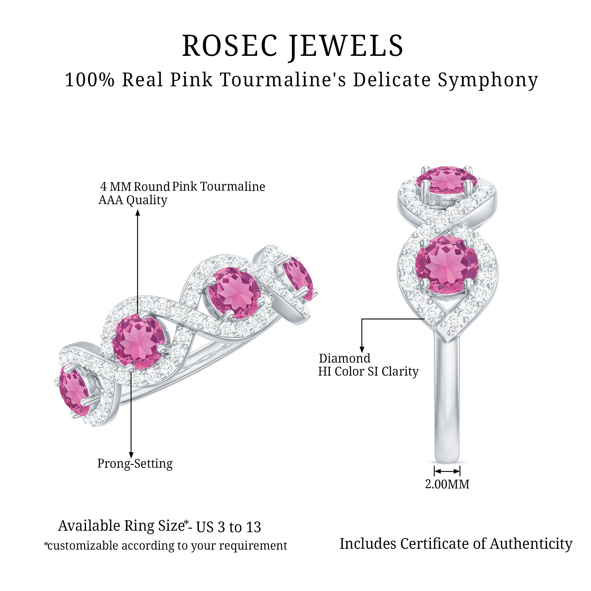 Unlike its specific symbolism, a Pink Tourmaline Promise Ring isn’t defined by a set style. It could be a Classic Pink Tourmaline Solitaire Ring that is relatively understated thanks to its dainty size of 4 MM. Or to lend a decorative visual appeal, it could be accentuated with side-stones of Diamond/Moissanite, floral or nature-inspired detailing, or even meaningful infinity motifs.