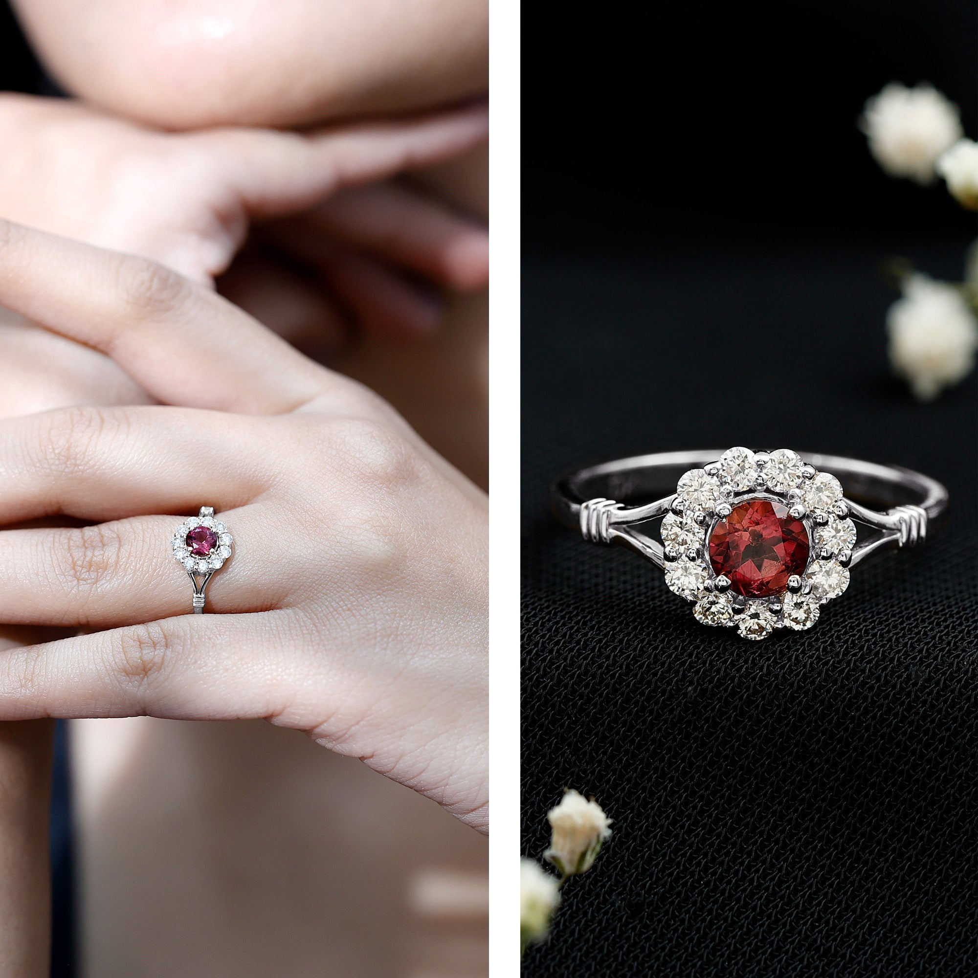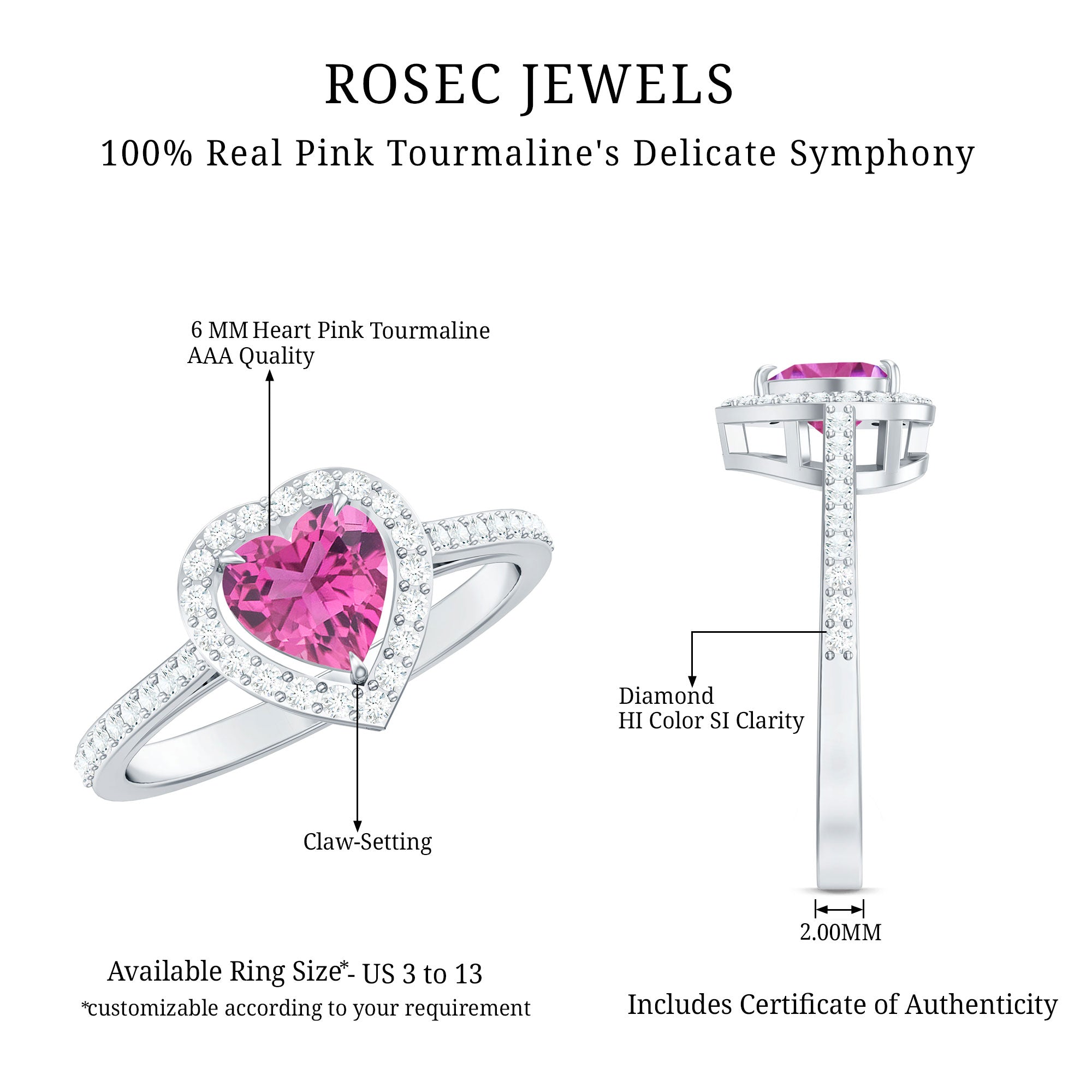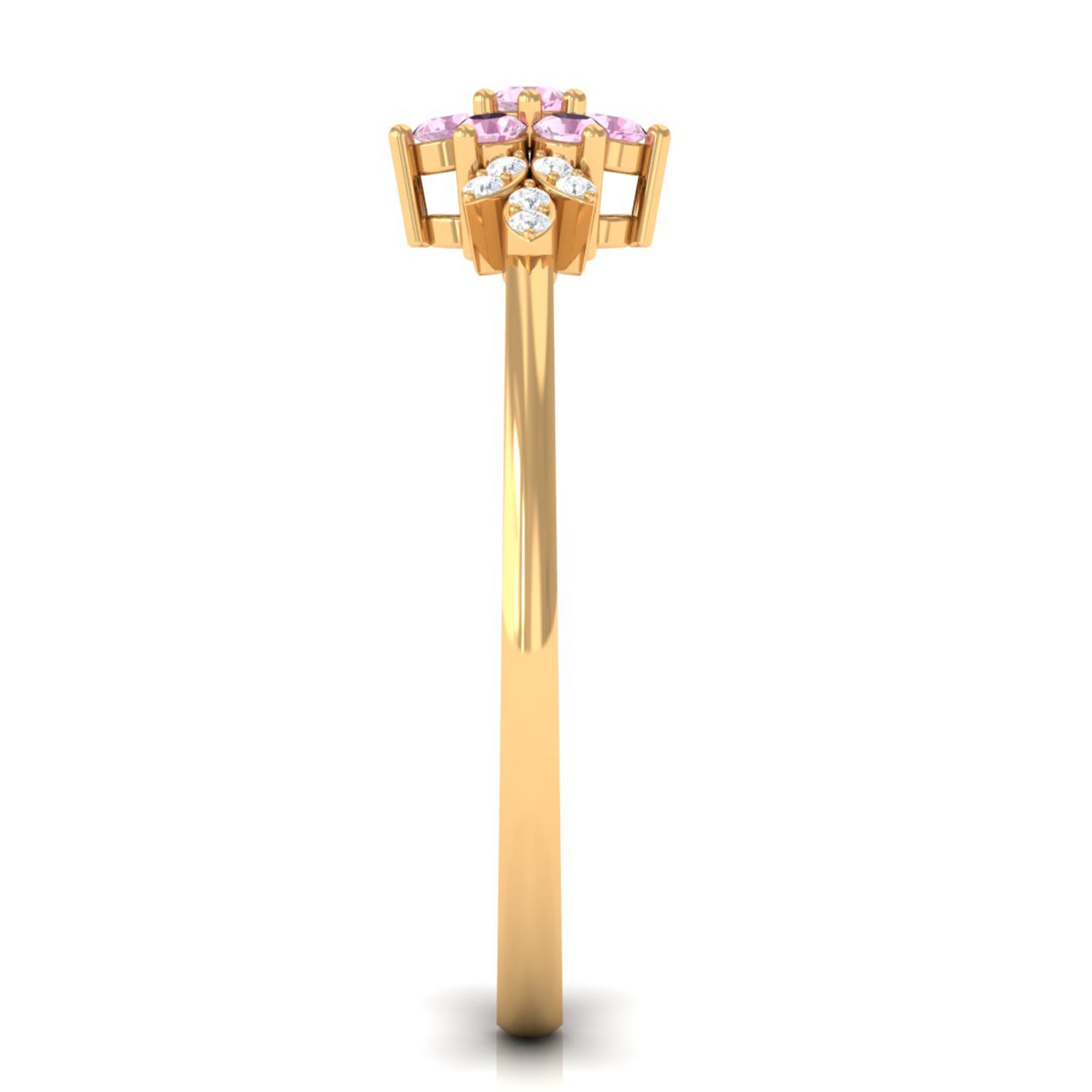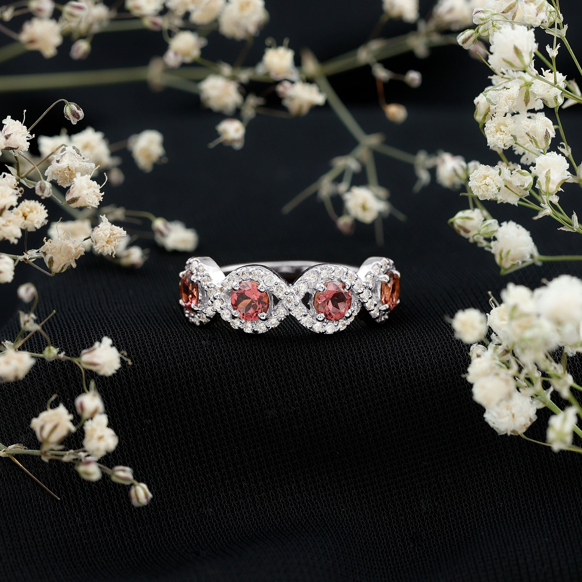 Unlike its specific symbolism, a Pink Tourmaline Promise Ring isn’t defined by a set style. It could be a Classic Pink Tourmaline Solitaire Ring that is relatively understated thanks to its dainty size of 4 MM. Or to lend a decorative visual appeal, it could be accentuated with side-stones of Diamond/Moissanite, floral or nature-inspired detailing, or even meaningful infinity motifs.