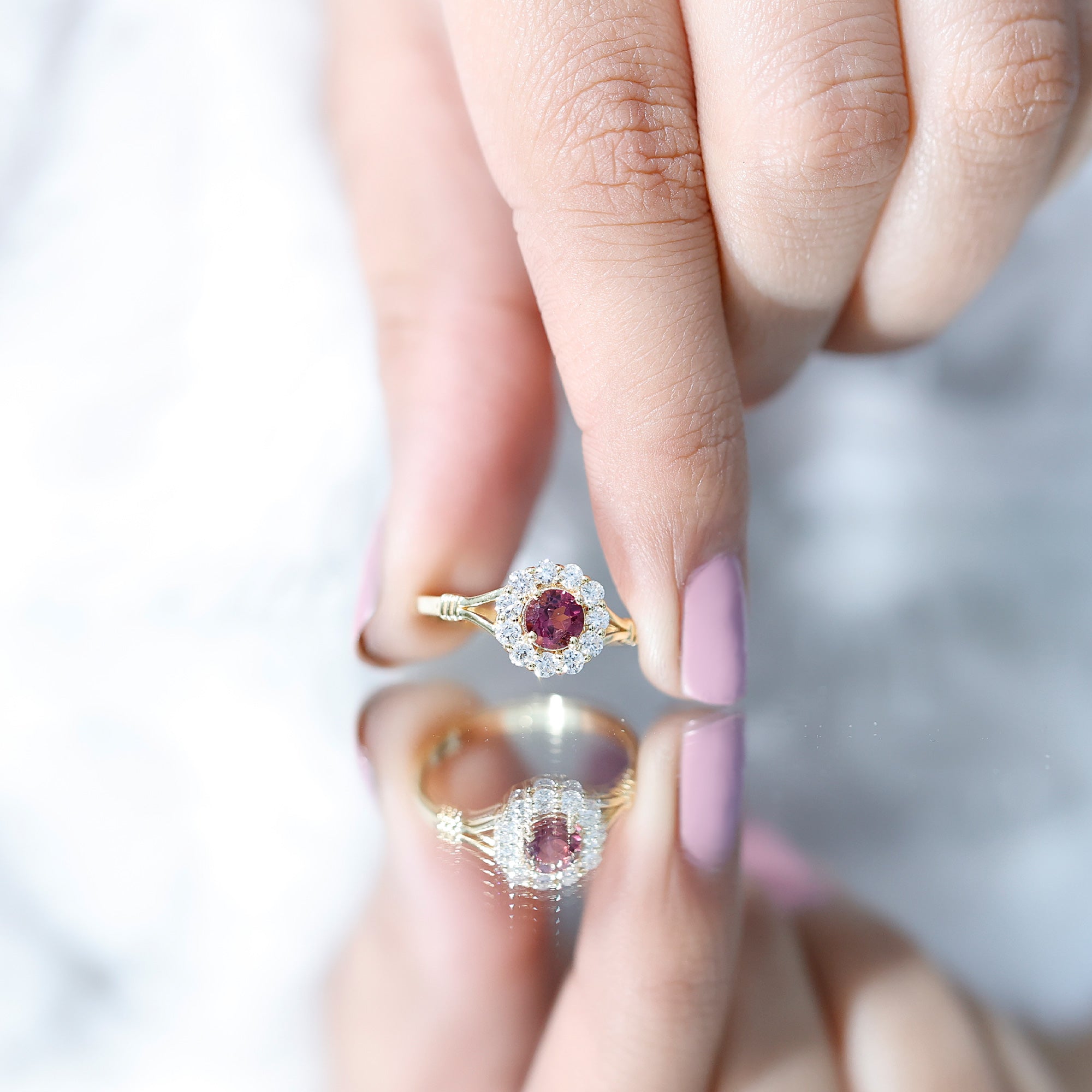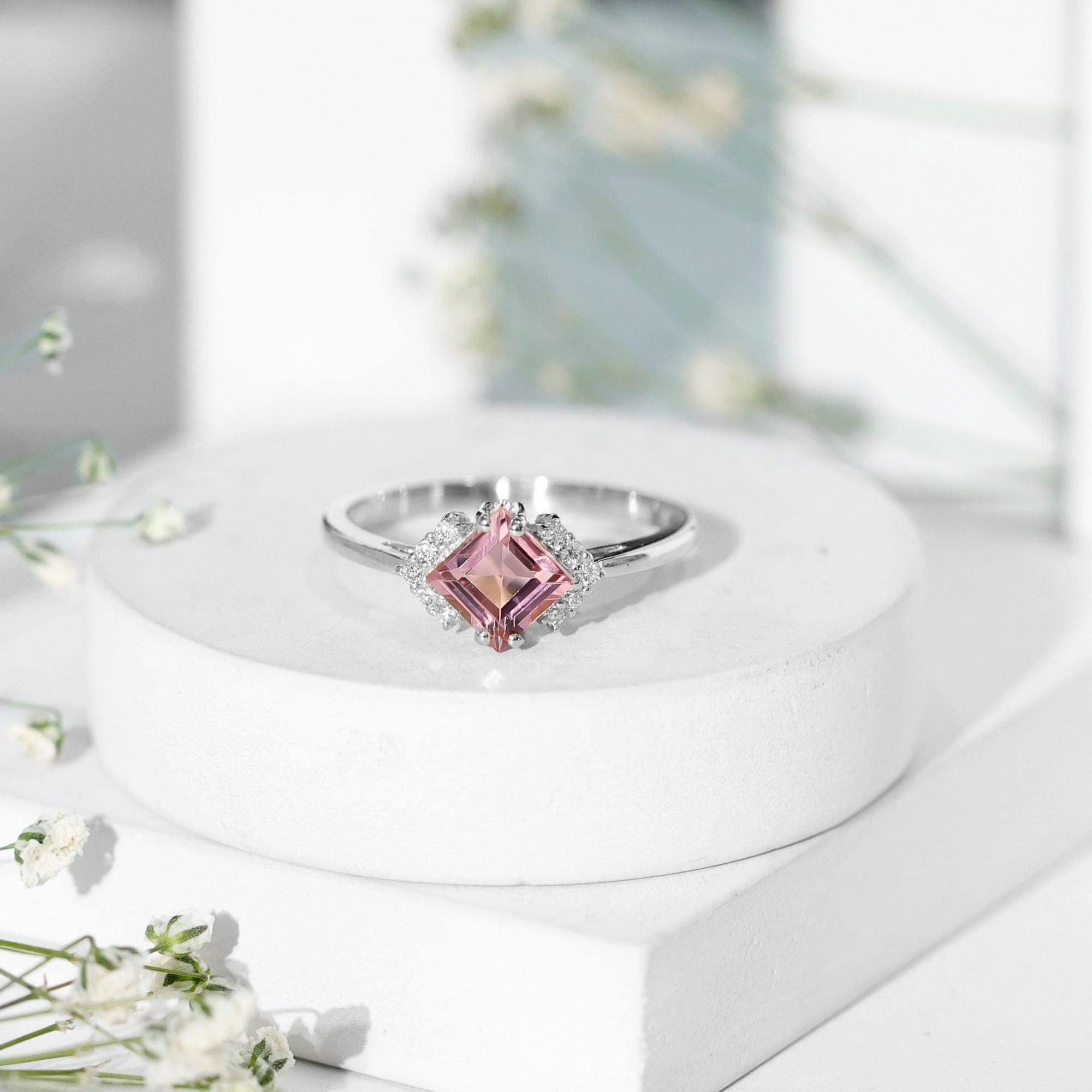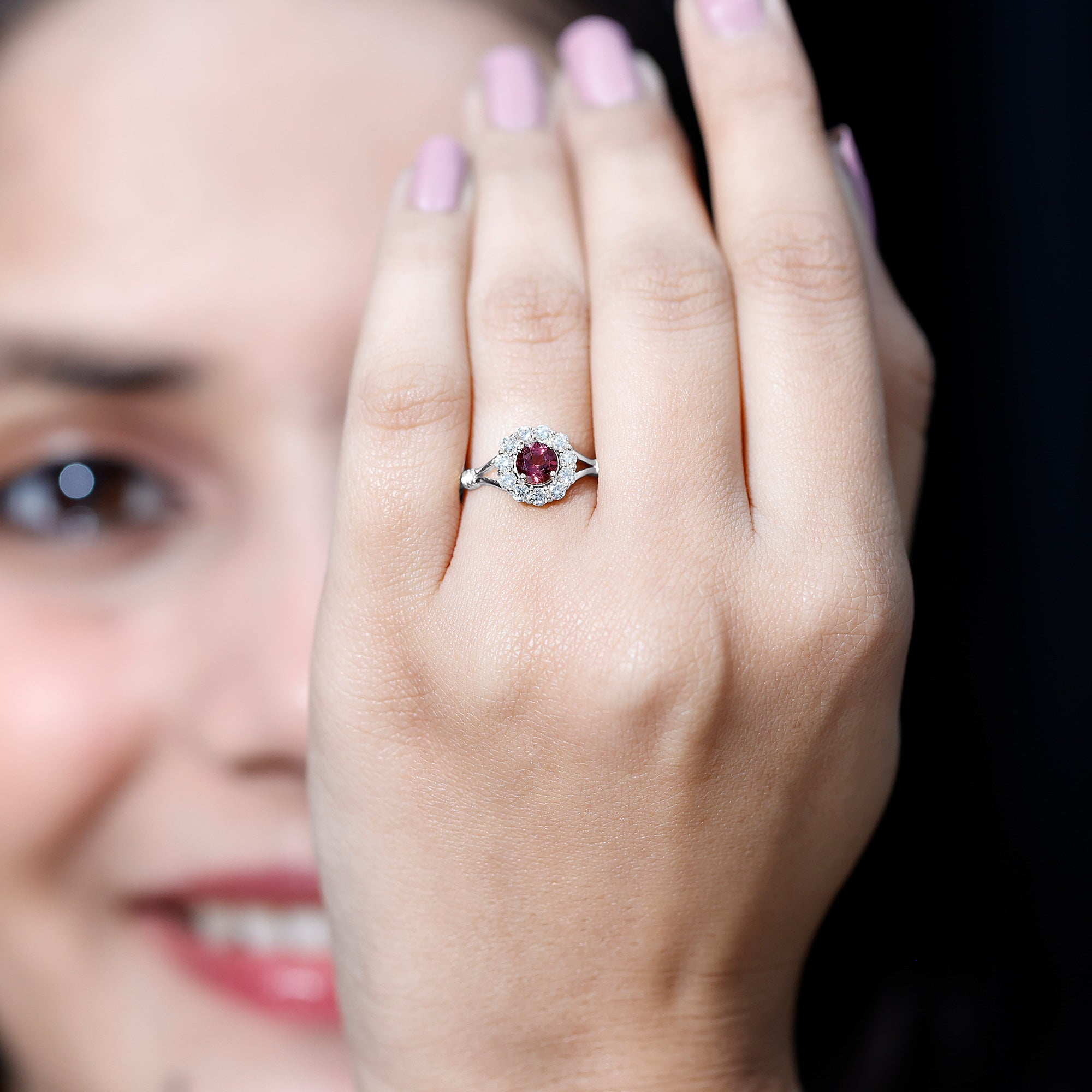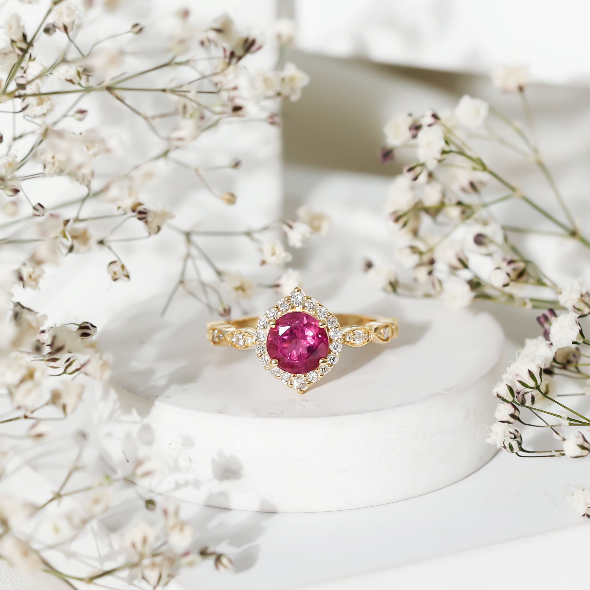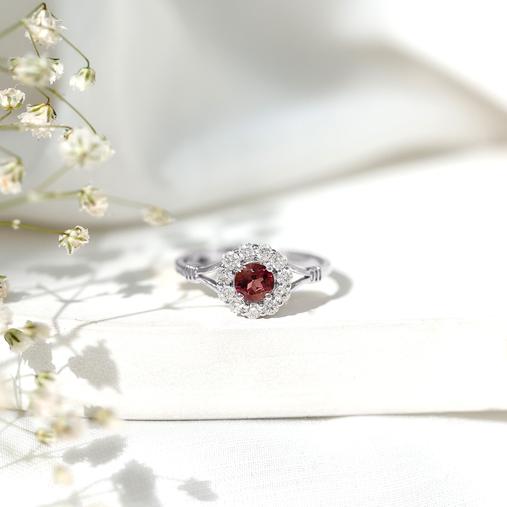 Pink Tourmaline Halo Ring