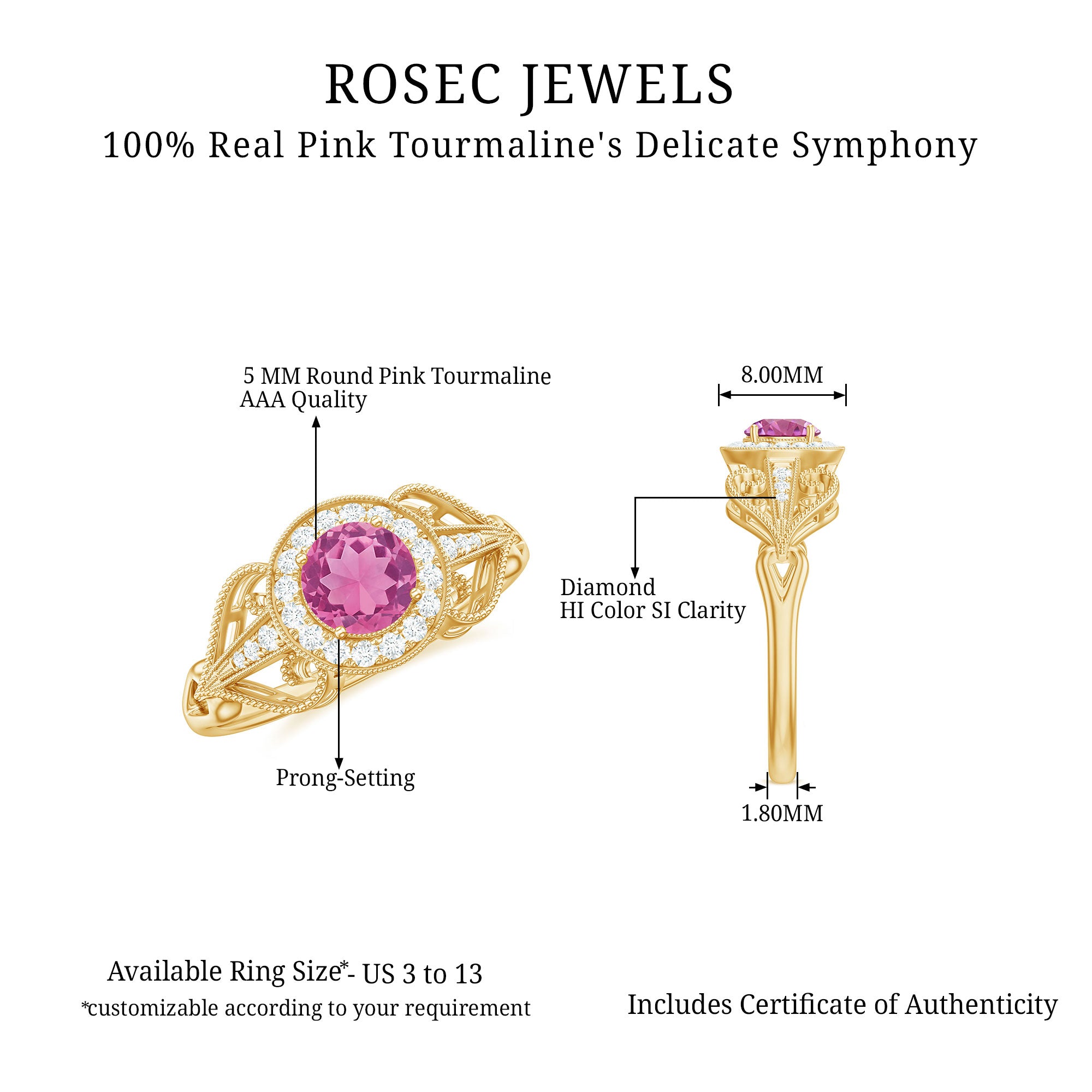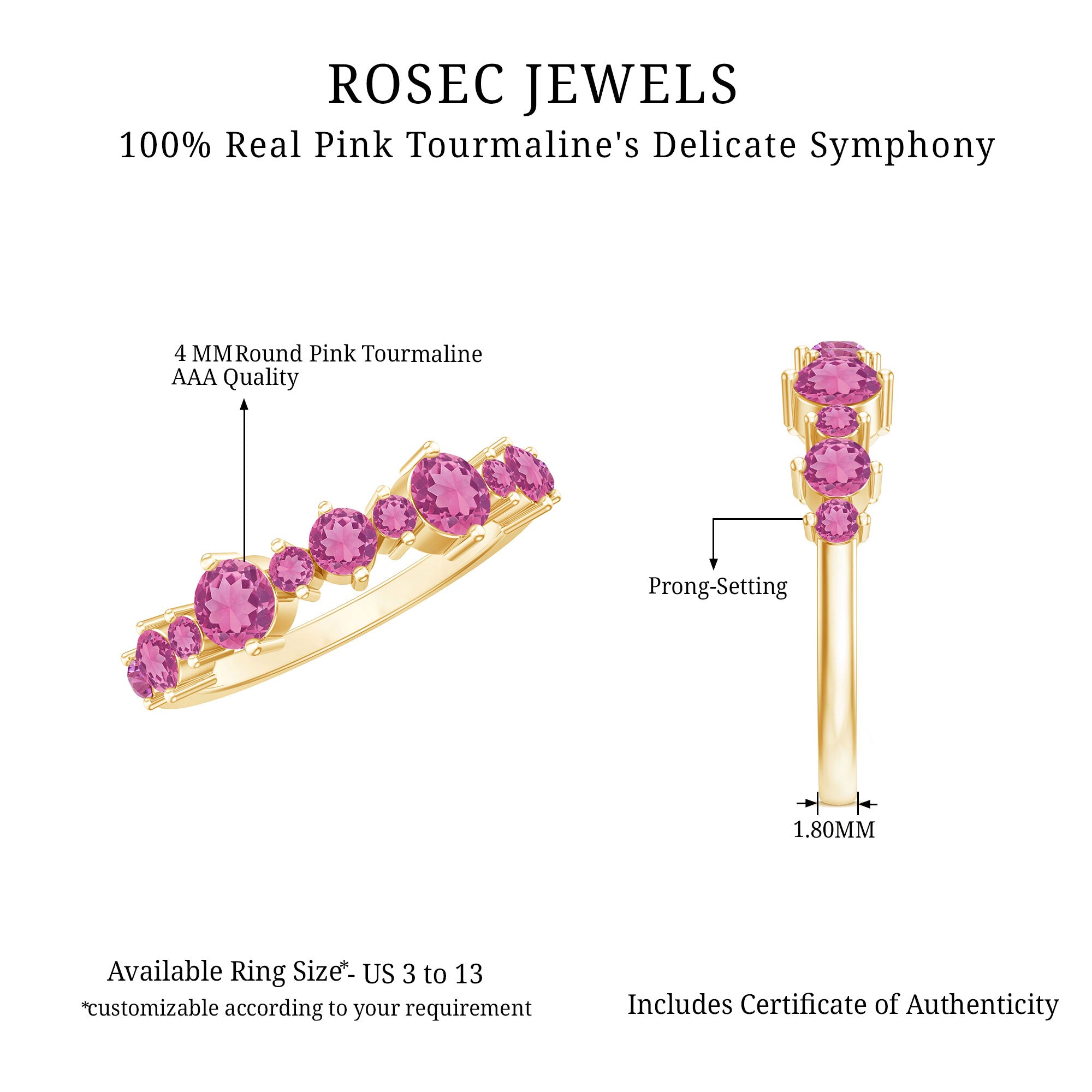Also, did we tell you? Apart from offering a versatile collection, we can also breathe life into your dream designs with our Custom Pink Tourmaline Rings.