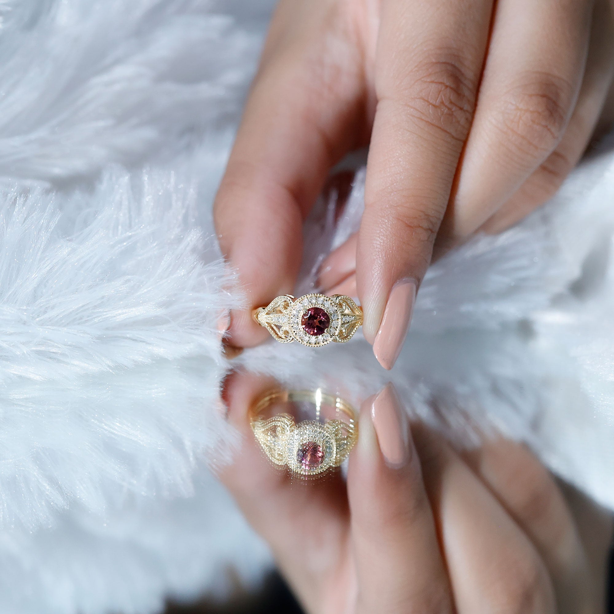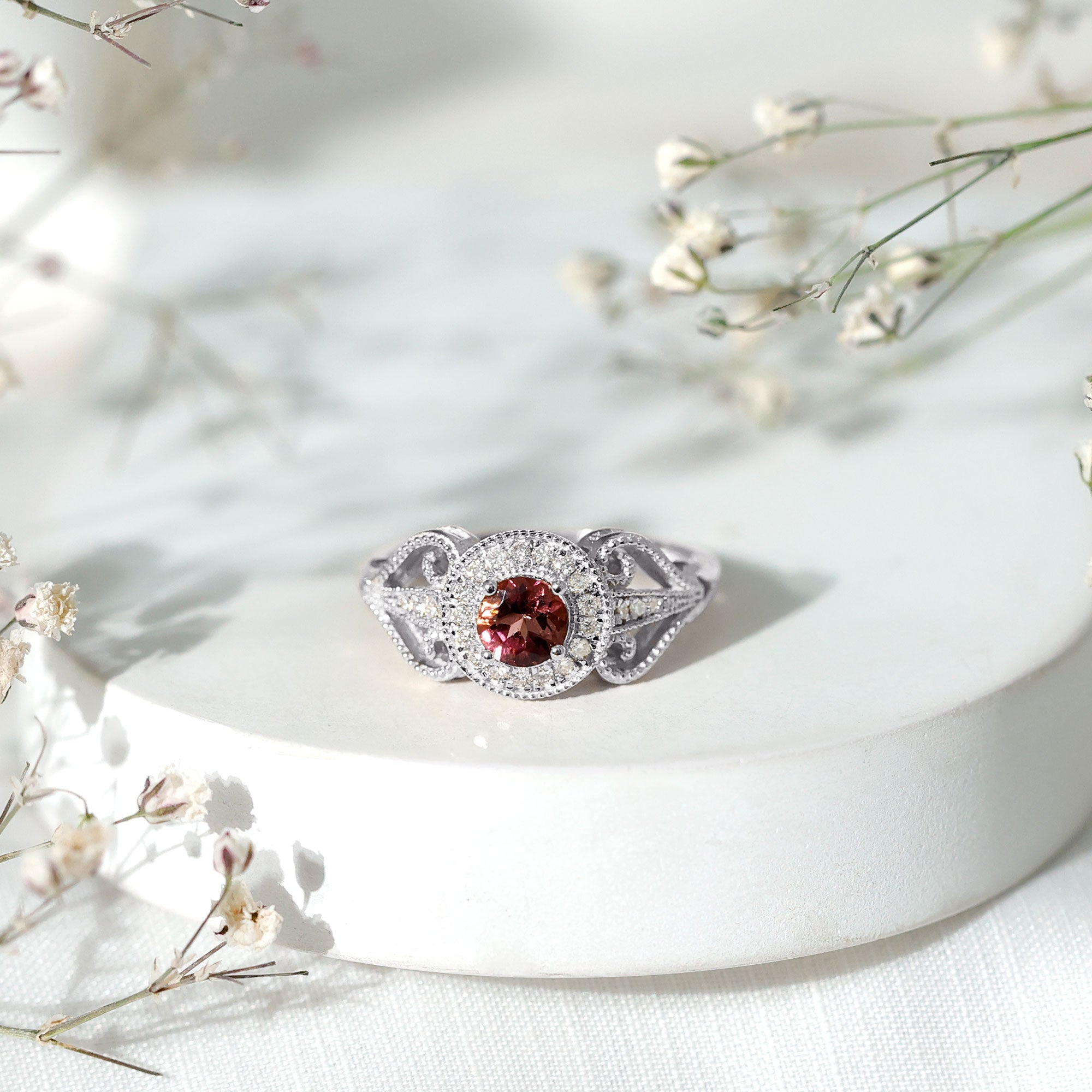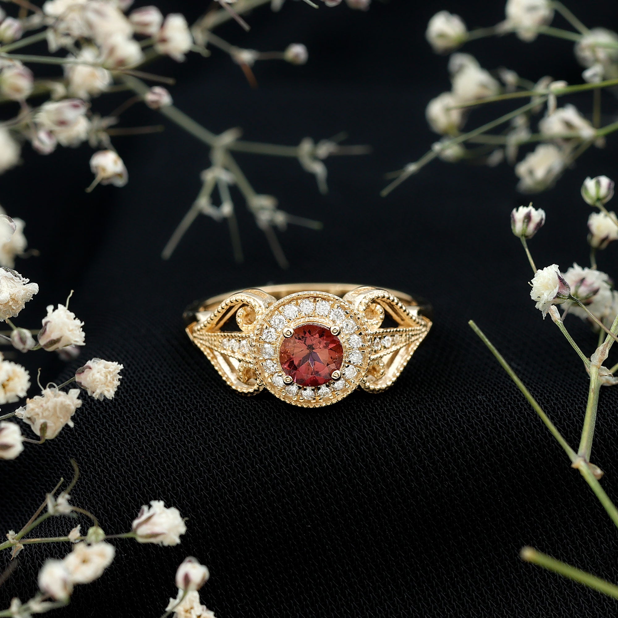A vintage-inspired Pink Tourmaline Ring is meticulously crafted with old-world designs from Edwardian, Art Deco, and Victorian Eras. It features antique artwork that breathes life into iconic filigree, milgrain detailing as well as abstract patterns. Besides that, thanks to its old-world charm, it looks close to a Pink Tourmaline Heirloom Engagement Ring that has been passed on for generations.