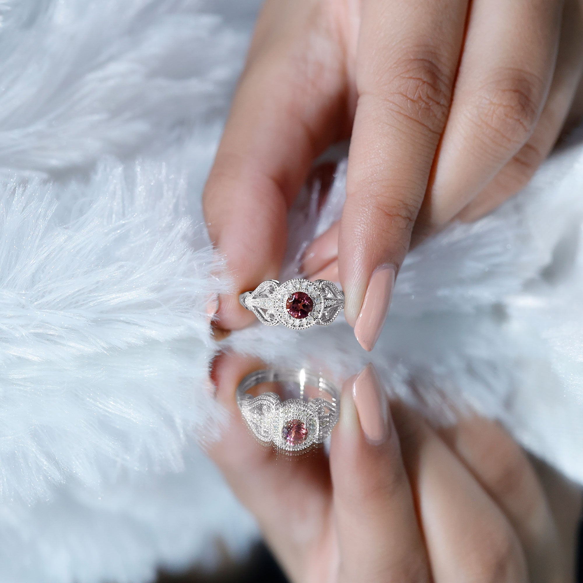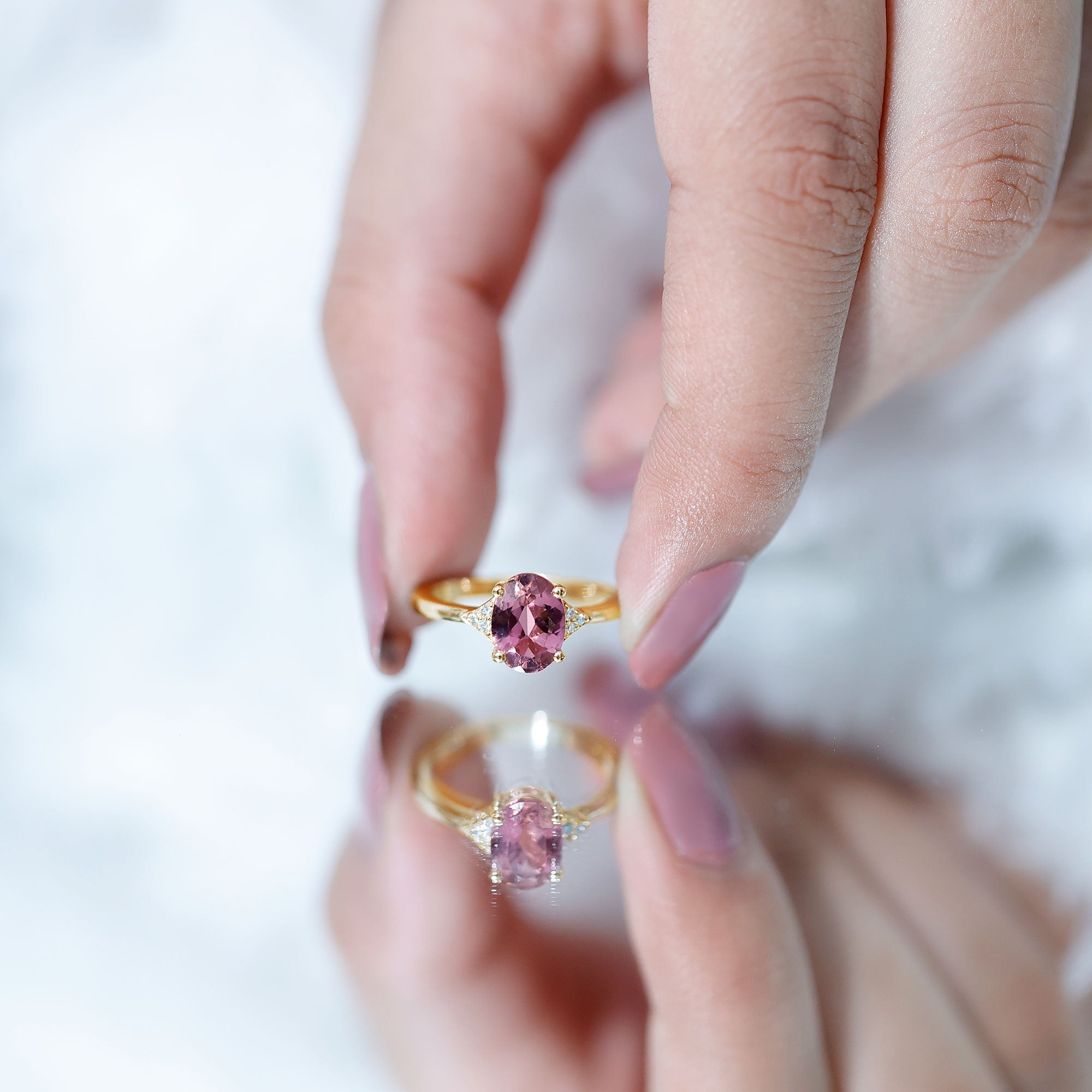 Apart from that, don’t forget to take a trip to a professional jeweler for a thorough inspection and cleaning of your ring every once a year. Make sure you’re storing it away from harder gemstones (preferably in a velvet case) to avoid any hard blows. Also, remember to keep your gemstone as far away from chemically-loaded products (soaps, shampoos, makeup for instance) as possible to keep the bright pink color of your Pink Tourmaline from fading.