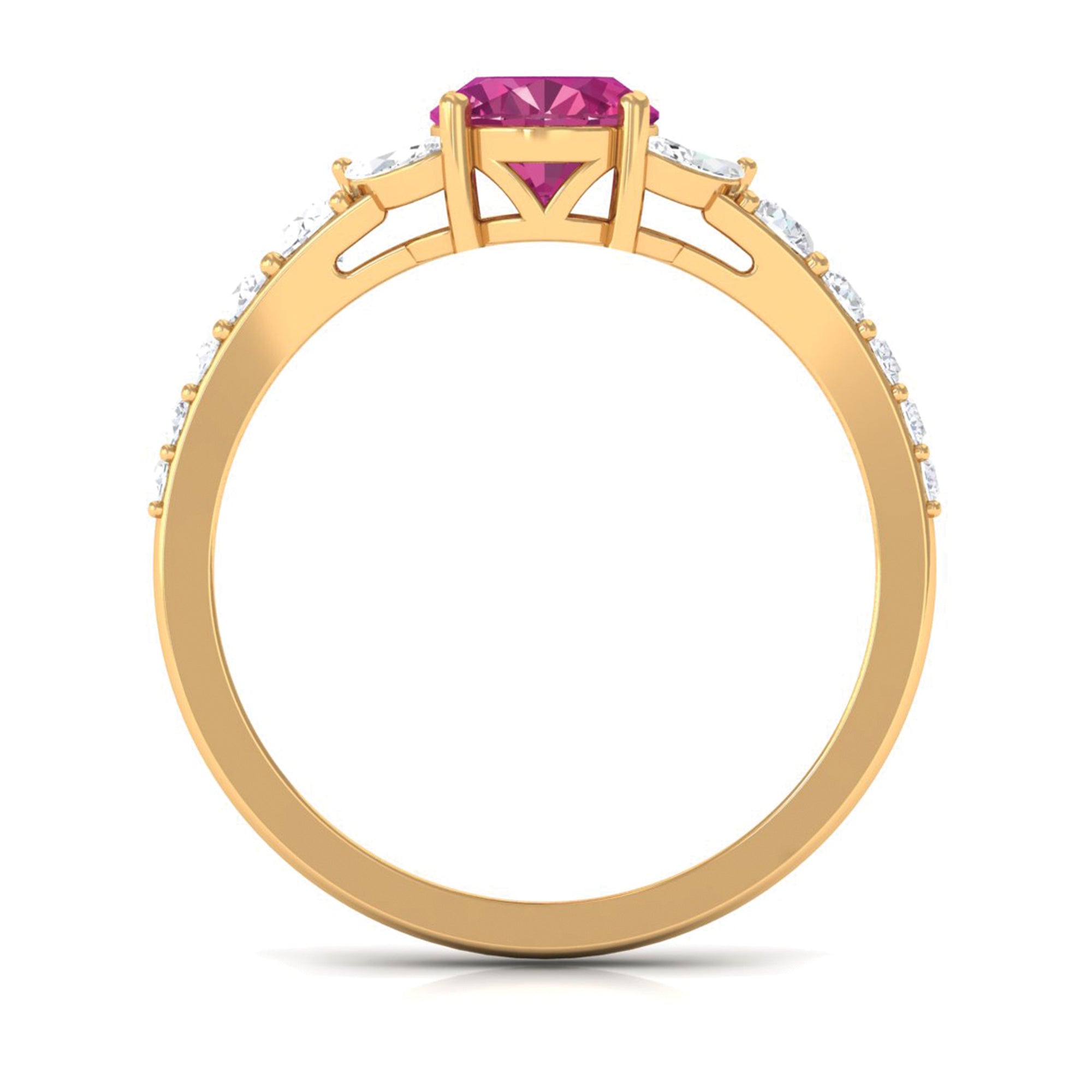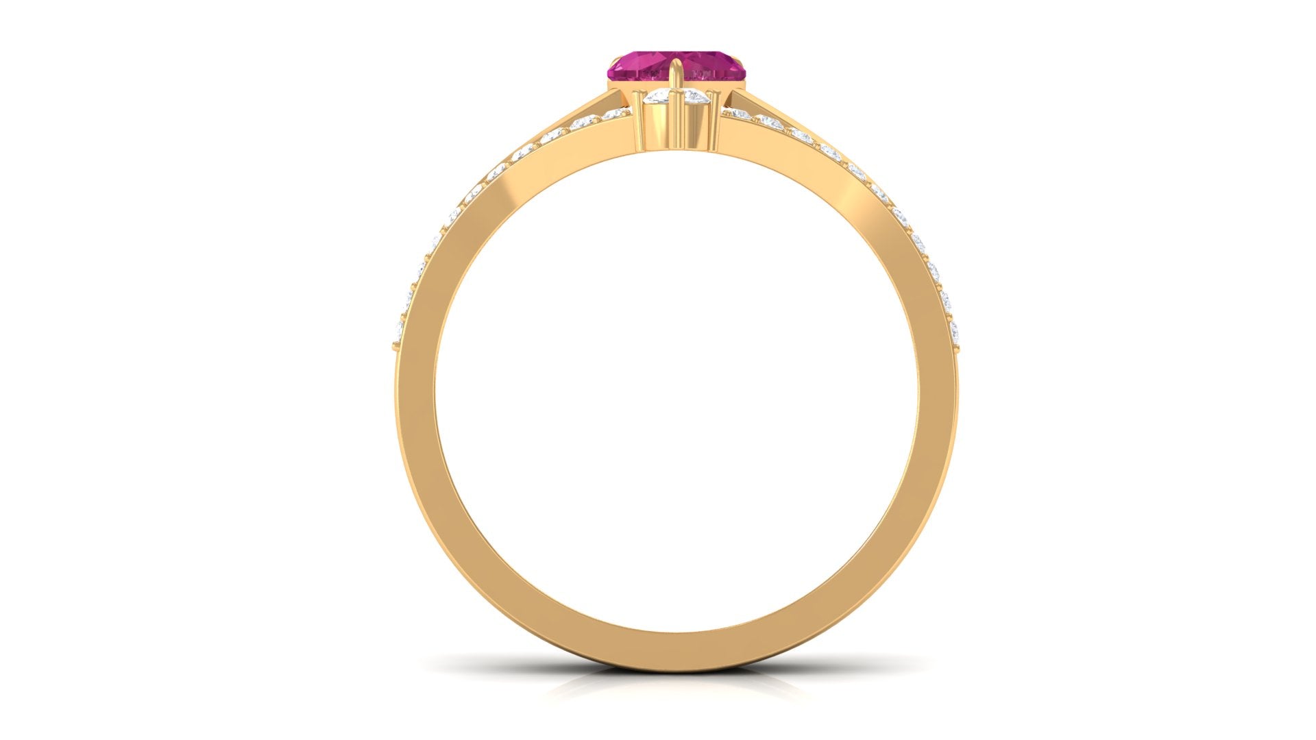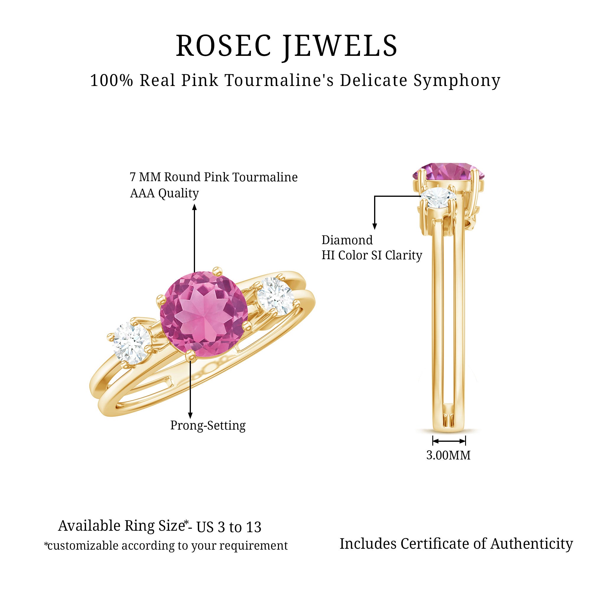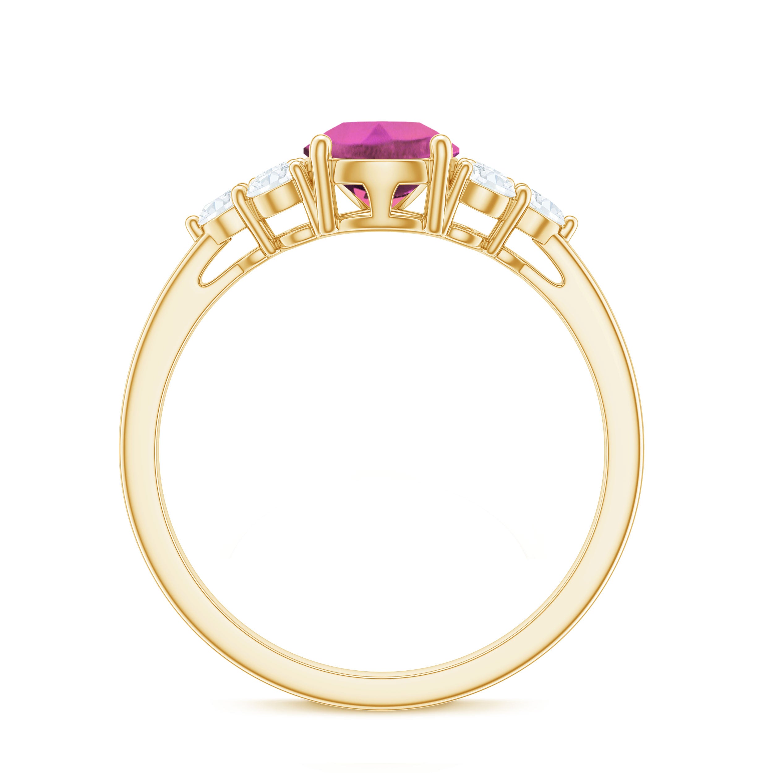 Crafted to let the Center Stone of Pink Tourmaline stand out all solo, this Solitaire Ring is any day a conventional choice of accessory. The size of Pink Tourmaline here isn’t any less than 6 MM, which is what helps it flaunt its beauty at best. It also makes for one of the most classic Pink Tourmaline Engagement Rings. The many shapes of Pink Tourmaline Solitaire speak to many aesthetics. If you like to stick to basics, nothing better than a Round Pink Tourmaline Ring. However, if you fancy a hint of an extravagant touch, Pink Tourmaline fashioned in marquise, pear, or princess cut will work best. On the other hand, Asscher, Cushion, or Emerald Cut Pink Tourmaline Ring is your best bet if you’re looking for a Vintage Tourmaline Ring.