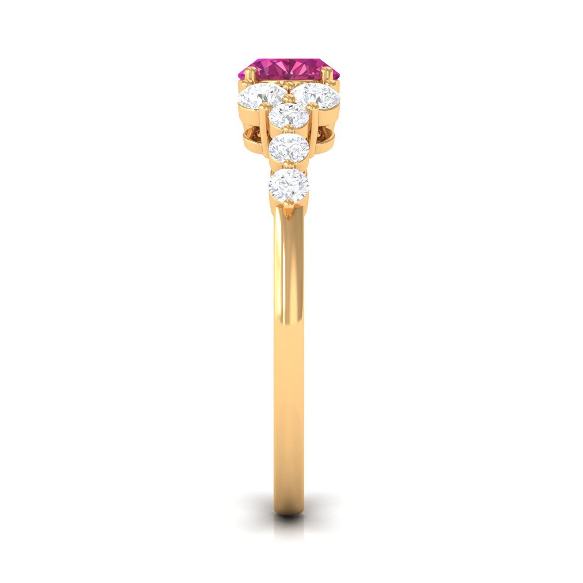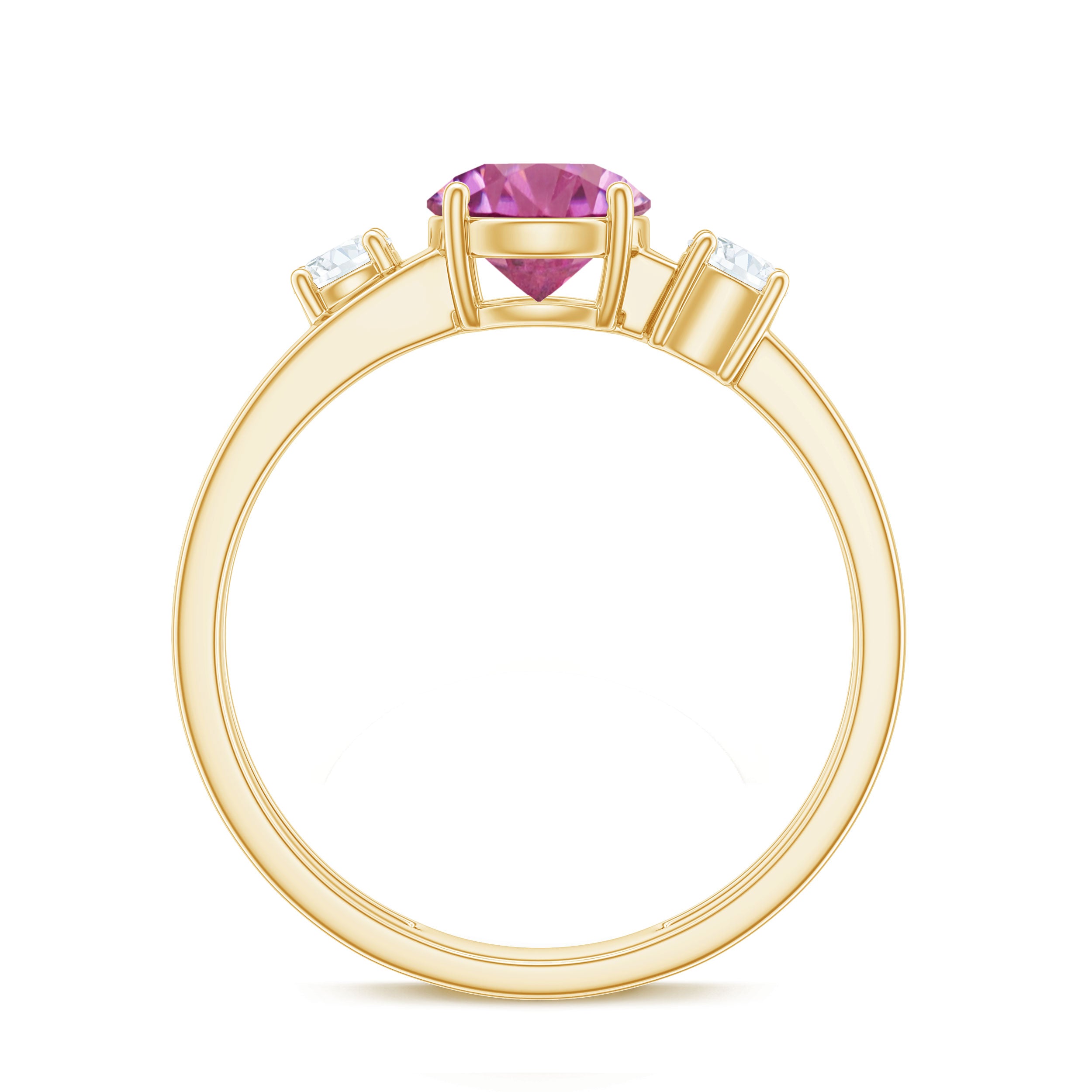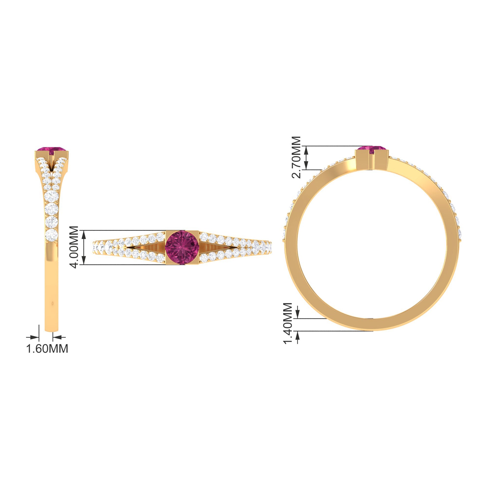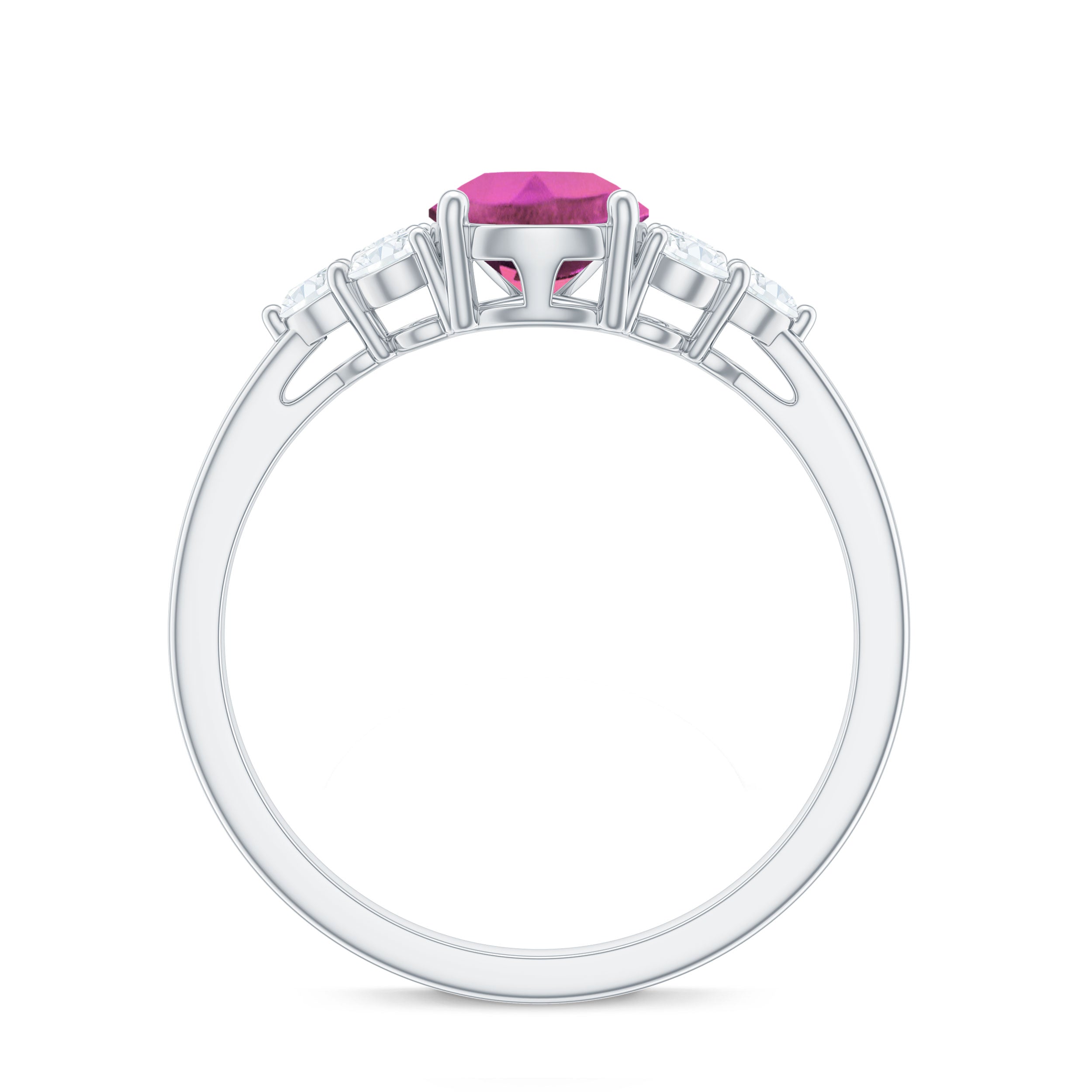 Crafted to let the Center Stone of Pink Tourmaline stand out all solo, this Solitaire Ring is any day a conventional choice of accessory. The size of Pink Tourmaline here isn’t any less than 6 MM, which is what helps it flaunt its beauty at best. It also makes for one of the most classic Pink Tourmaline Engagement Rings. The many shapes of Pink Tourmaline Solitaire speak to many aesthetics. If you like to stick to basics, nothing better than a Round Pink Tourmaline Ring. However, if you fancy a hint of an extravagant touch, Pink Tourmaline fashioned in marquise, pear, or princess cut will work best. On the other hand, Asscher, Cushion, or Emerald Cut Pink Tourmaline Ring is your best bet if you’re looking for a Vintage Tourmaline Ring.