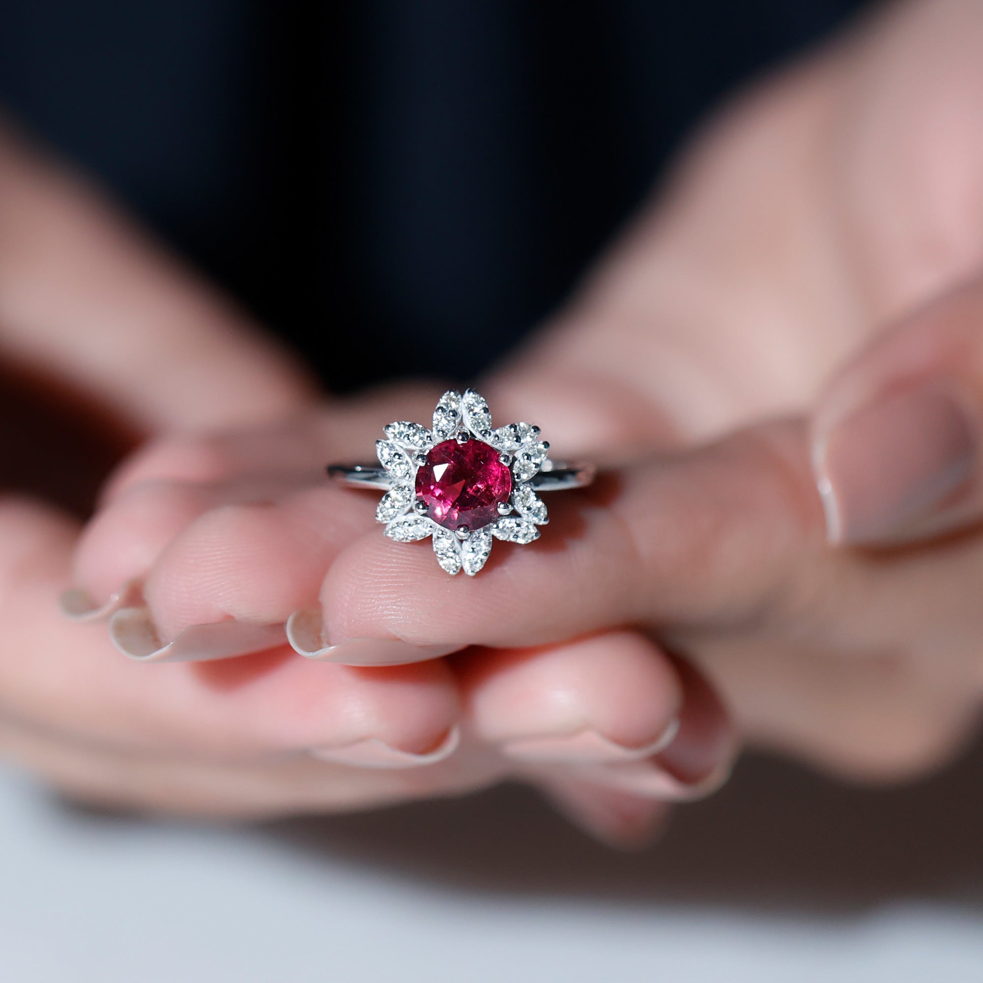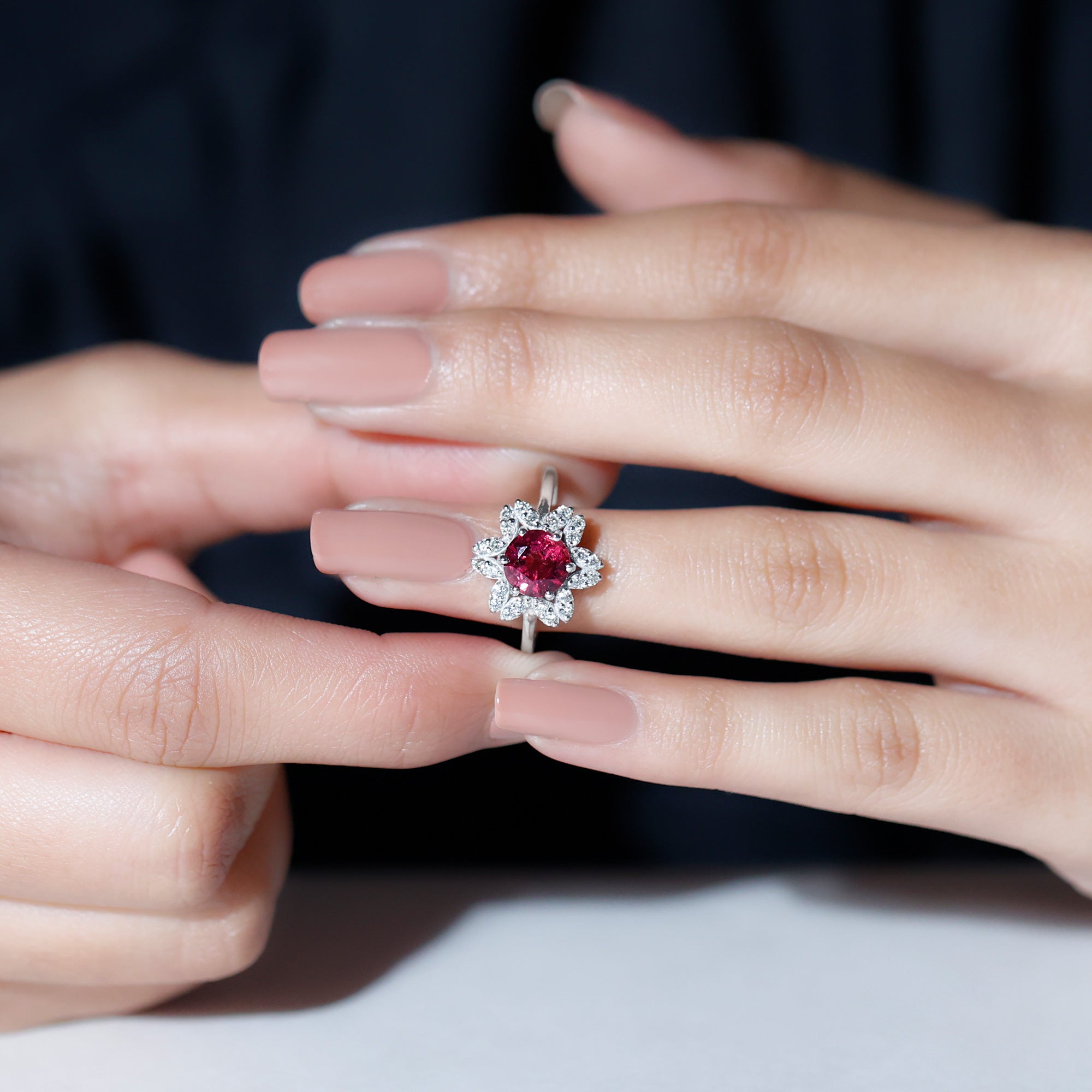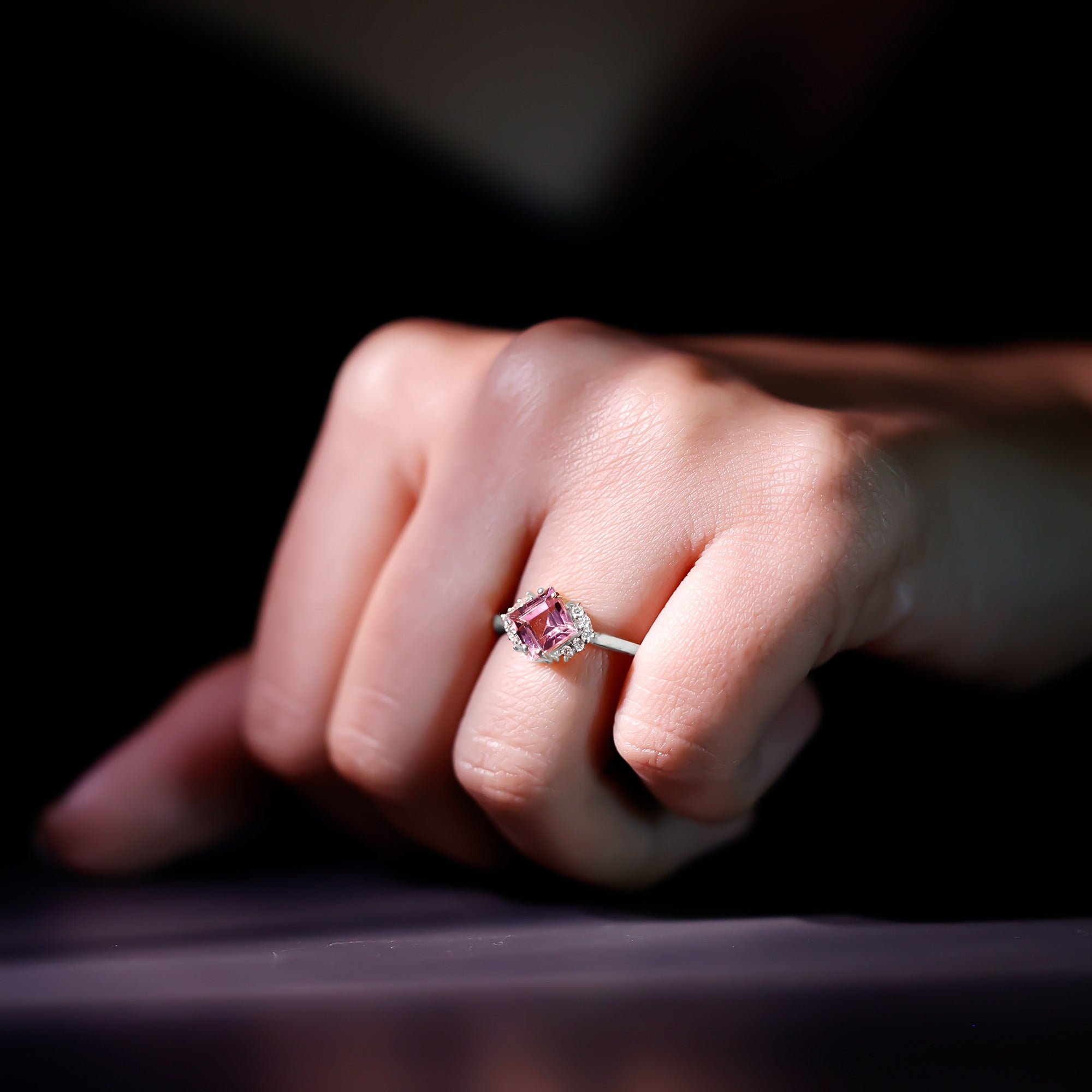 Unlike its specific symbolism, a Pink Tourmaline Promise Ring isn’t defined by a set style. It could be a Classic Pink Tourmaline Solitaire Ring that is relatively understated thanks to its dainty size of 4 MM. Or to lend a decorative visual appeal, it could be accentuated with side-stones of Diamond/Moissanite, floral or nature-inspired detailing, or even meaningful infinity motifs.