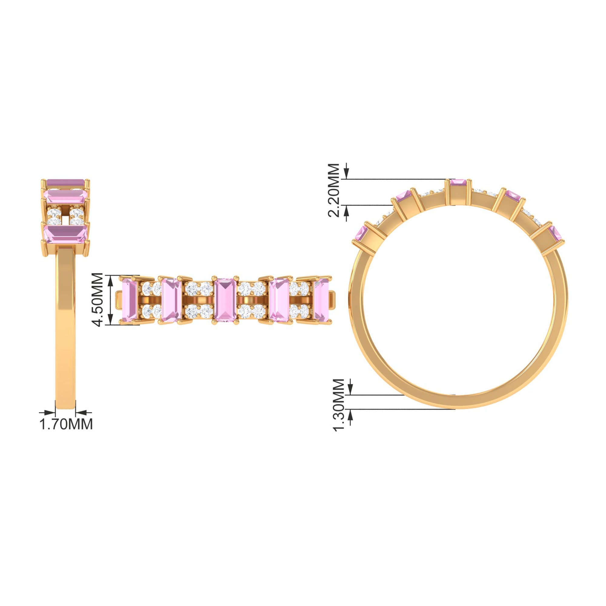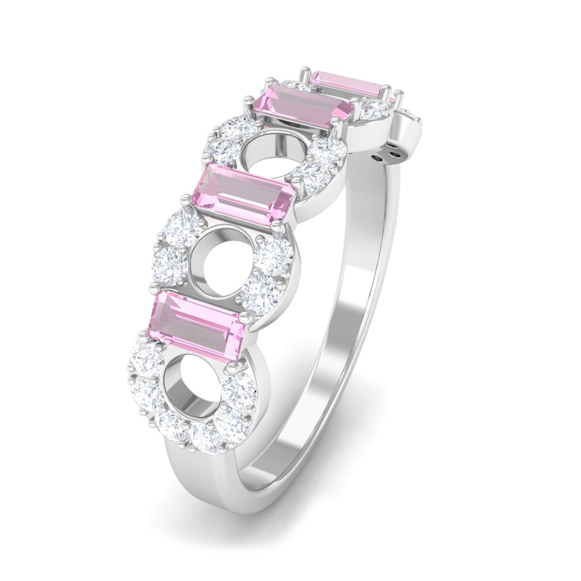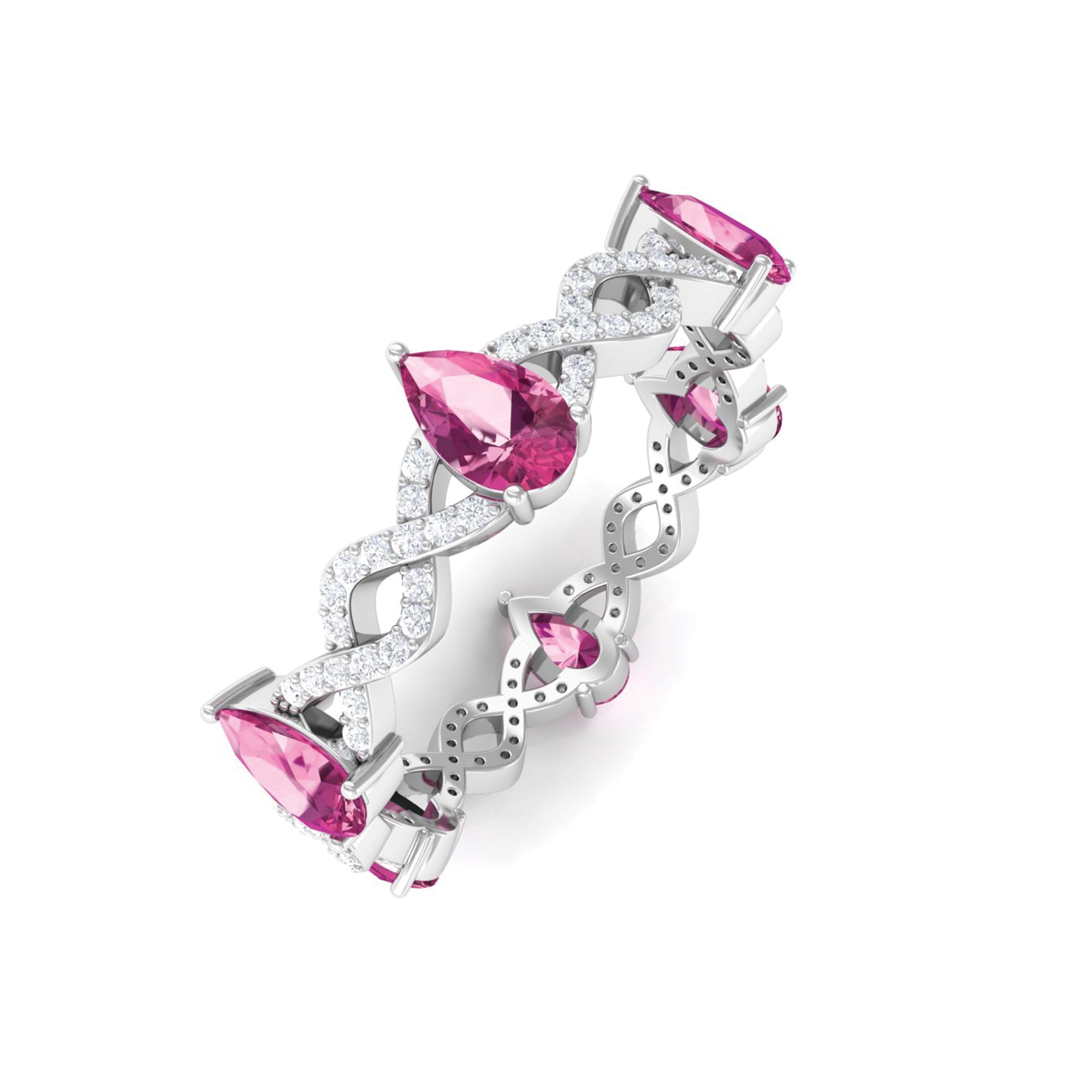 Unlike its specific symbolism, a Pink Tourmaline Promise Ring isn’t defined by a set style. It could be a Classic Pink Tourmaline Solitaire Ring that is relatively understated thanks to its dainty size of 4 MM. Or to lend a decorative visual appeal, it could be accentuated with side-stones of Diamond/Moissanite, floral or nature-inspired detailing, or even meaningful infinity motifs.