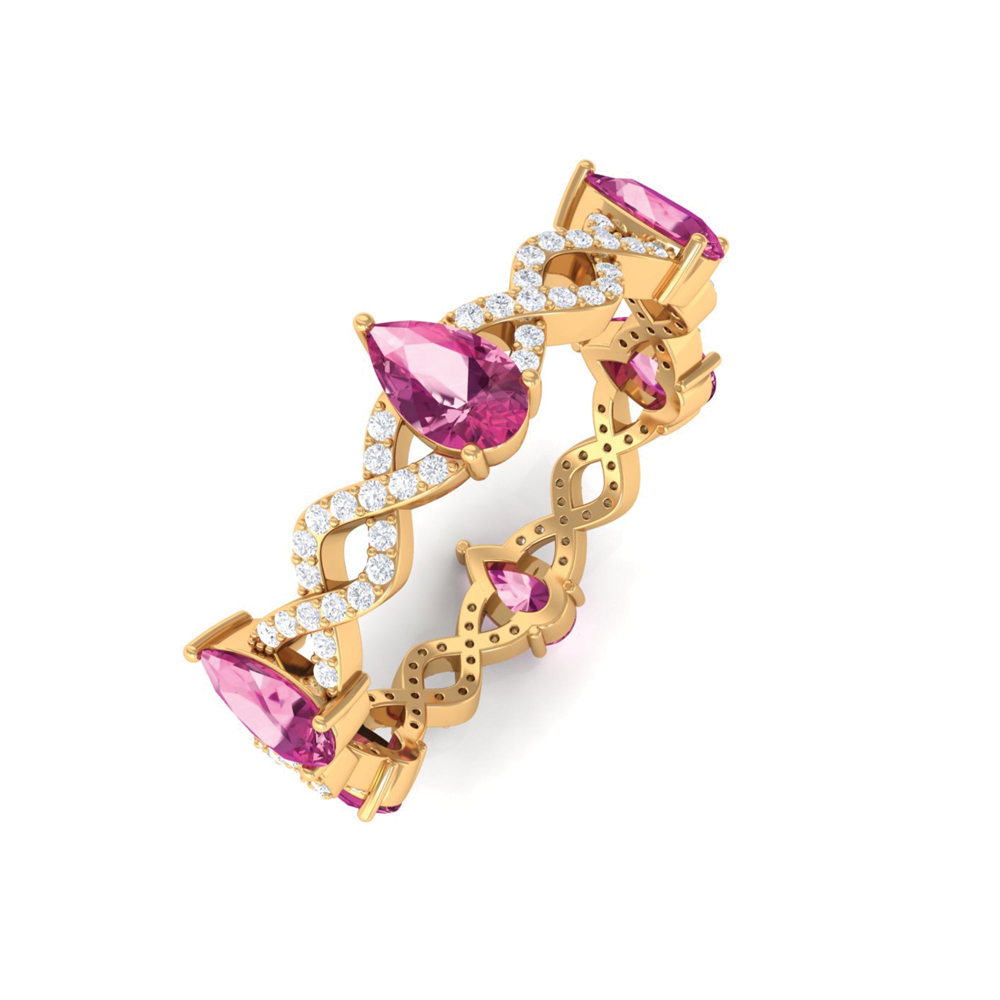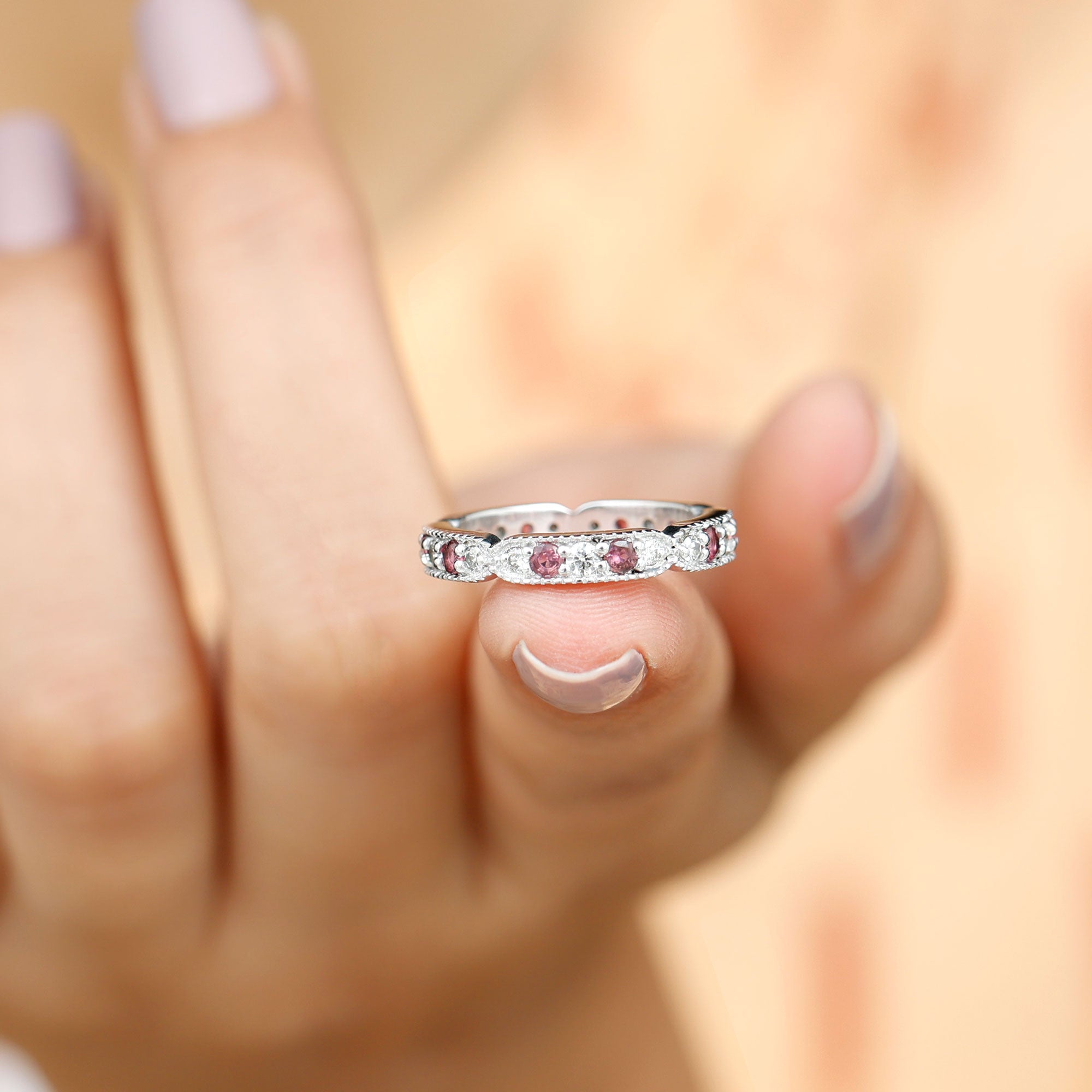 A Pink Tourmaline Eternity Ring is adorned with identically sized Pink Tourmaline all over the band. If you can’t get enough of the rosy pink hue of this October Birthstone, the good news is that an Eternity Ring is all about it. Besides that, it carries a meaning just as romantic as its appearance. It commemorates the kind of love that is meant to last a lifetime, which also makes it a meaningful Pink Tourmaline Wedding Ring.