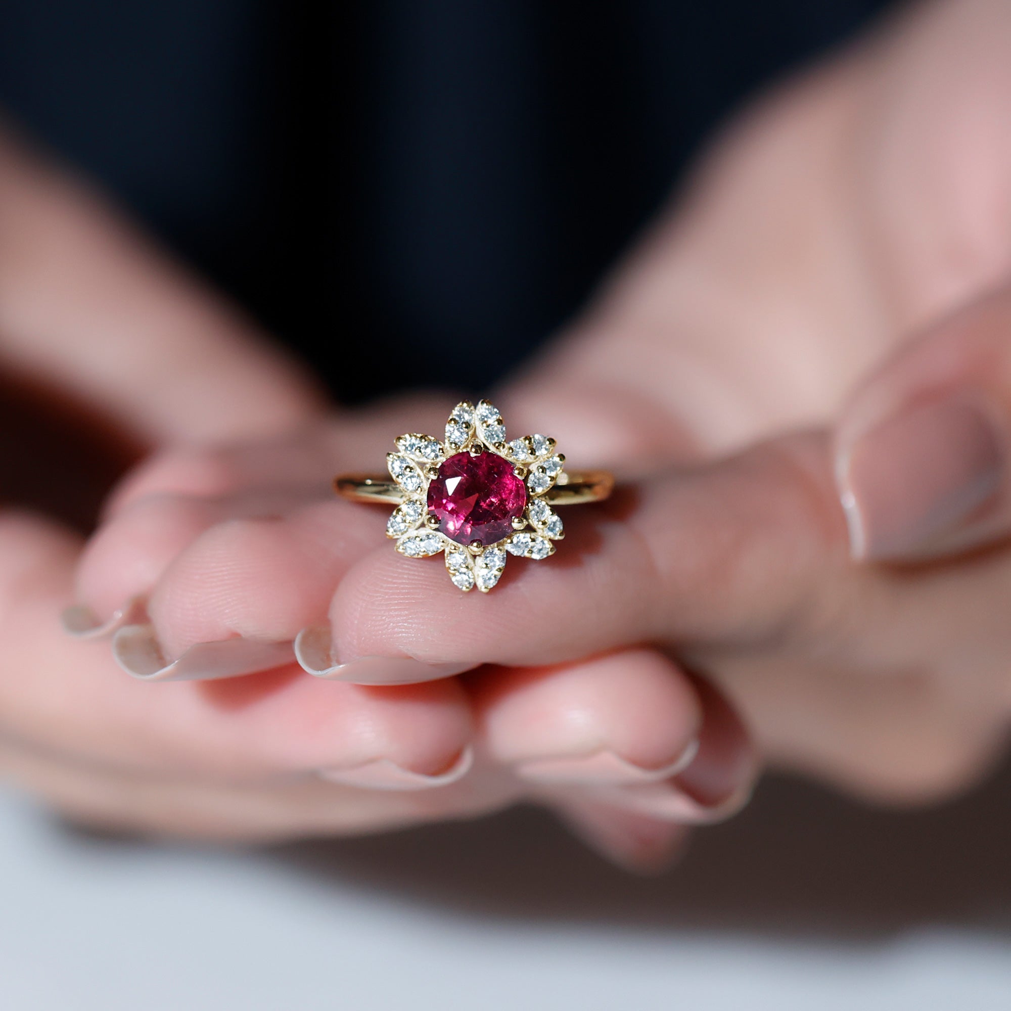 Each ring is crafted in your choice of metal tone that exudes different aesthetics. While a White Gold Pink Tourmaline Ring speaks to an understated sense of style, the one fashioned in yellow gold resonates with conventional aesthetics.On the other hand, a Pink Tourmaline Rose Gold Ring appears fascinatingly feminine with its blush-gold appeal complementing the pink hue of Tourmaline.