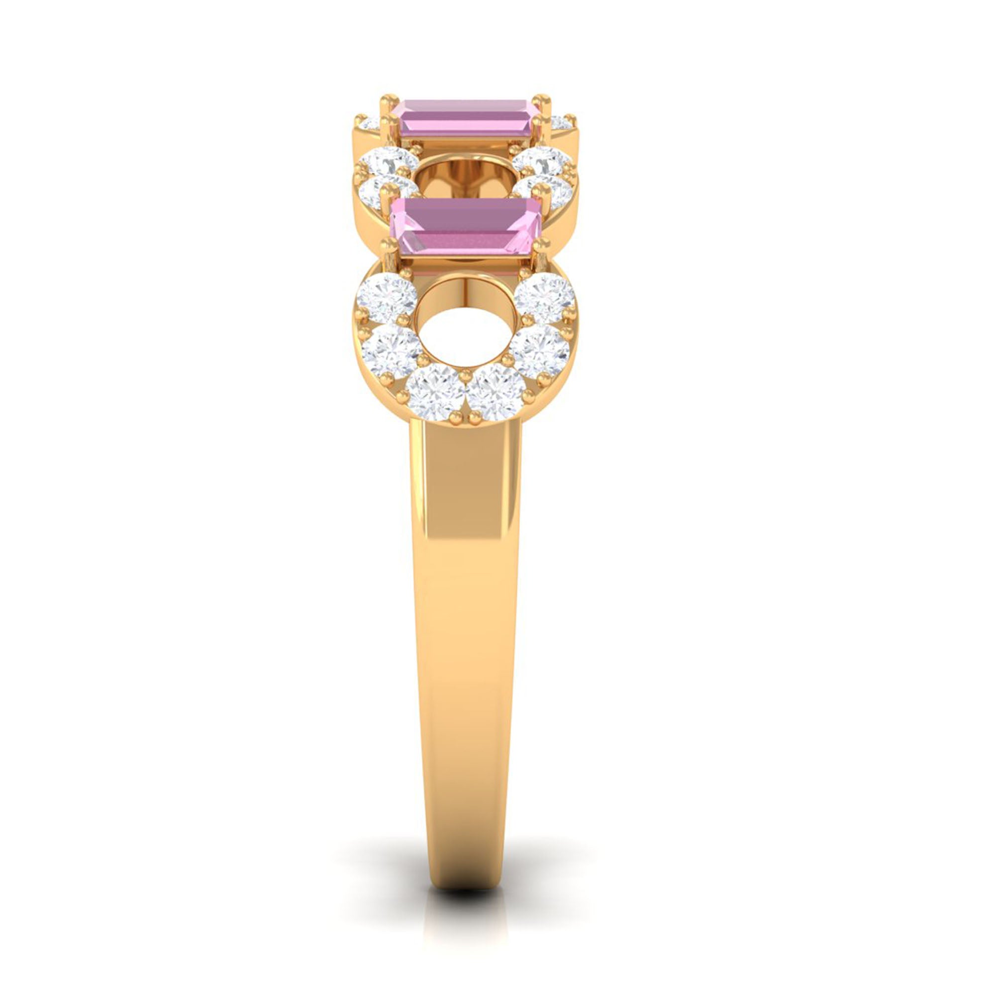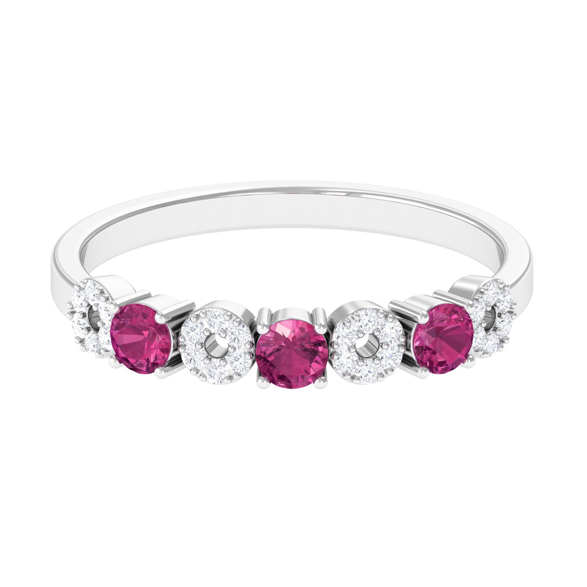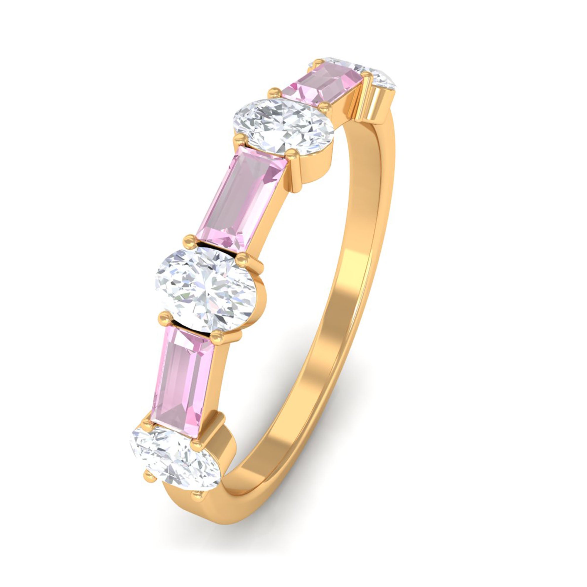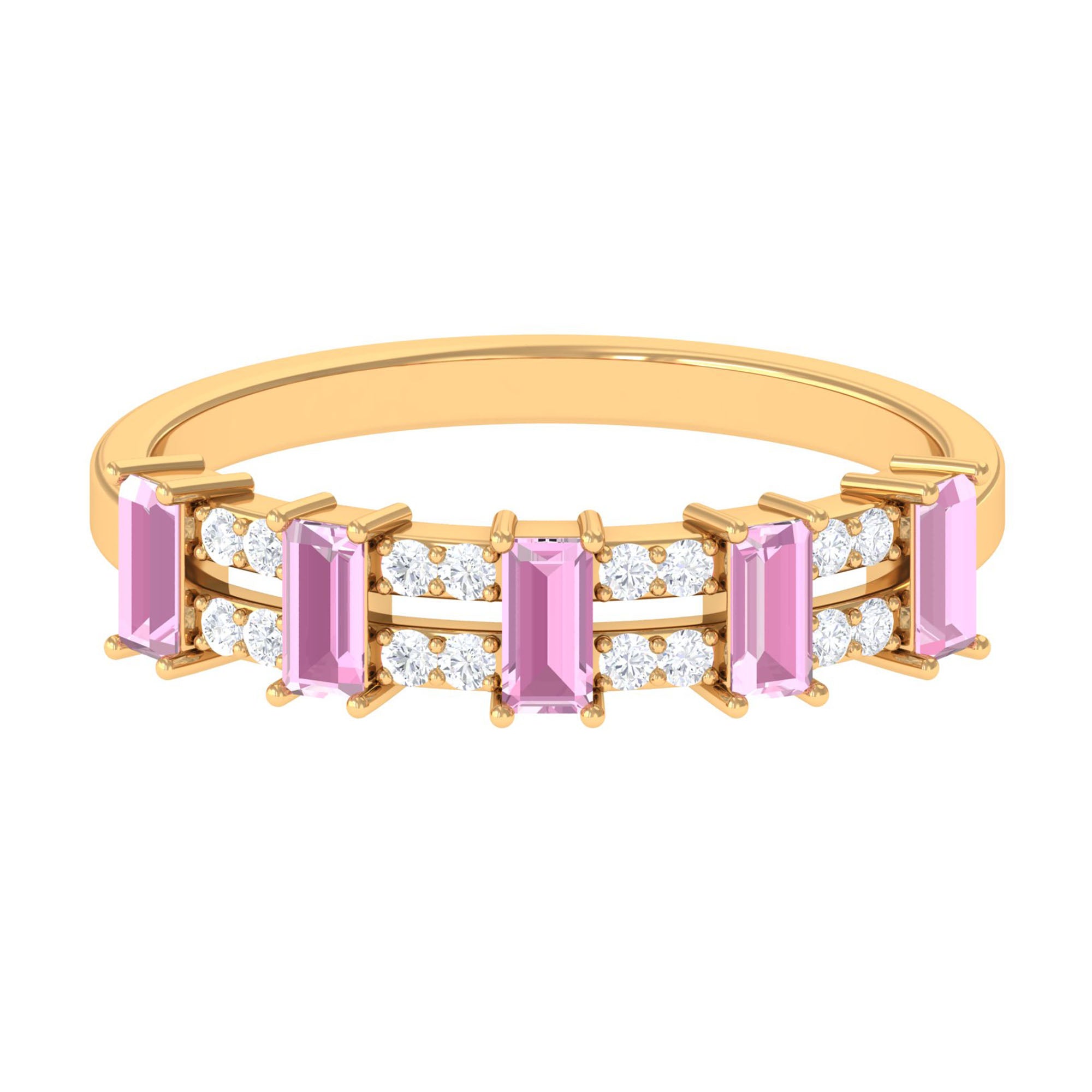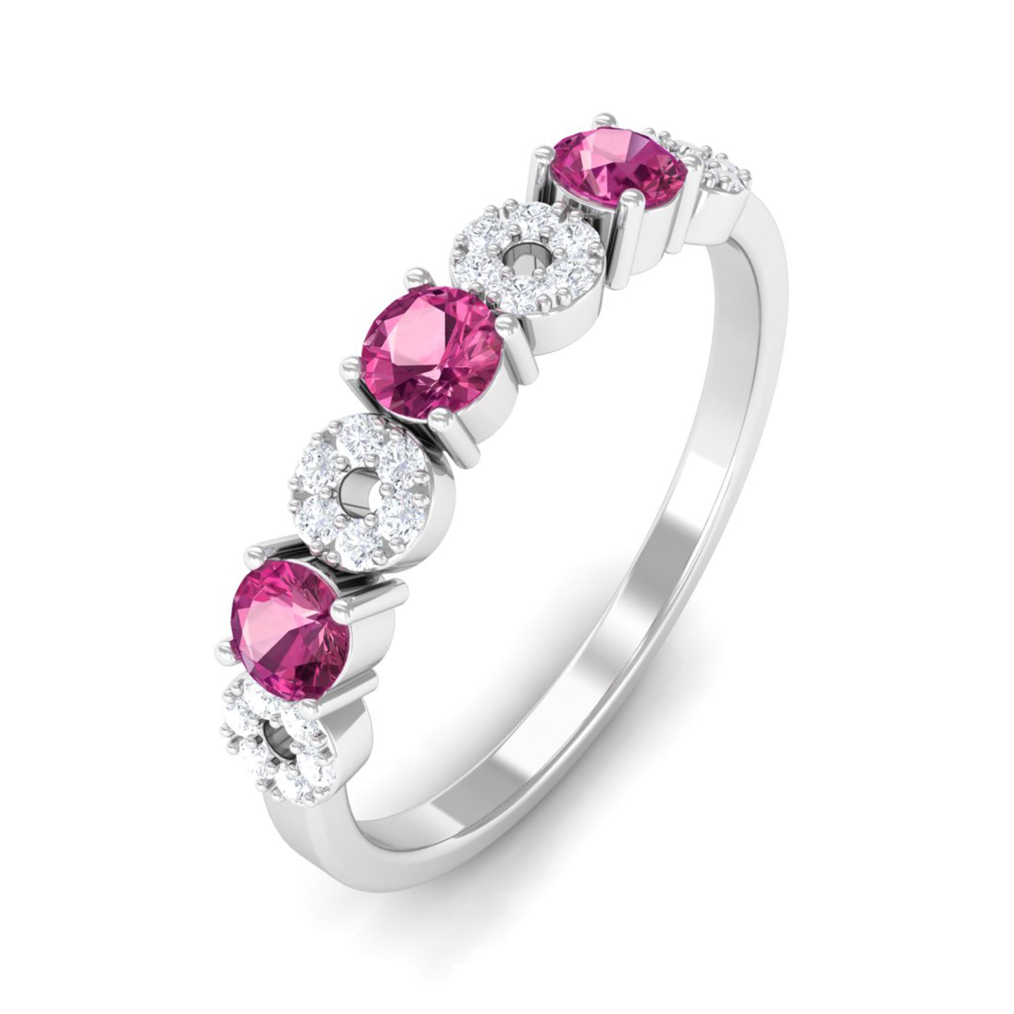 Similar to the eternity, a Pink Tourmaline Wedding Ring is adorned with identical-looking stones of Pink Tourmaline in an endless pattern. But the distinctive part is that thanks to the many styles it comes in, you’re facilitated with a world of options. It ranges from a Simple Pink Tourmaline Band Ring to ones decorated with Floating Halo, Vintage Detailings, or even a triple-row Pink Tourmaline Gold Ring.