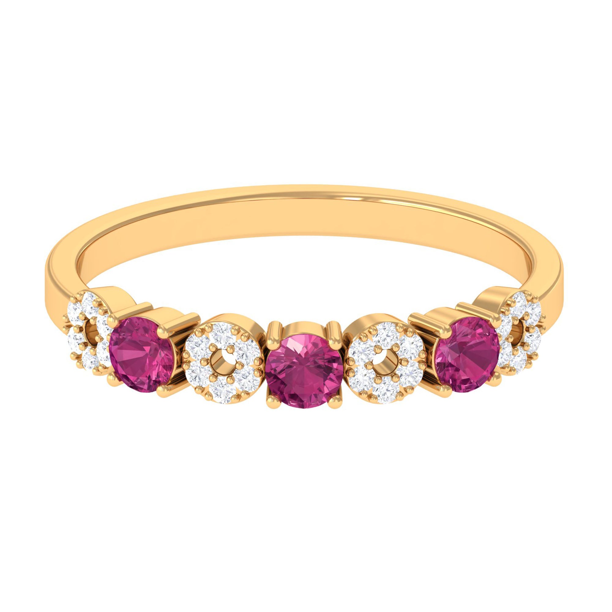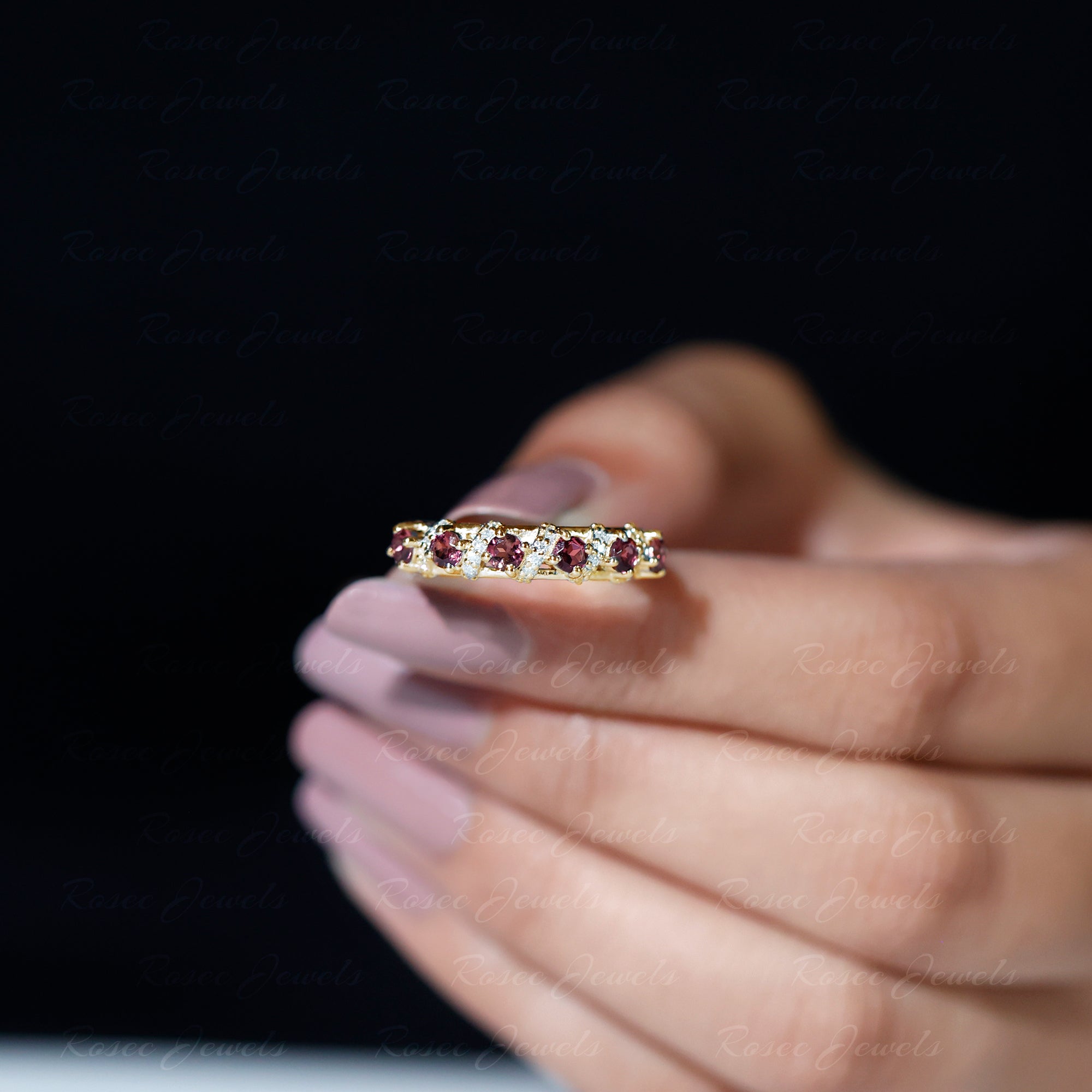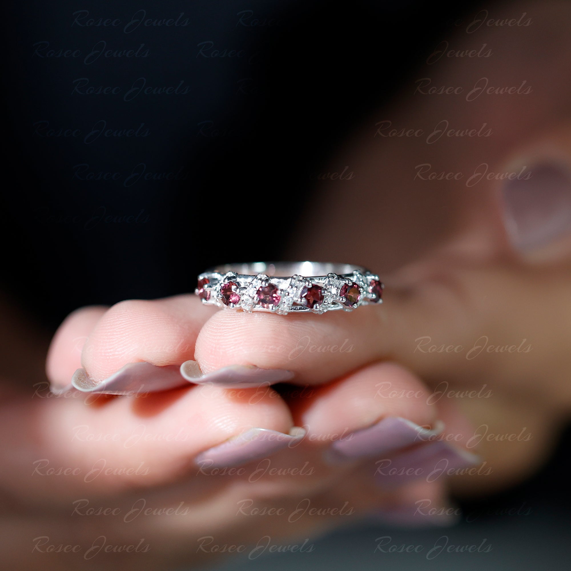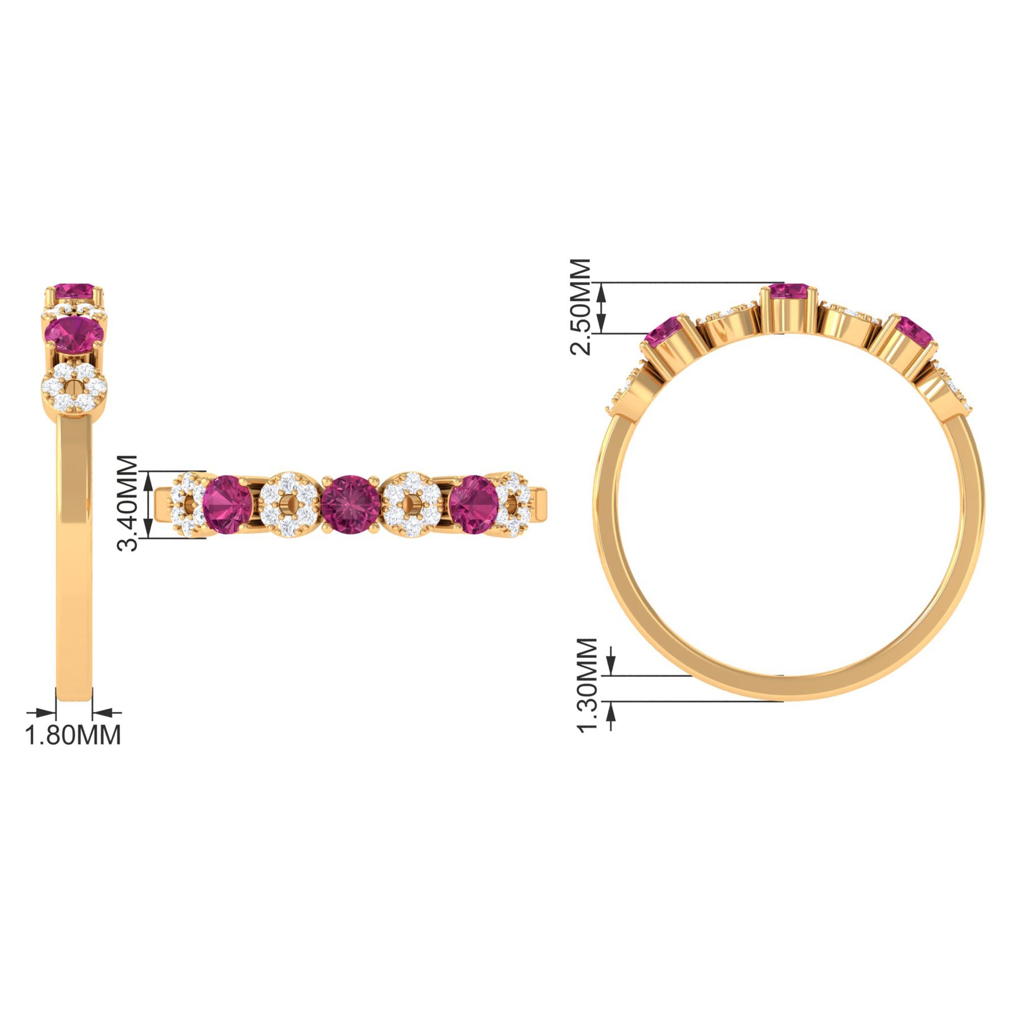 Similar to the eternity, a Pink Tourmaline Wedding Ring is adorned with identical-looking stones of Pink Tourmaline in an endless pattern. But the distinctive part is that thanks to the many styles it comes in, you’re facilitated with a world of options. It ranges from a Simple Pink Tourmaline Band Ring to ones decorated with Floating Halo, Vintage Detailings, or even a triple-row Pink Tourmaline Gold Ring.