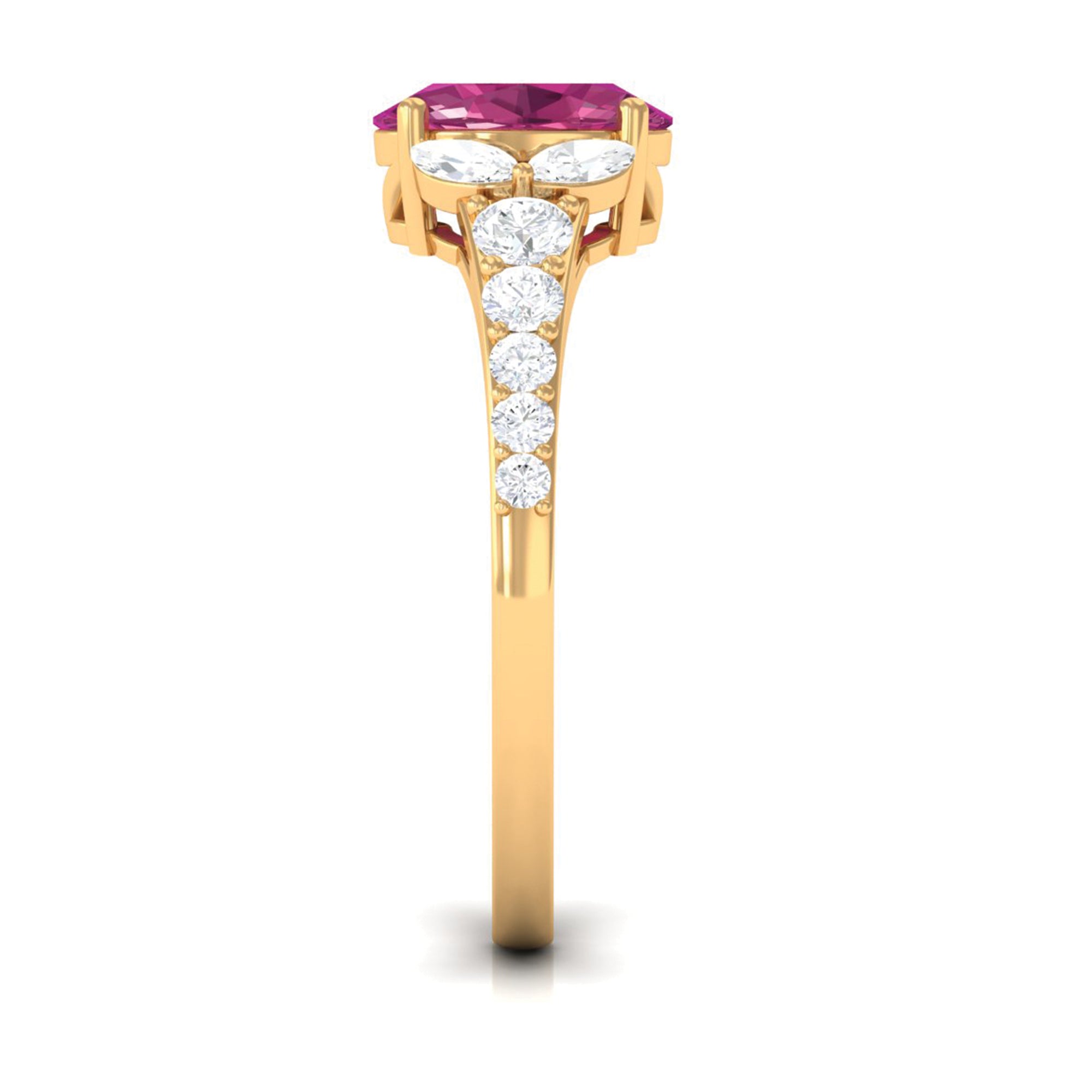 Famed for its flashy and extravagant appeal, the Pink Tourmaline Cocktail Ring boasts an enormous center stone of Pink Tourmaline. To further complement its beauty, it is accentuated with eye-striking patterns of Diamond/Moissanite on the sides. This flashy style is often beautified with fascinating floral motifs and vintage-inspired metalwork.