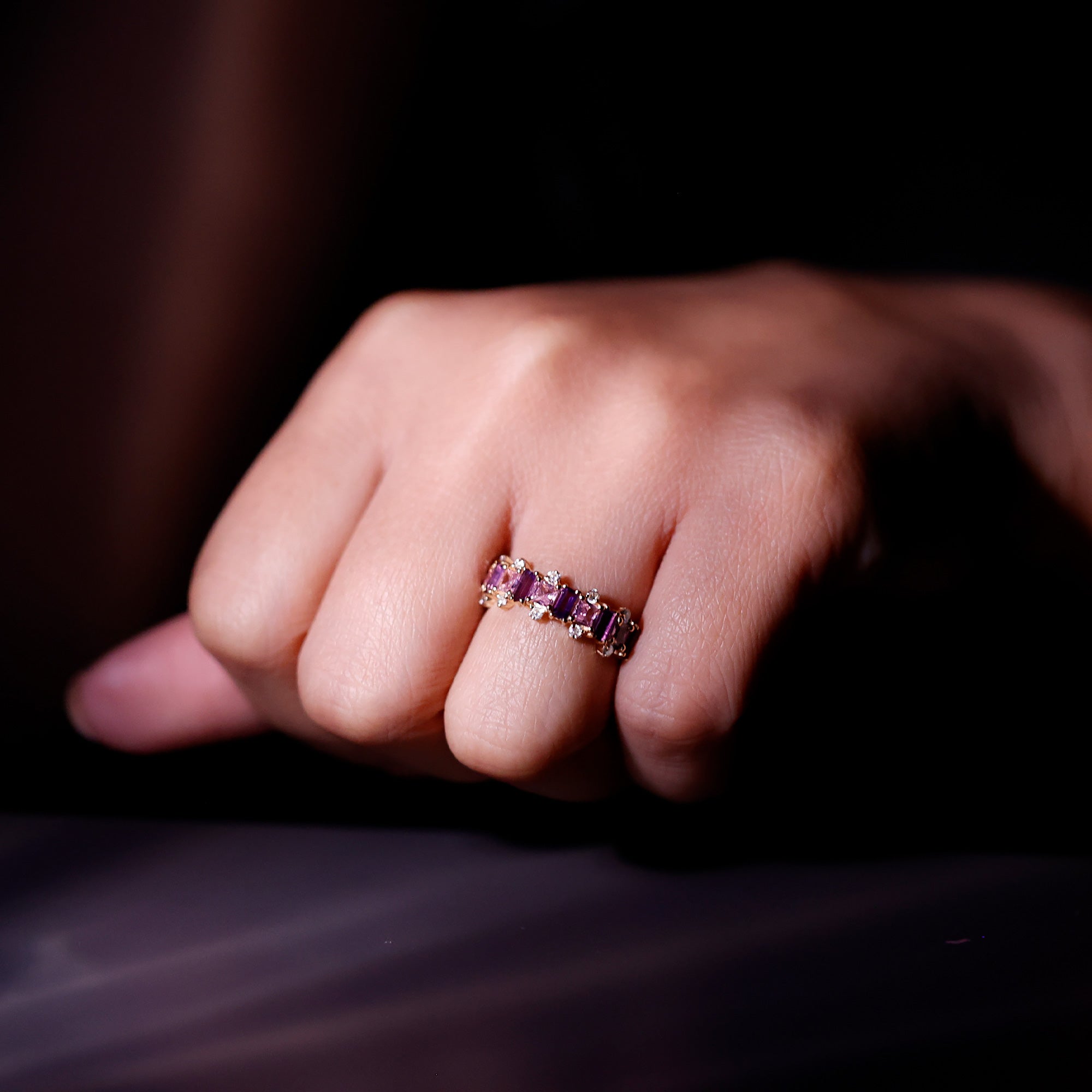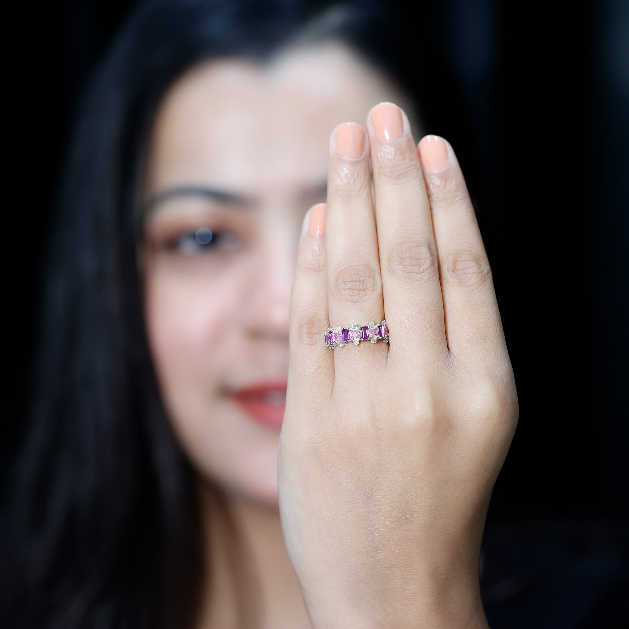 Check Popular Styles: Rainbow rings are available in almost all styles that we see in other rings. Cocktail, designer, halo, heart, promise, two stone, vintage inspired, etc styles can be selected according to preference. For a colorful ring stack, a rainbow eternity band is a perfect choice.