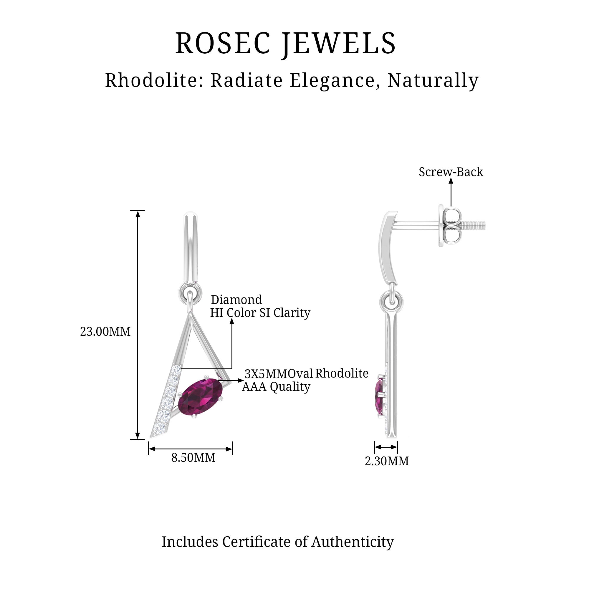 • Color: Being credited with highest clarity grade, Rhodolite earrings are believed to possess no visible inclusions.