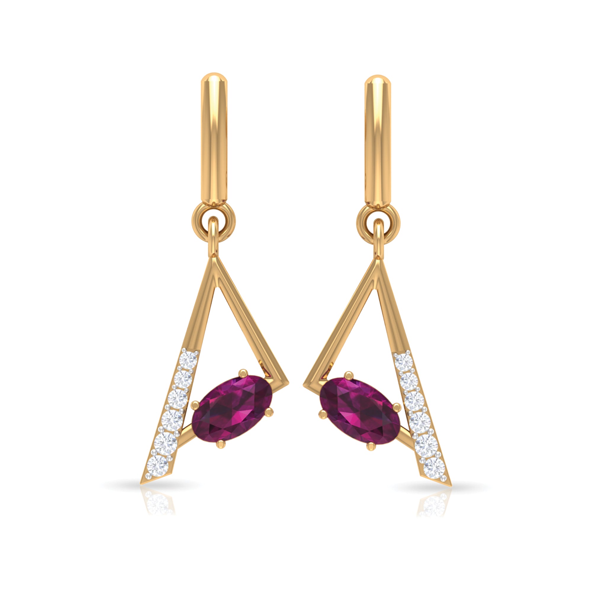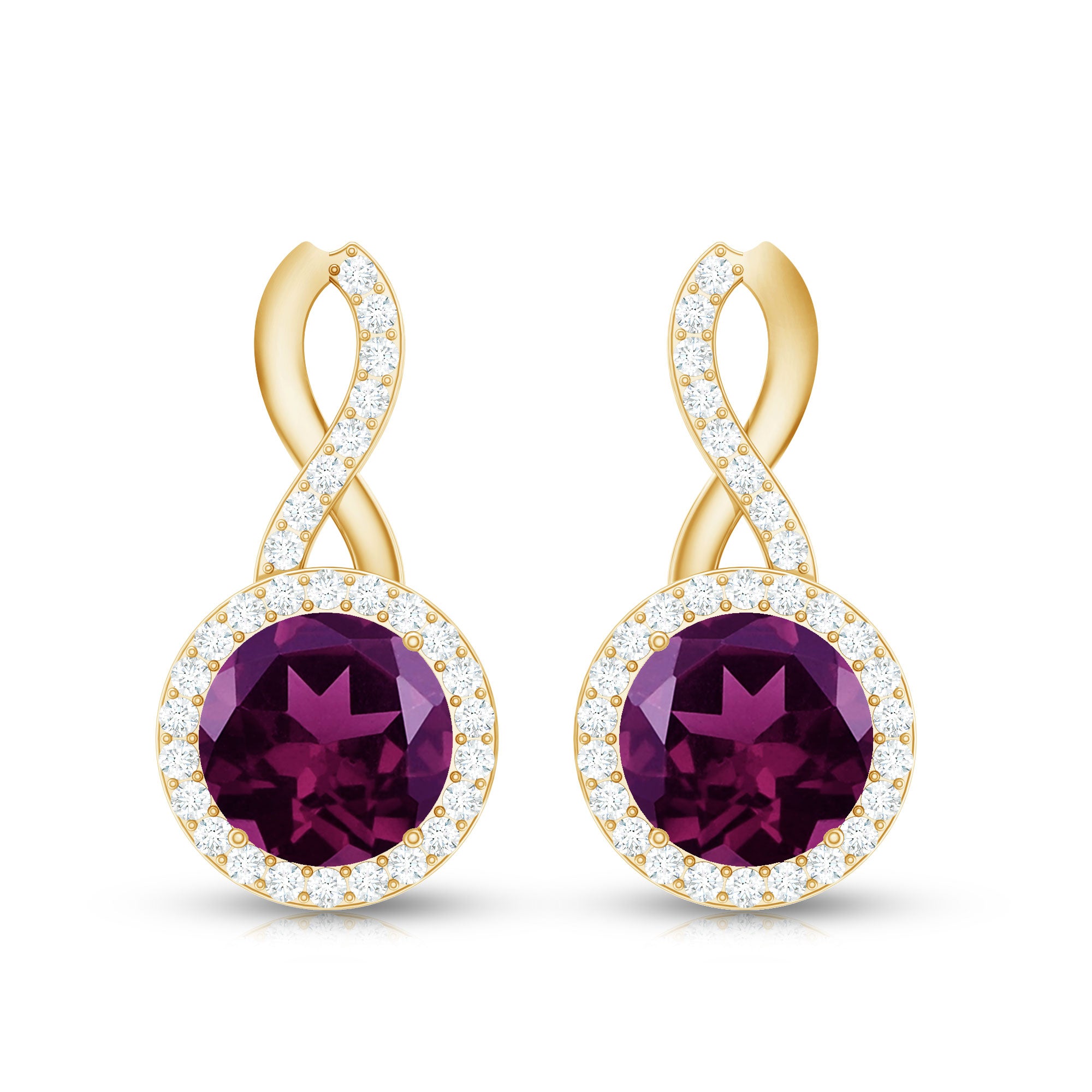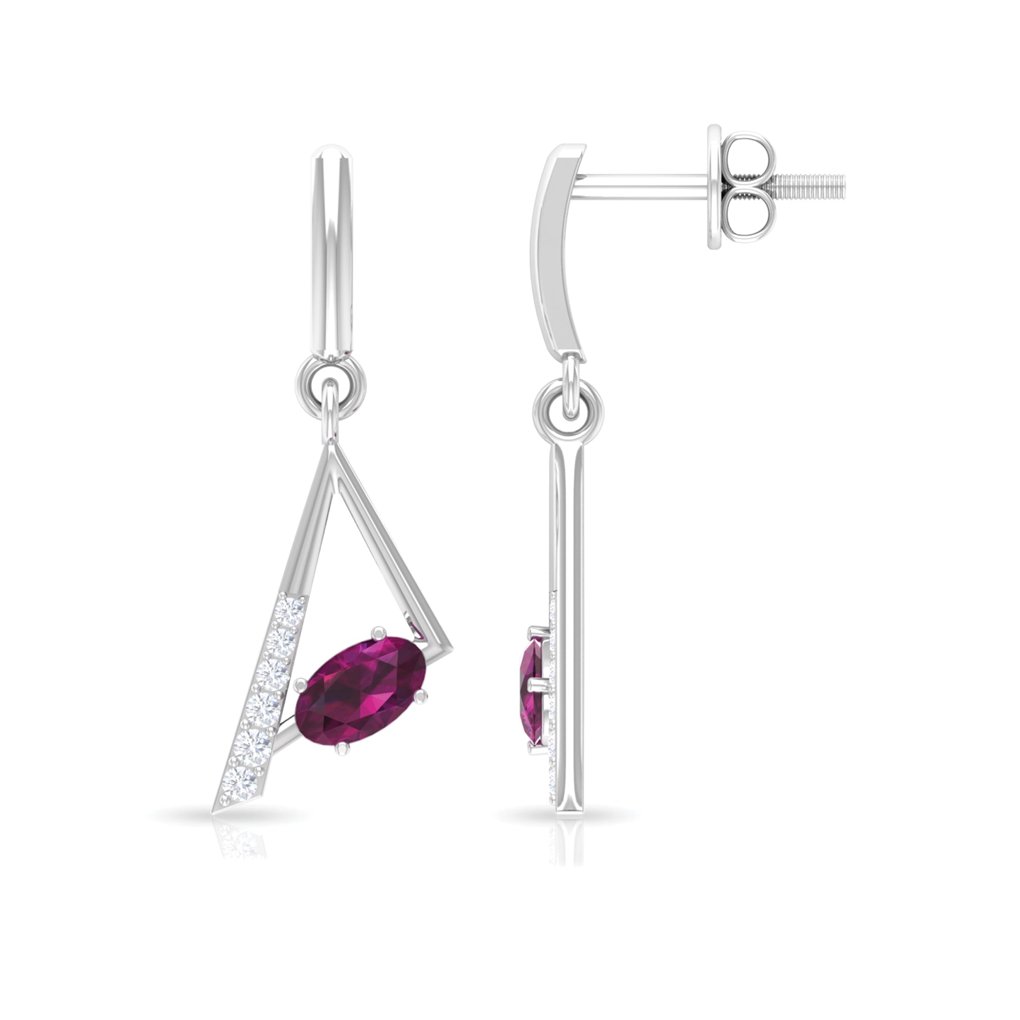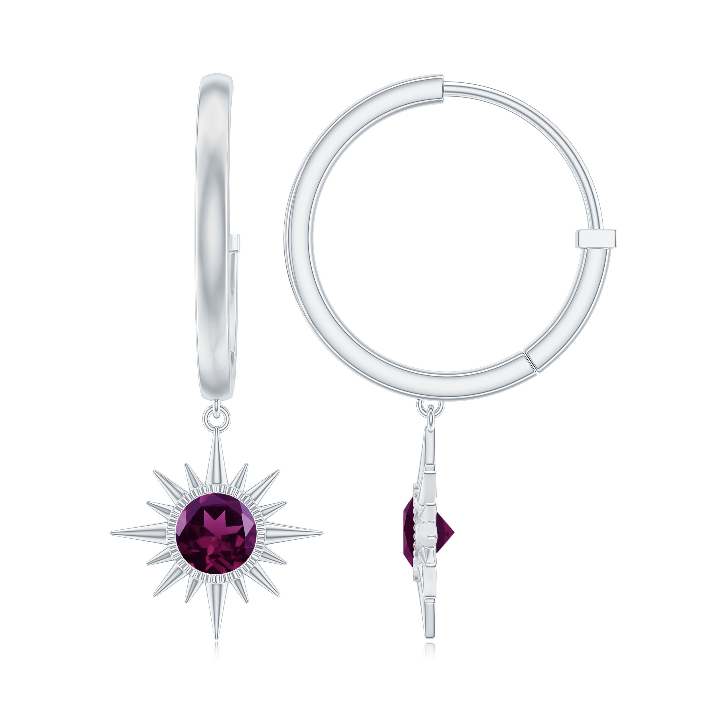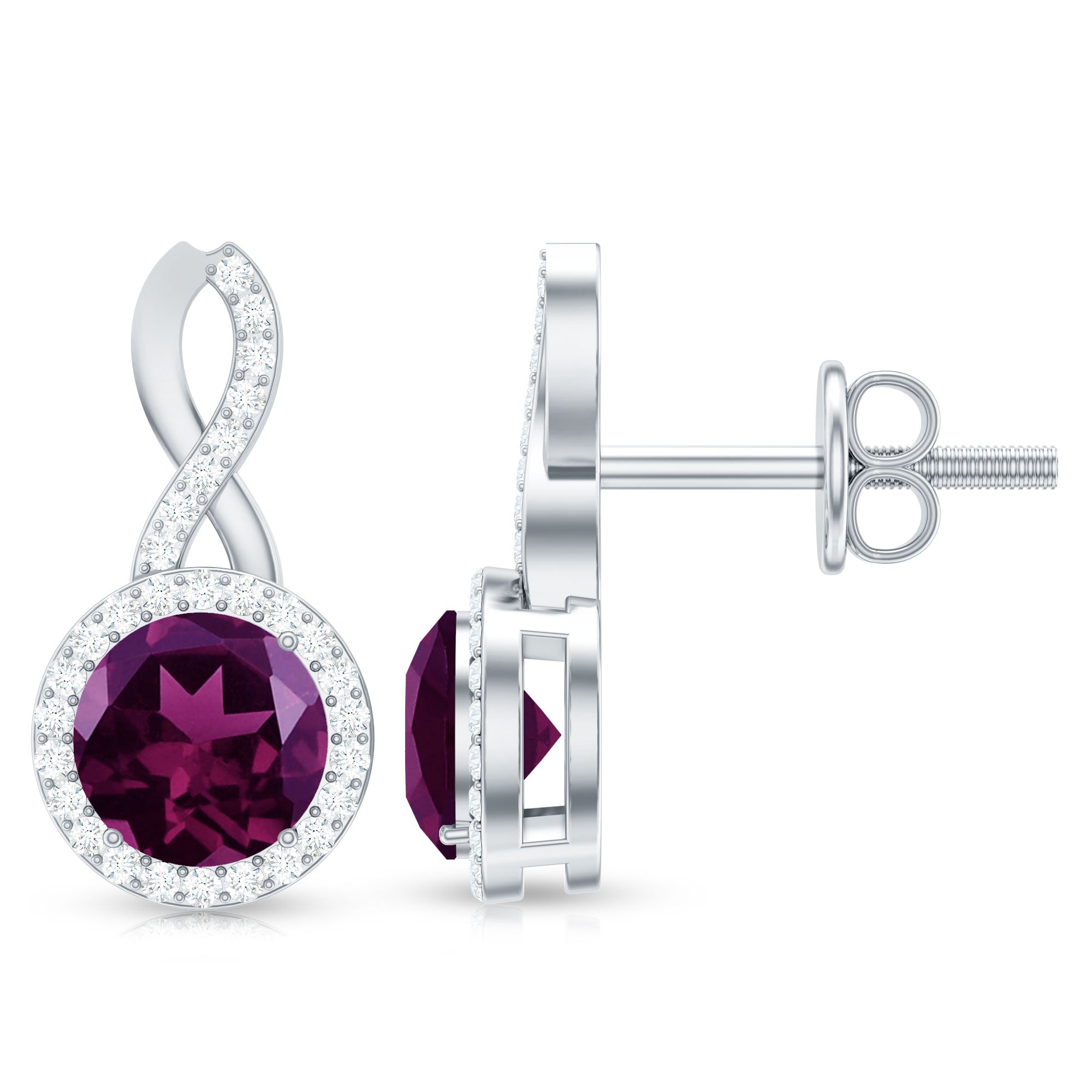 The trend for white gold is fast increasing since white goes so well with every gemstone, making it a great pick for your rhodolite earrings.