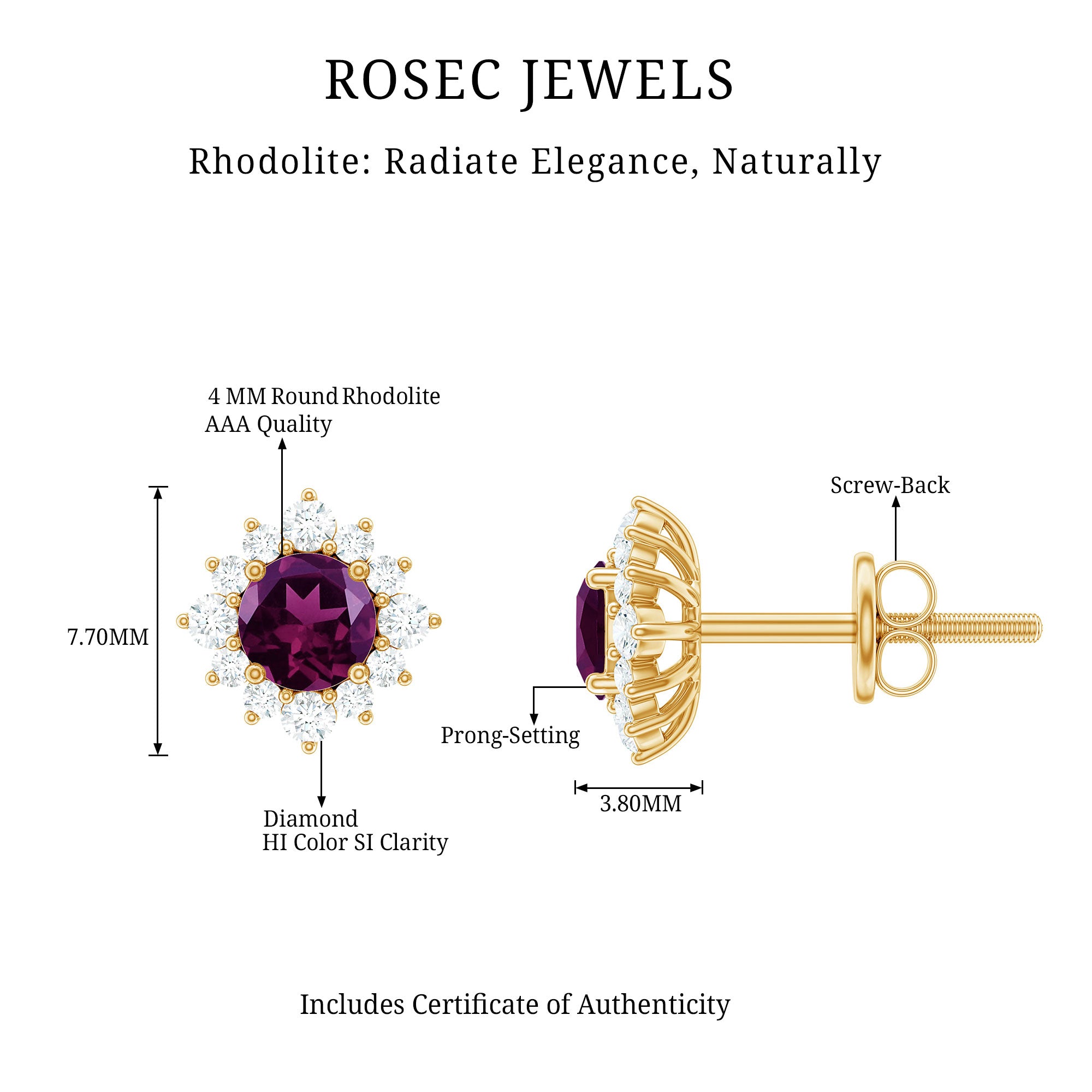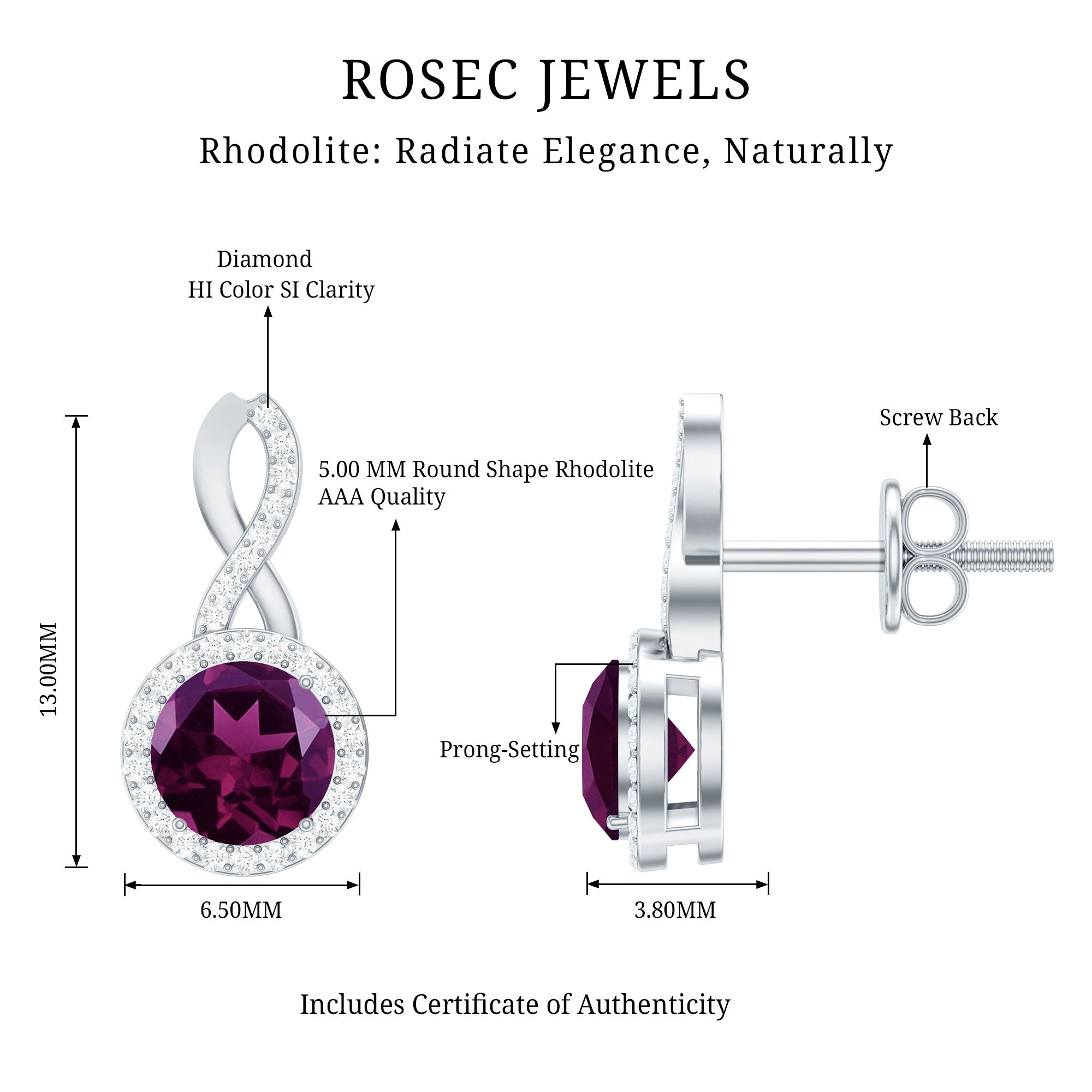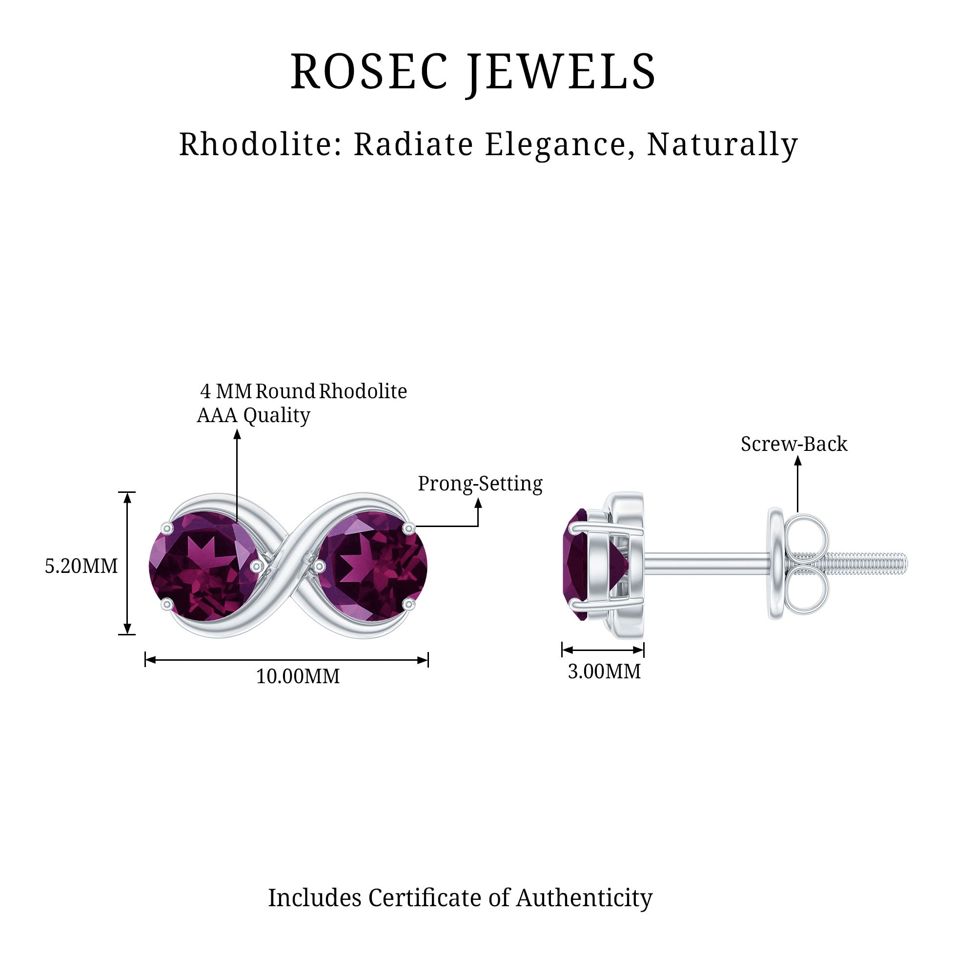• Carat: The carat weight of Rhodolite earrings ranges from 0.01 to 2 CT.