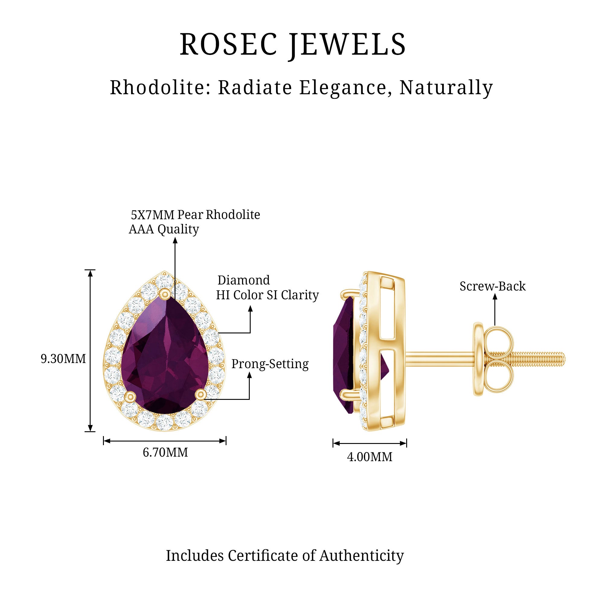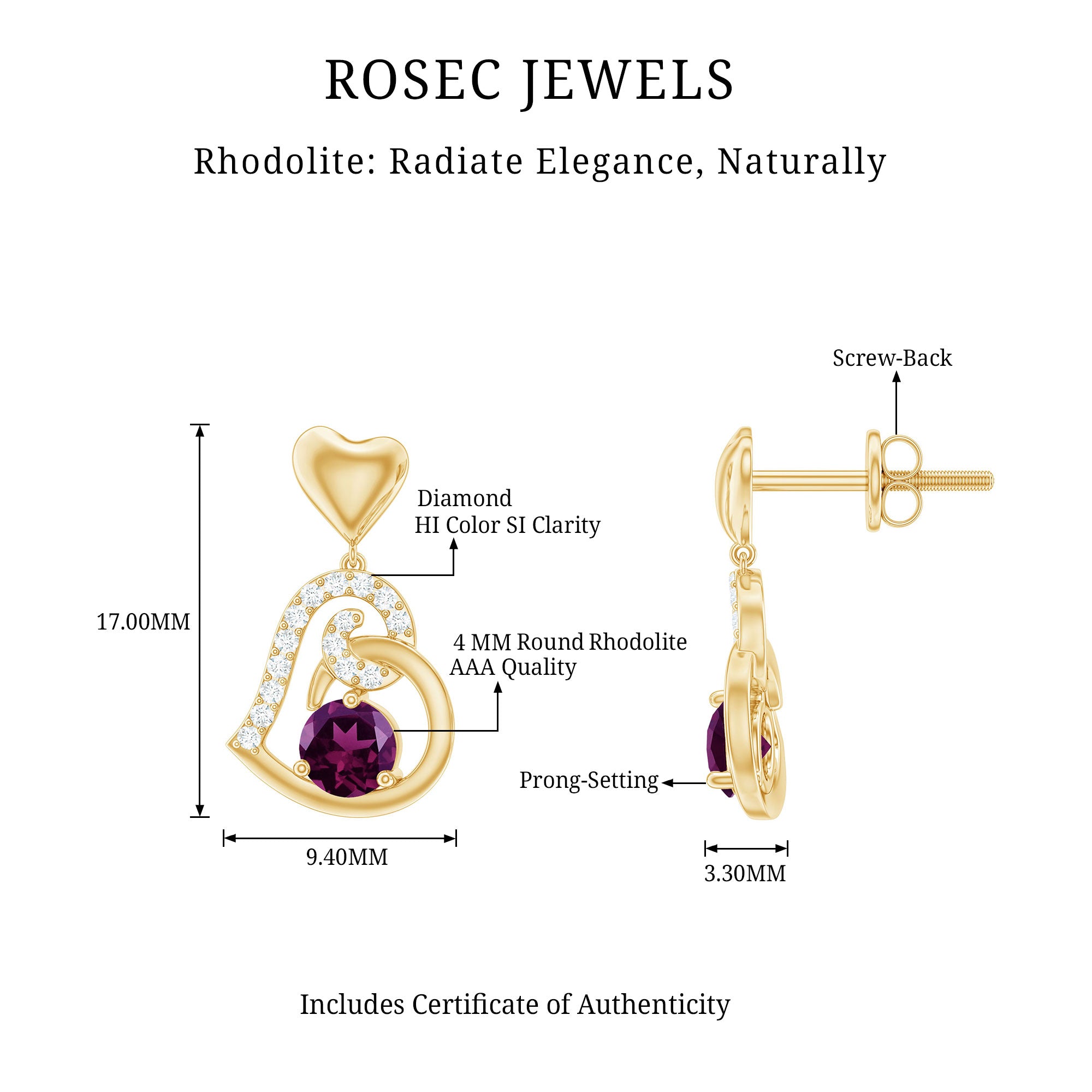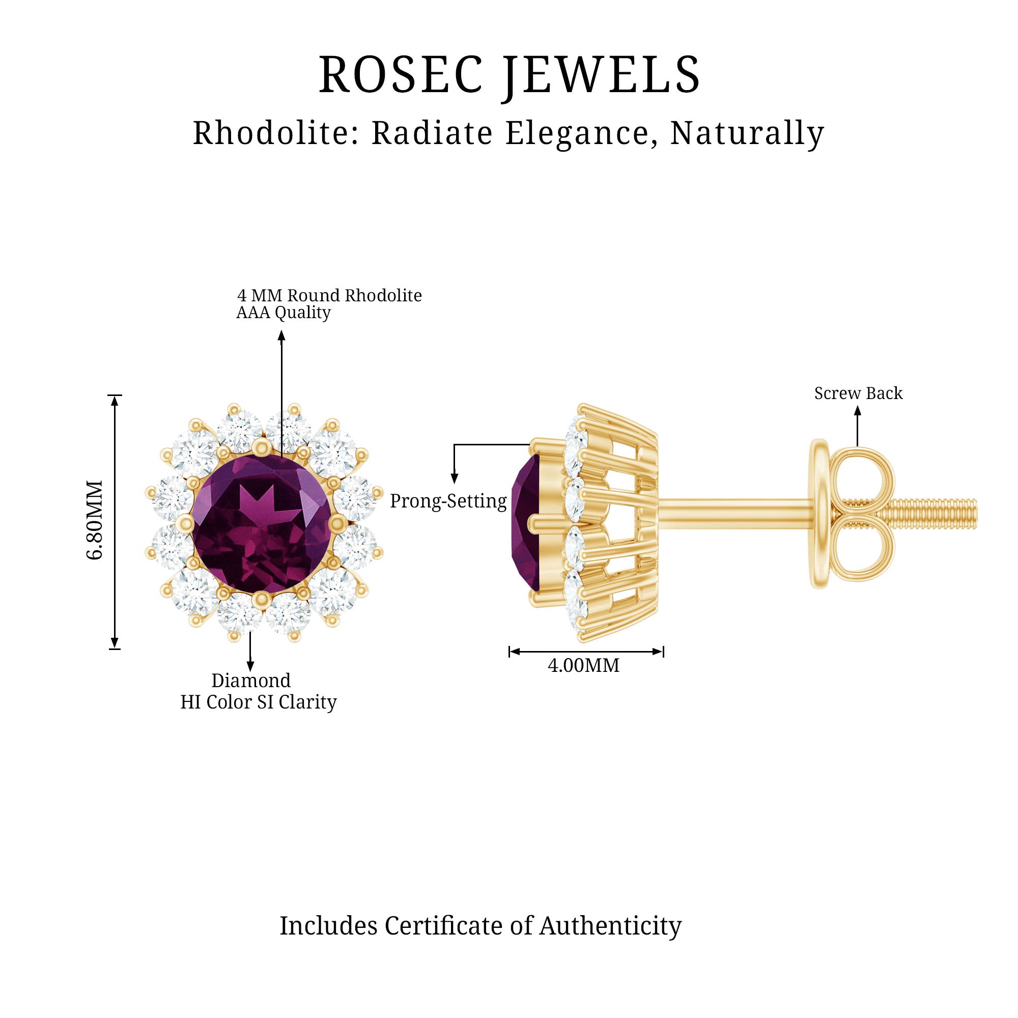 • Carat: The carat weight of Rhodolite earrings ranges from 0.01 to 2 CT.