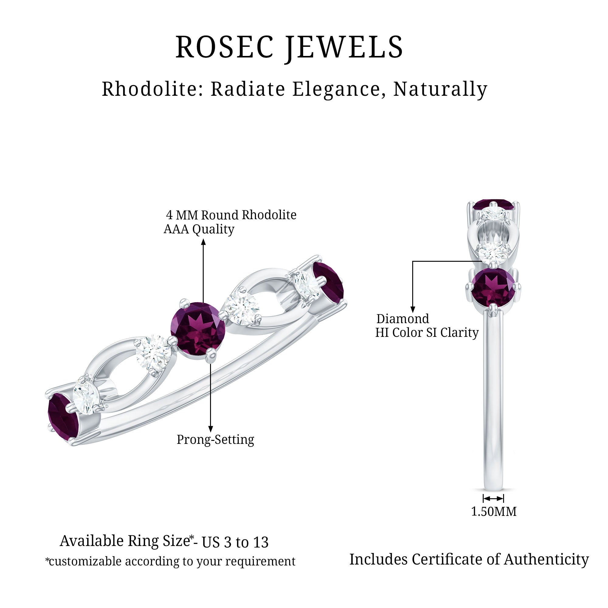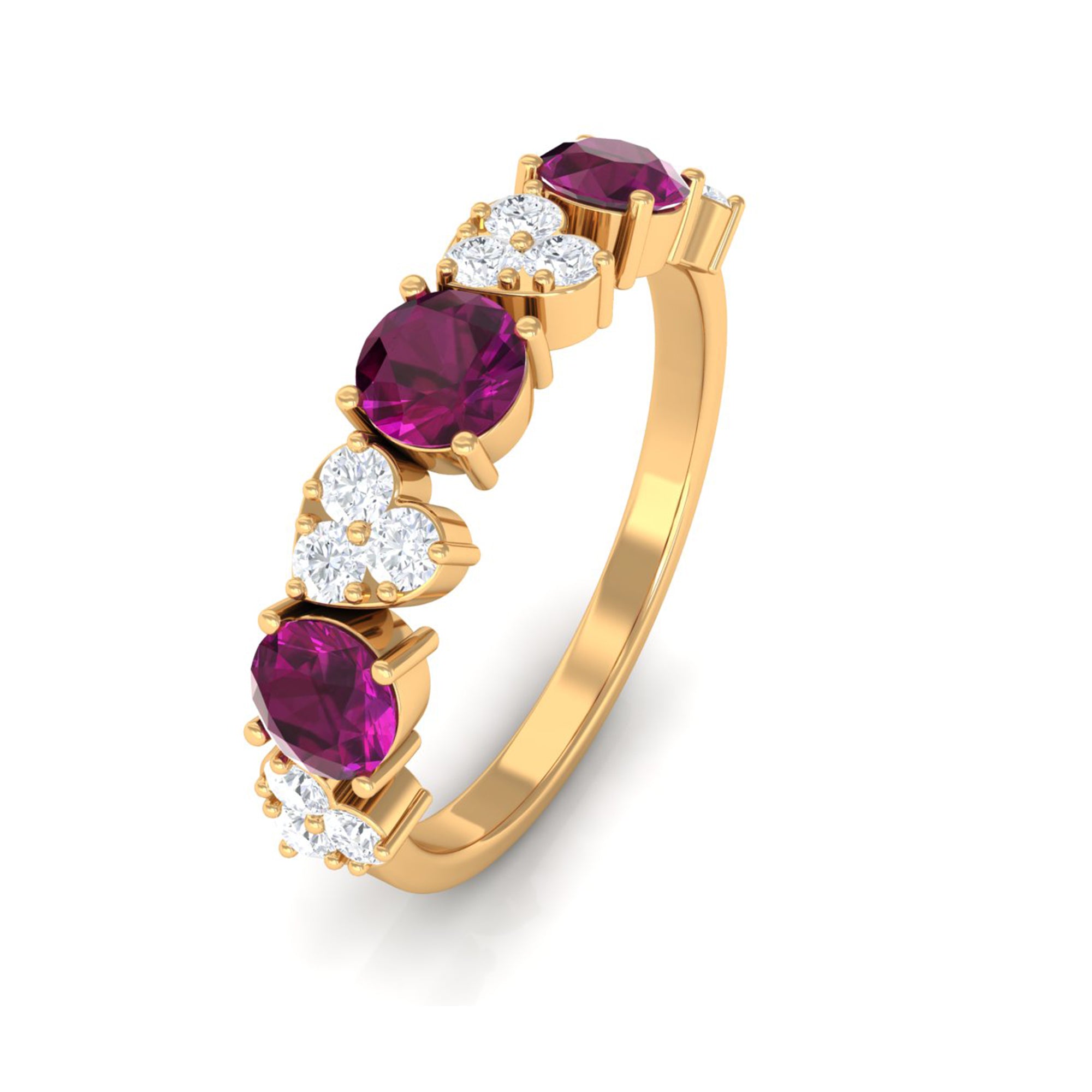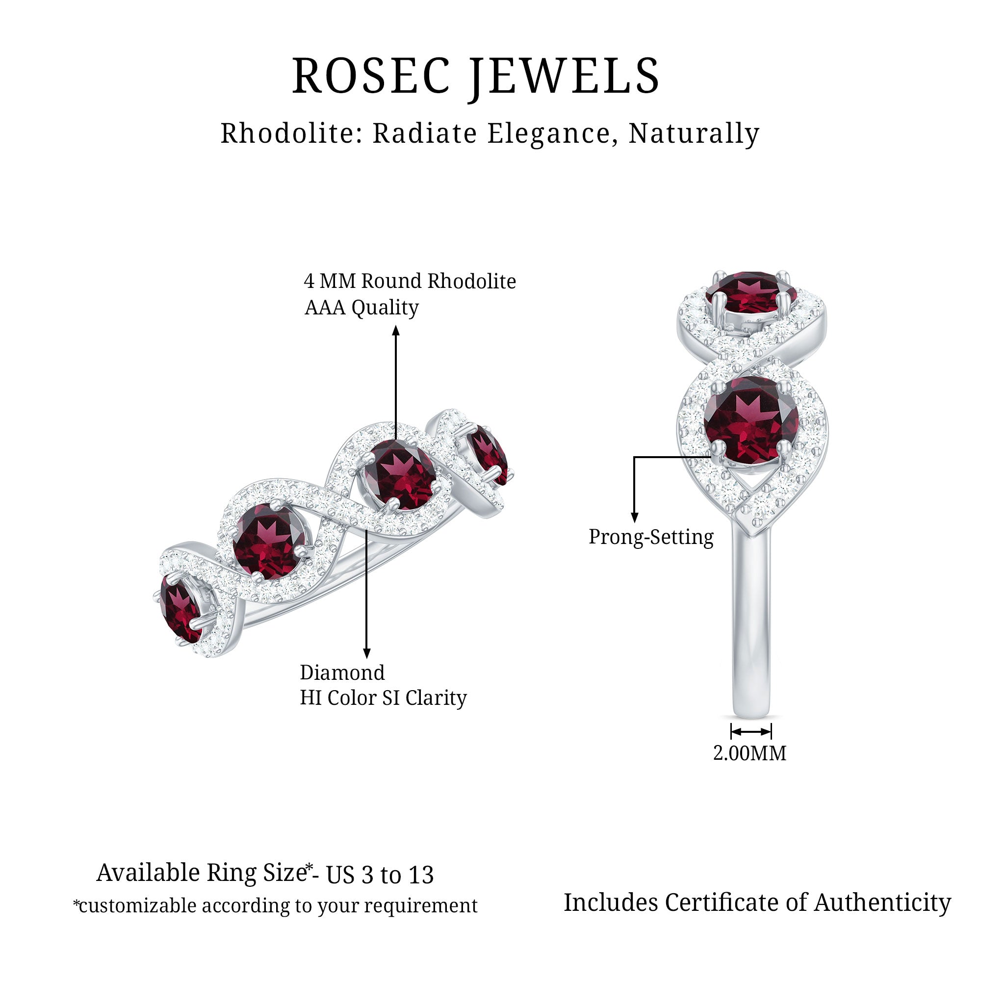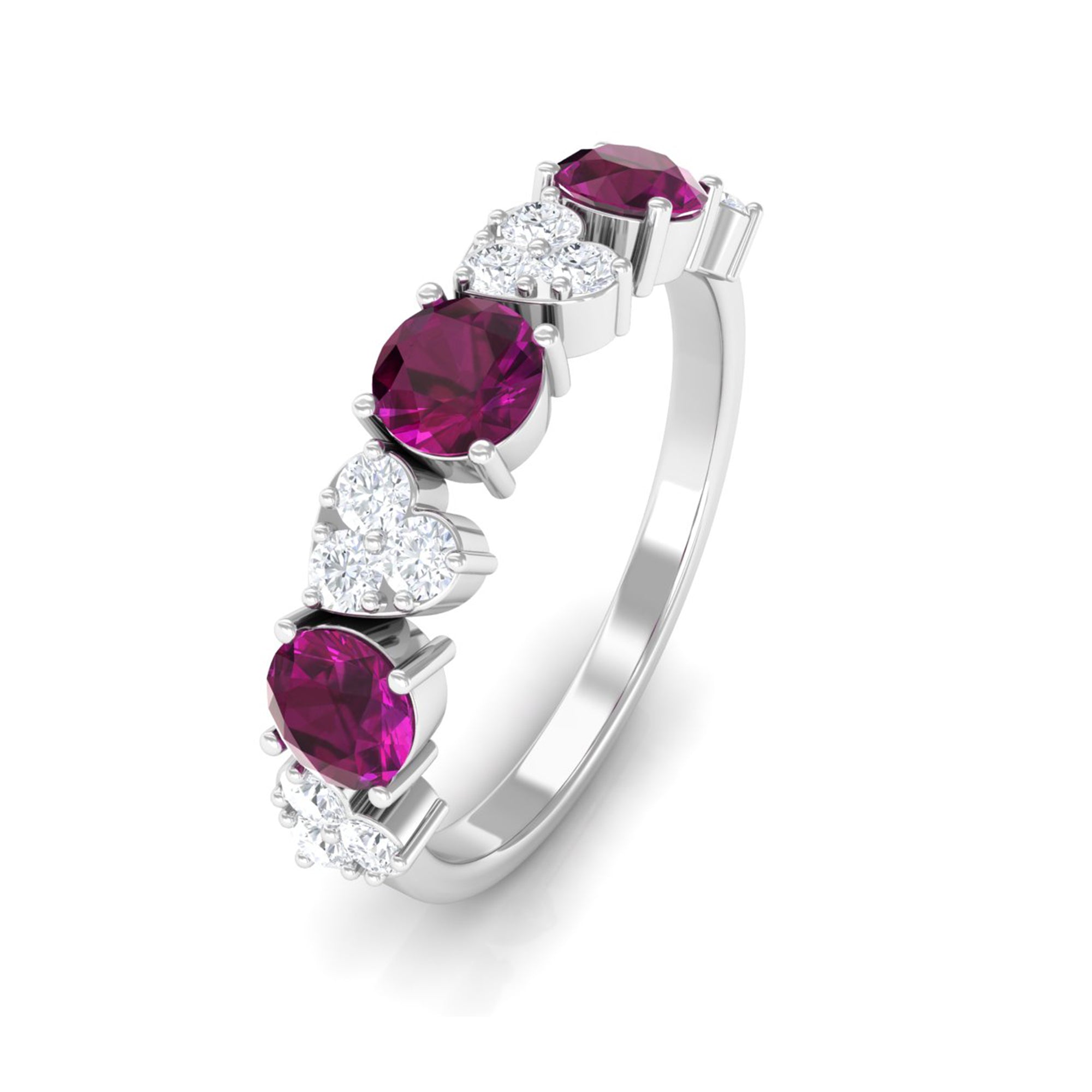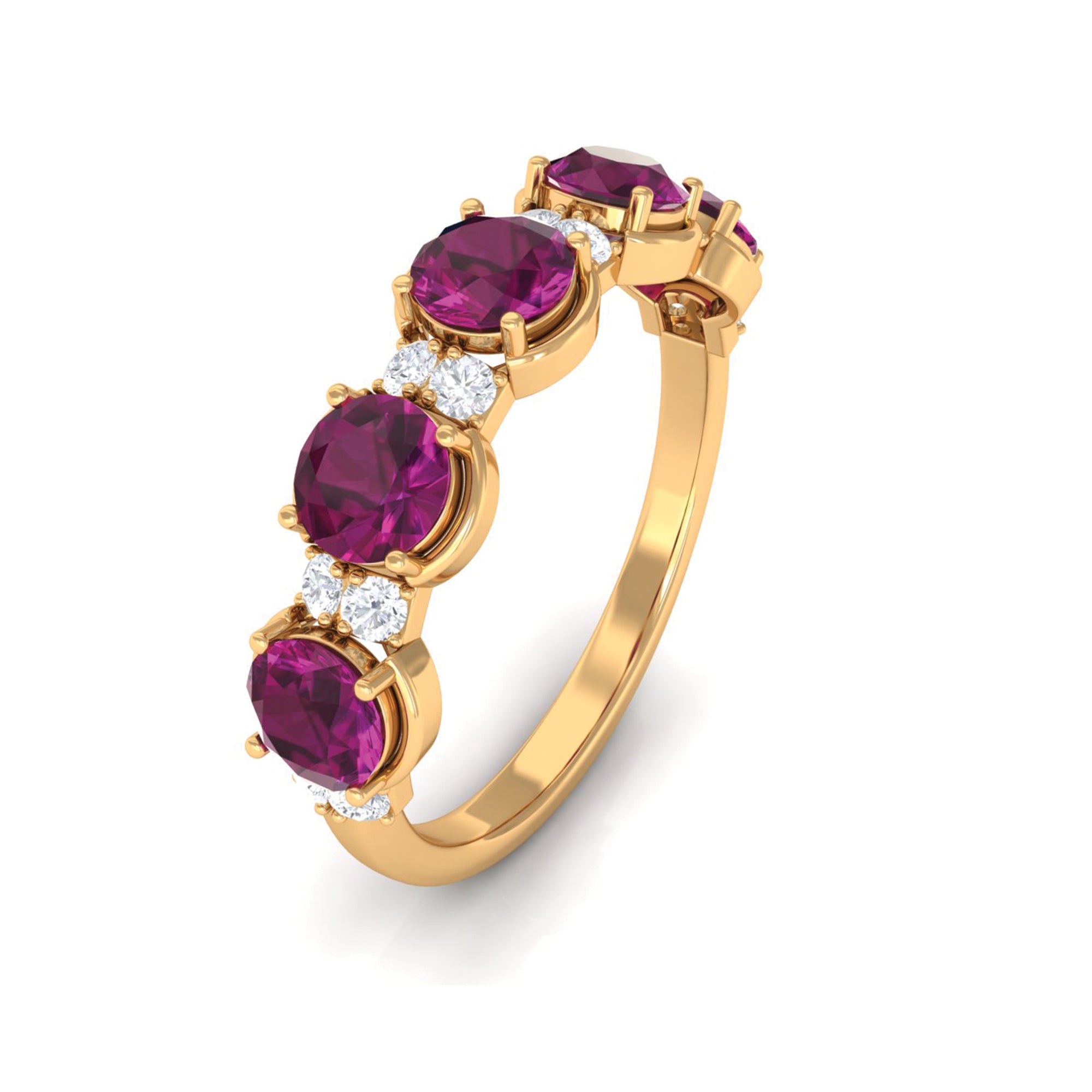 Just like the name suggests, a Rhodolite Eternity Ring is bejeweled with a row of Rhodolite all over the band. So, if you’re too mesmerized by the romantic rosy hue of Rhodolite, this style isn’t something to miss out on. Its symbolism does complete justice to the style. The endless circle of Rhodolite reflects upon the kind of love that knows no bounds, which also makes it a highly treasured Rhodolite Wedding Ring.