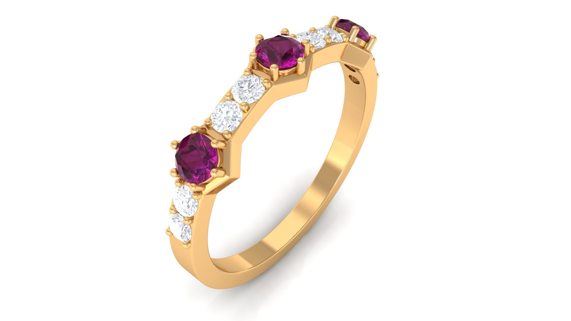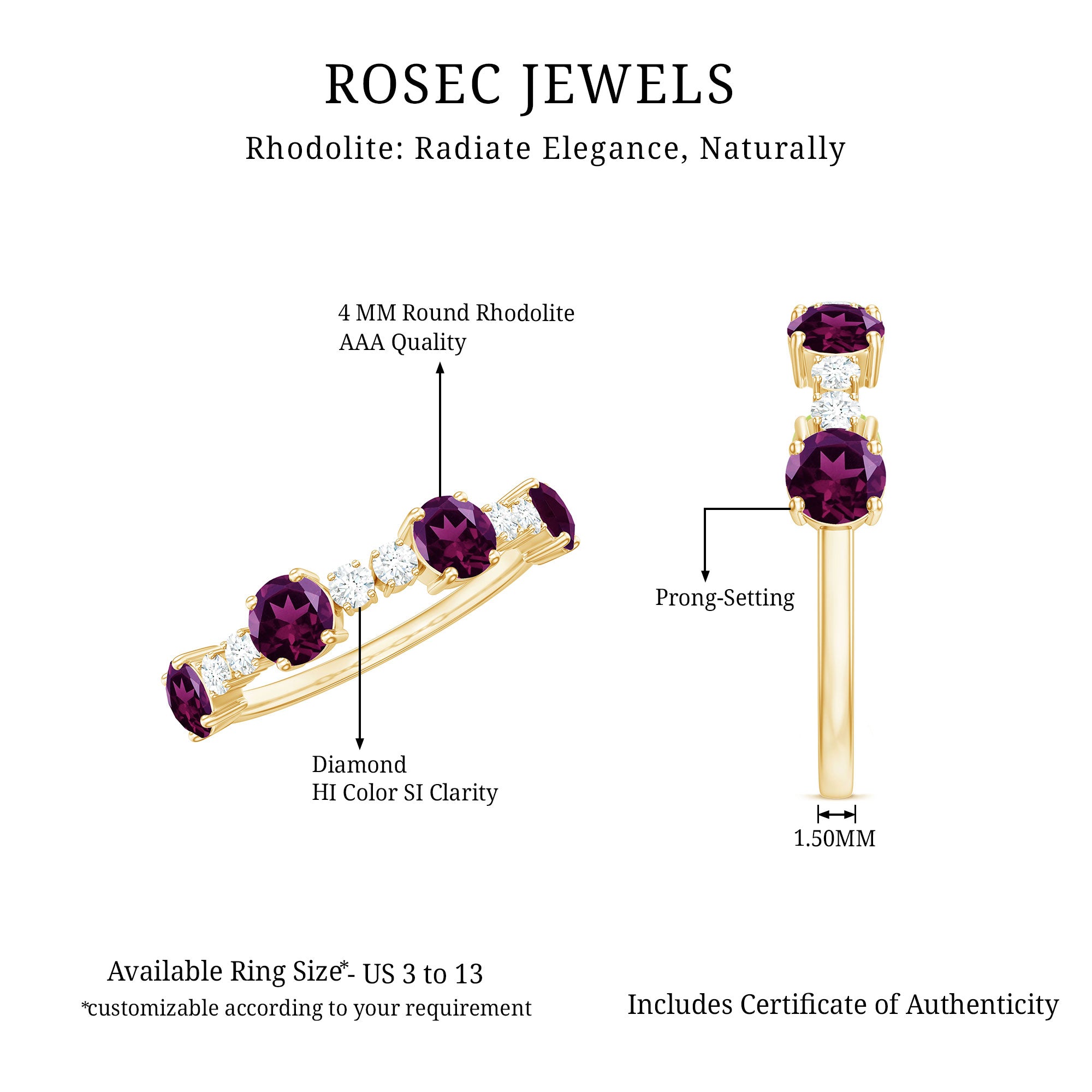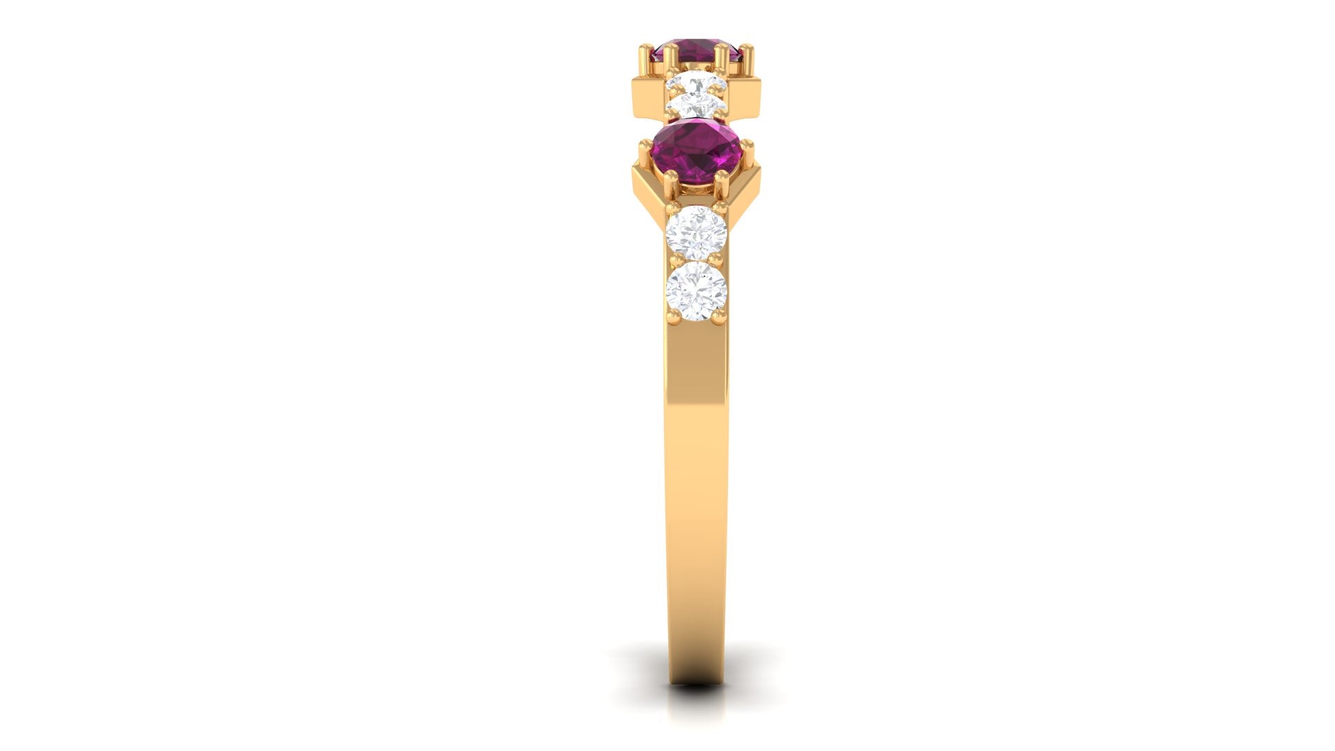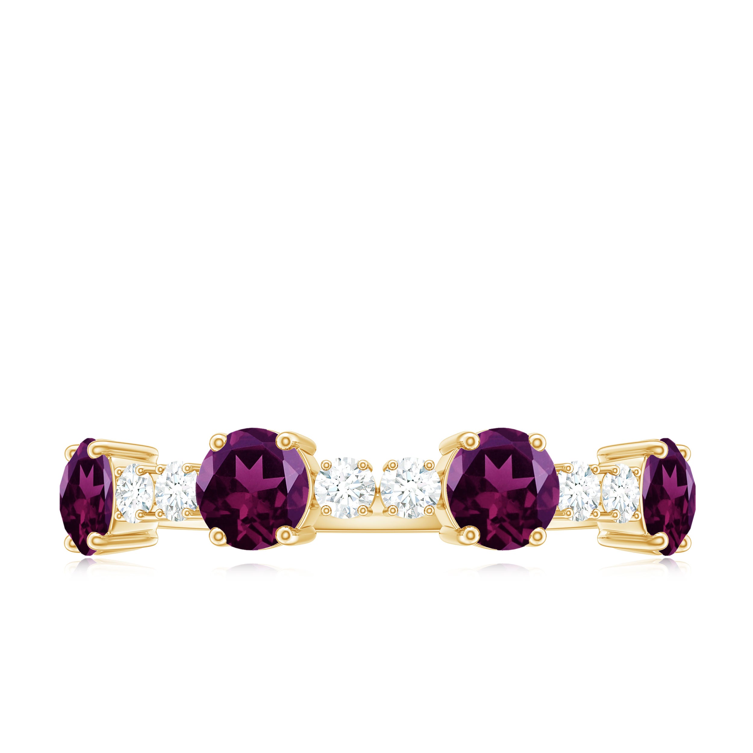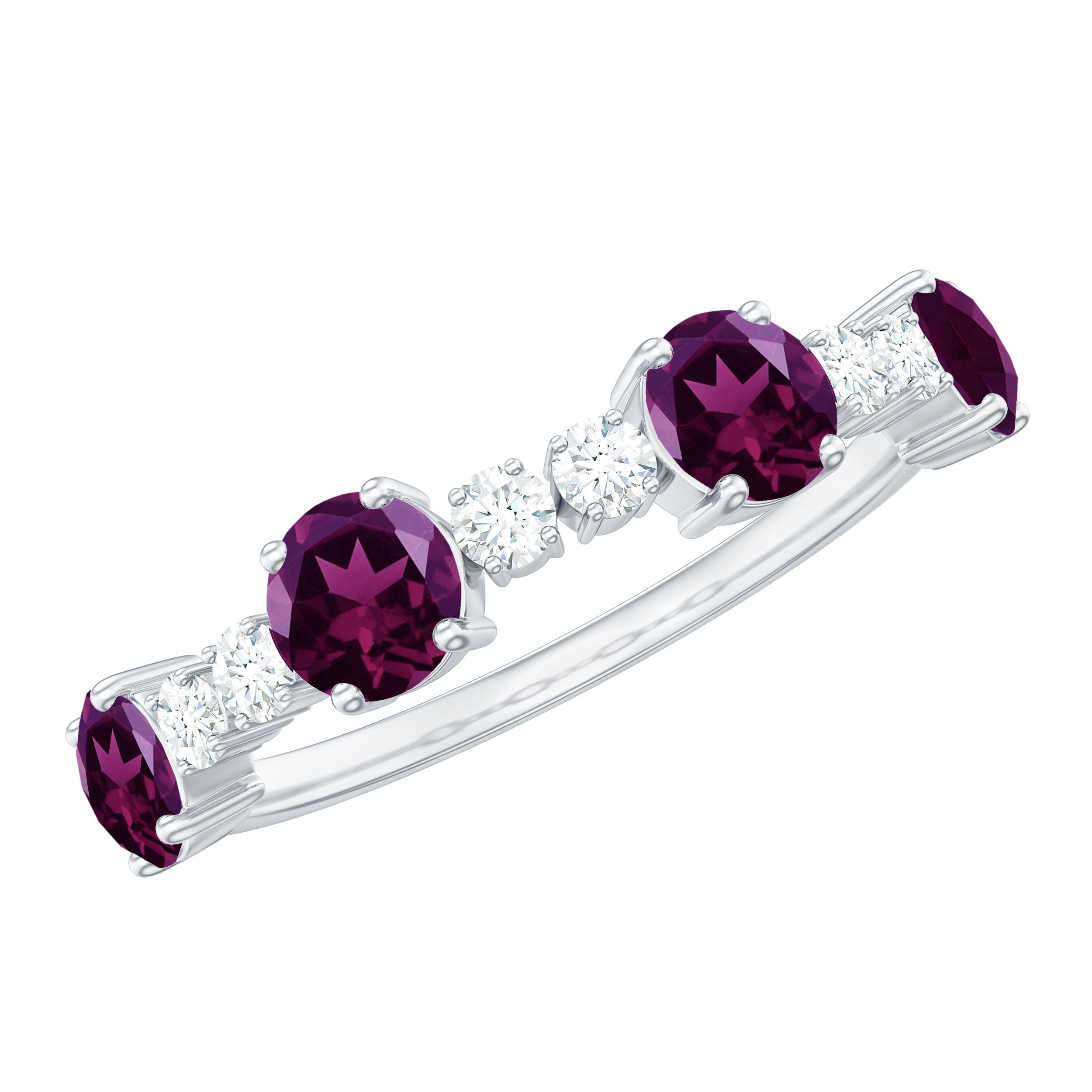 Just like the name suggests, a Rhodolite Eternity Ring is bejeweled with a row of Rhodolite all over the band. So, if you’re too mesmerized by the romantic rosy hue of Rhodolite, this style isn’t something to miss out on. Its symbolism does complete justice to the style. The endless circle of Rhodolite reflects upon the kind of love that knows no bounds, which also makes it a highly treasured Rhodolite Wedding Ring.