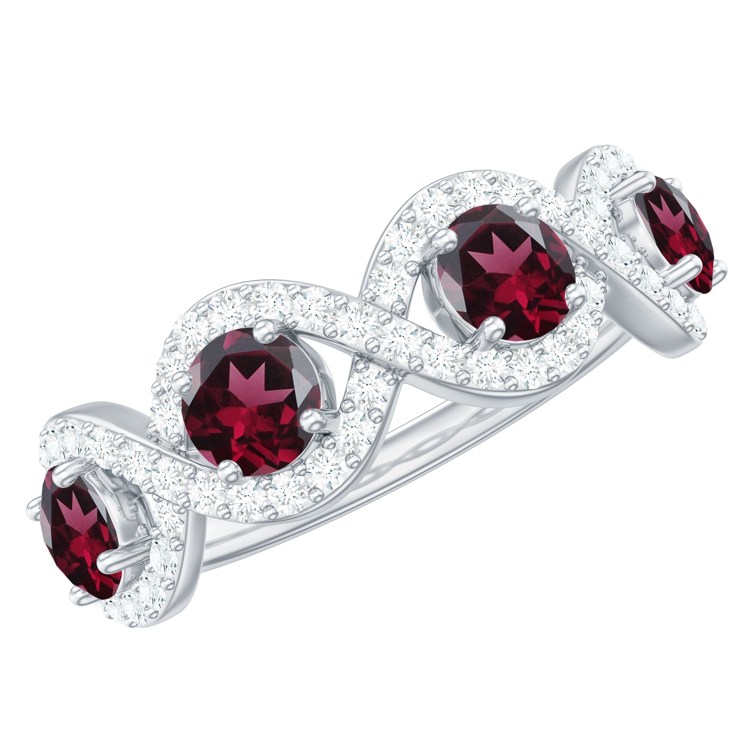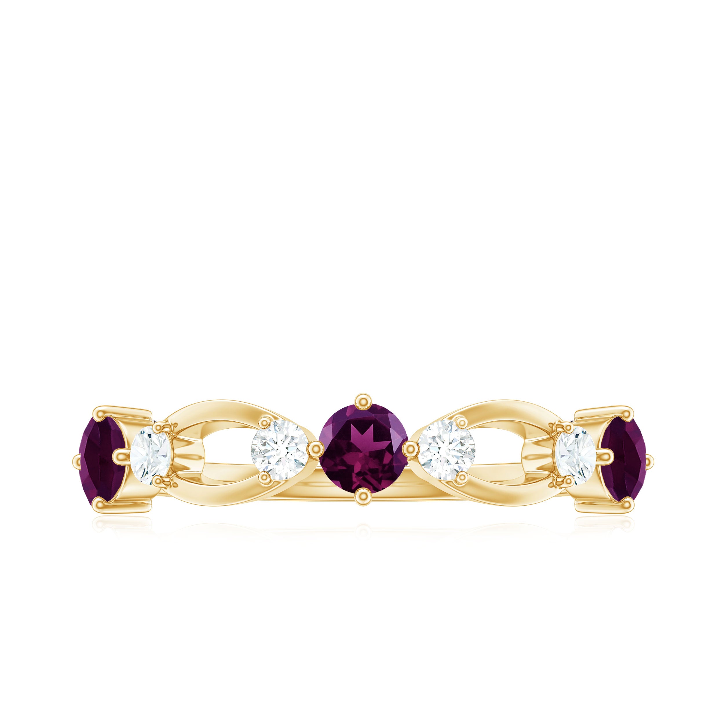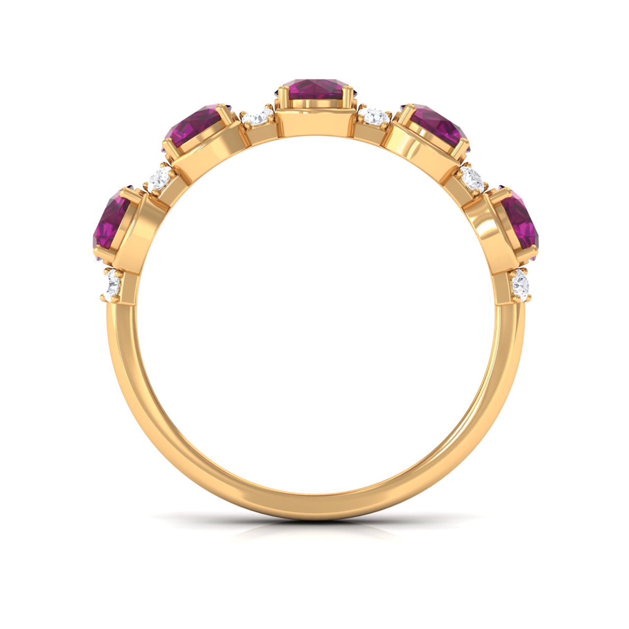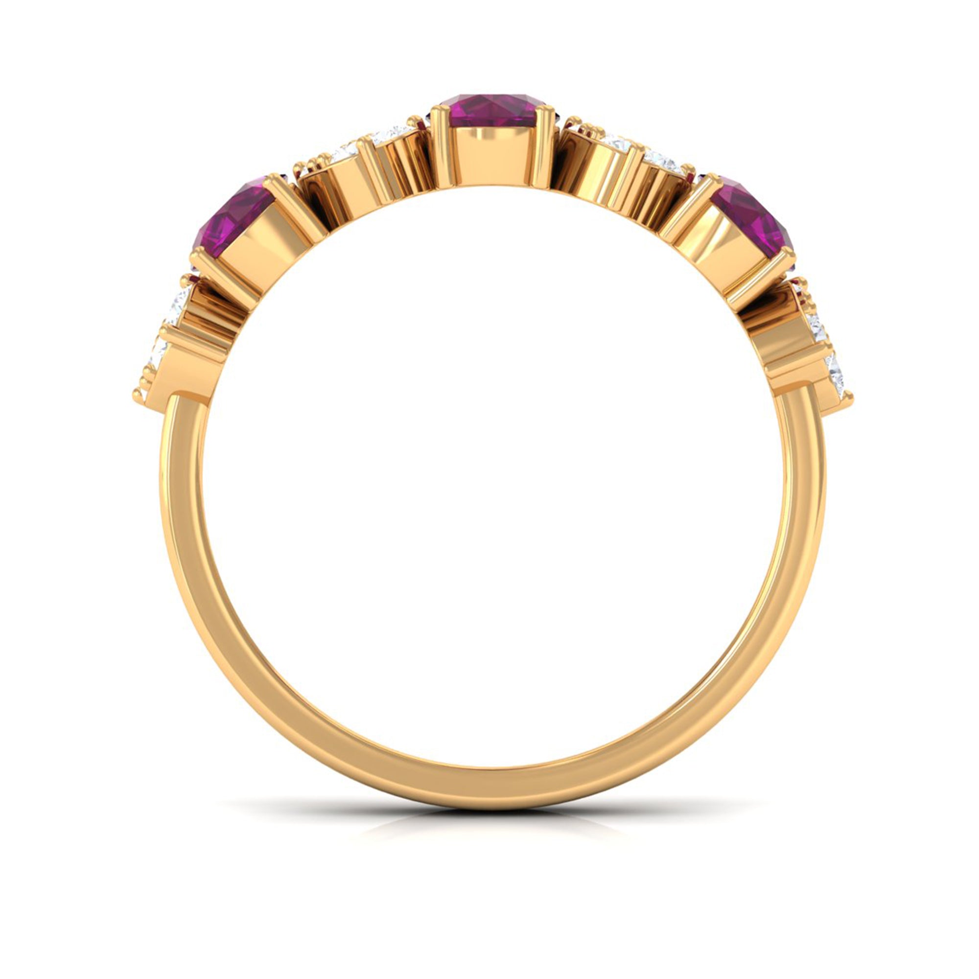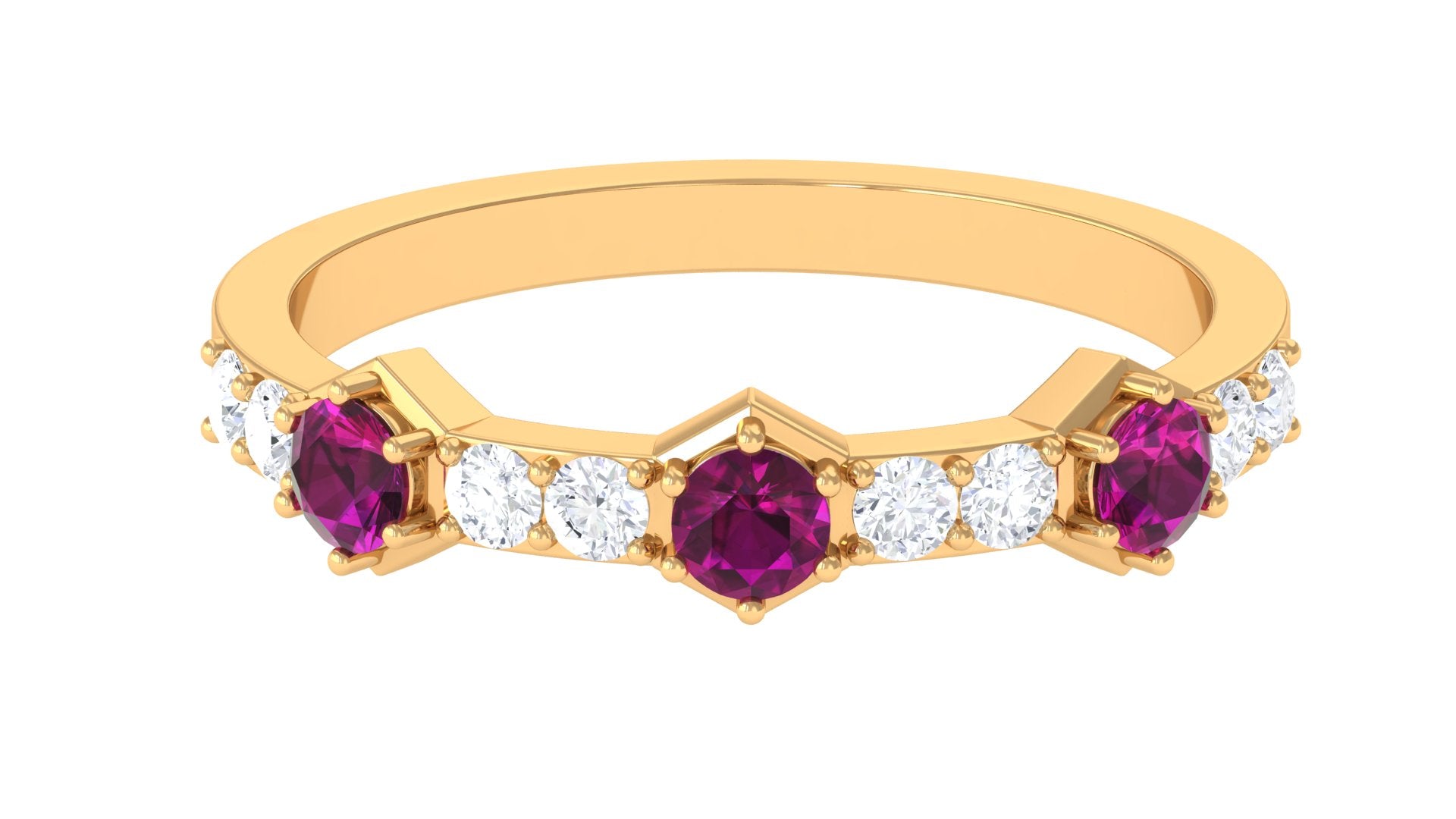 Just like the name suggests, a Rhodolite Eternity Ring is bejeweled with a row of Rhodolite all over the band. So, if you’re too mesmerized by the romantic rosy hue of Rhodolite, this style isn’t something to miss out on. Its symbolism does complete justice to the style. The endless circle of Rhodolite reflects upon the kind of love that knows no bounds, which also makes it a highly treasured Rhodolite Wedding Ring.