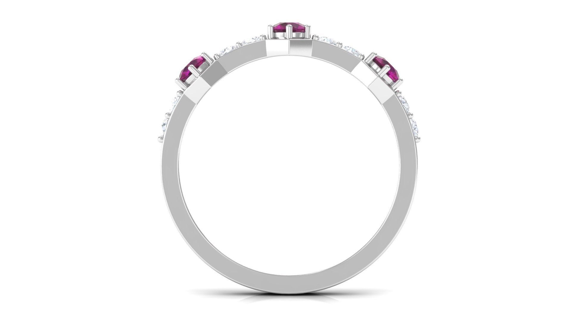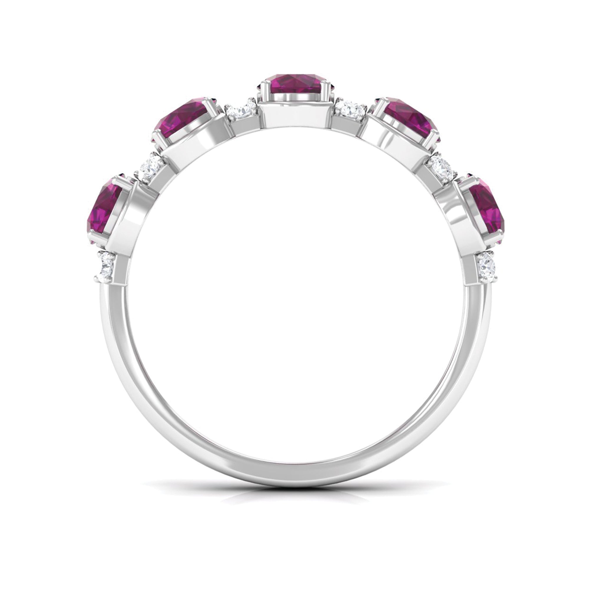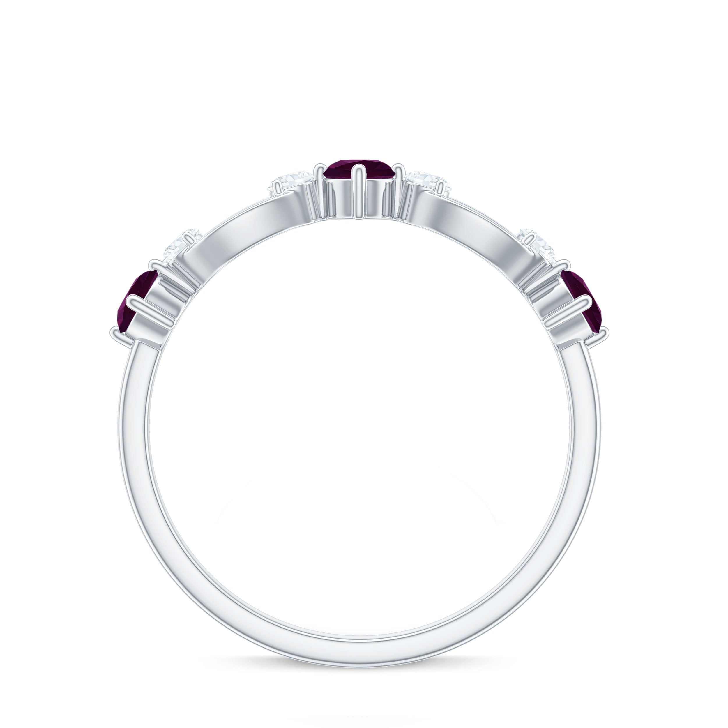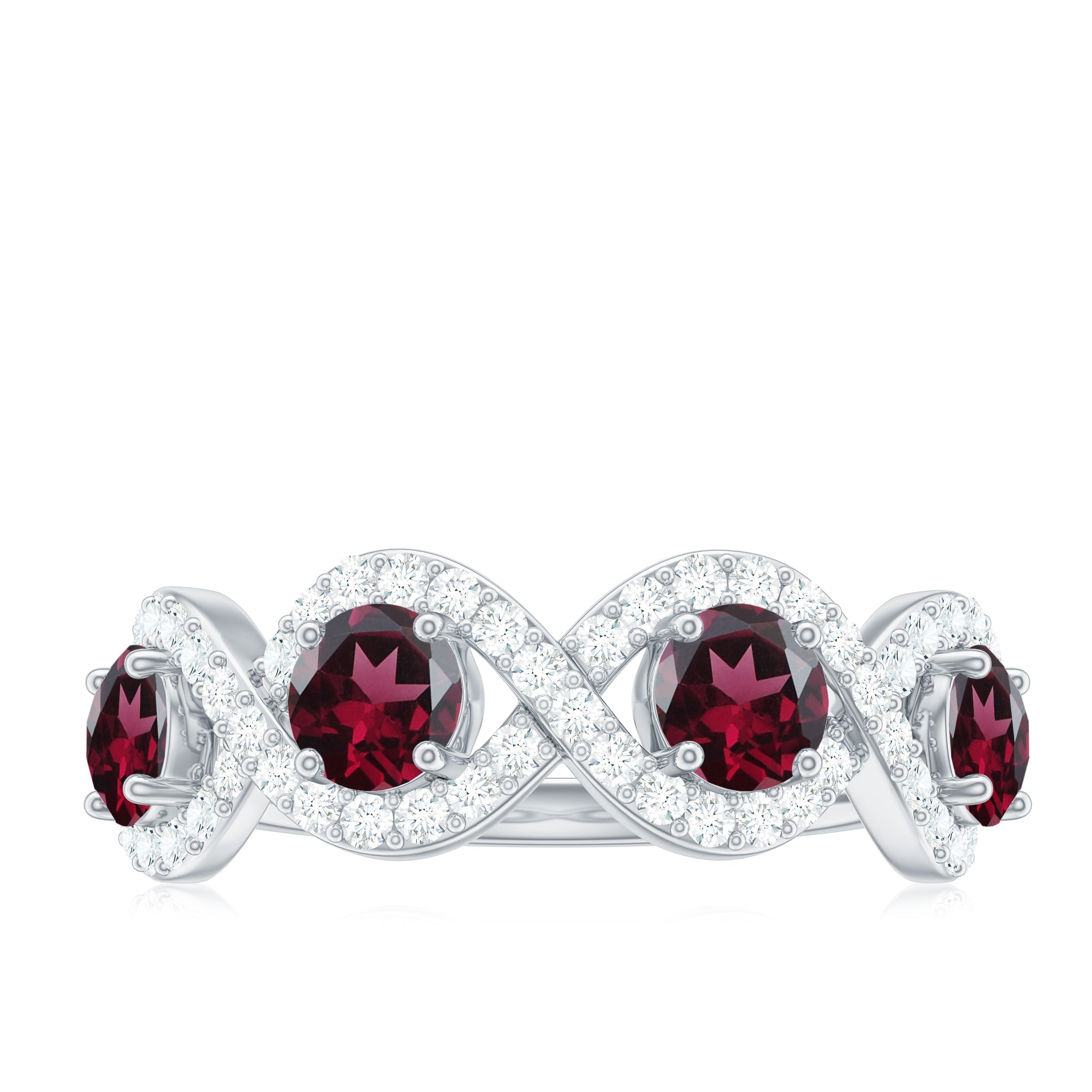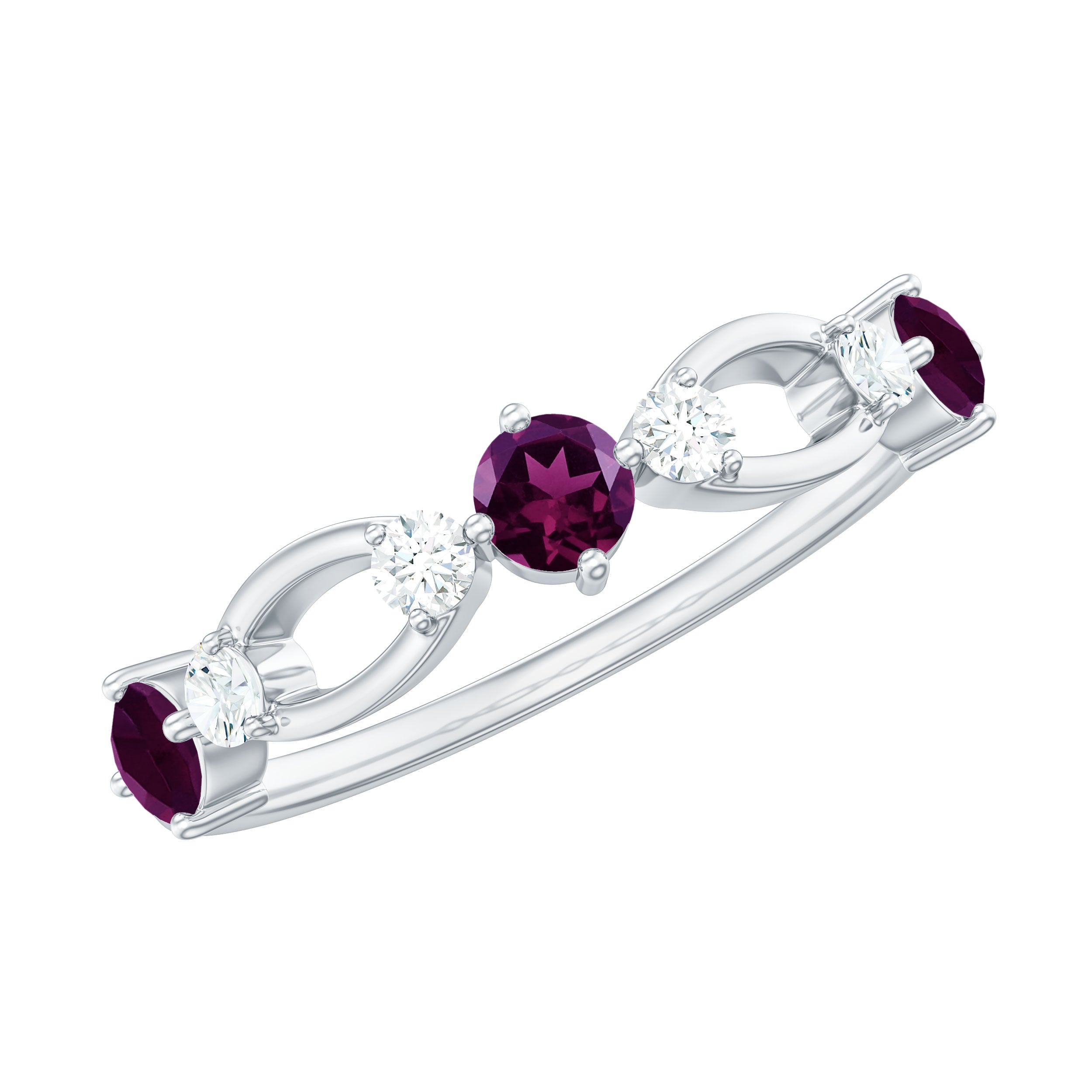 Just like the name suggests, a Rhodolite Eternity Ring is bejeweled with a row of Rhodolite all over the band. So, if you’re too mesmerized by the romantic rosy hue of Rhodolite, this style isn’t something to miss out on. Its symbolism does complete justice to the style. The endless circle of Rhodolite reflects upon the kind of love that knows no bounds, which also makes it a highly treasured Rhodolite Wedding Ring.