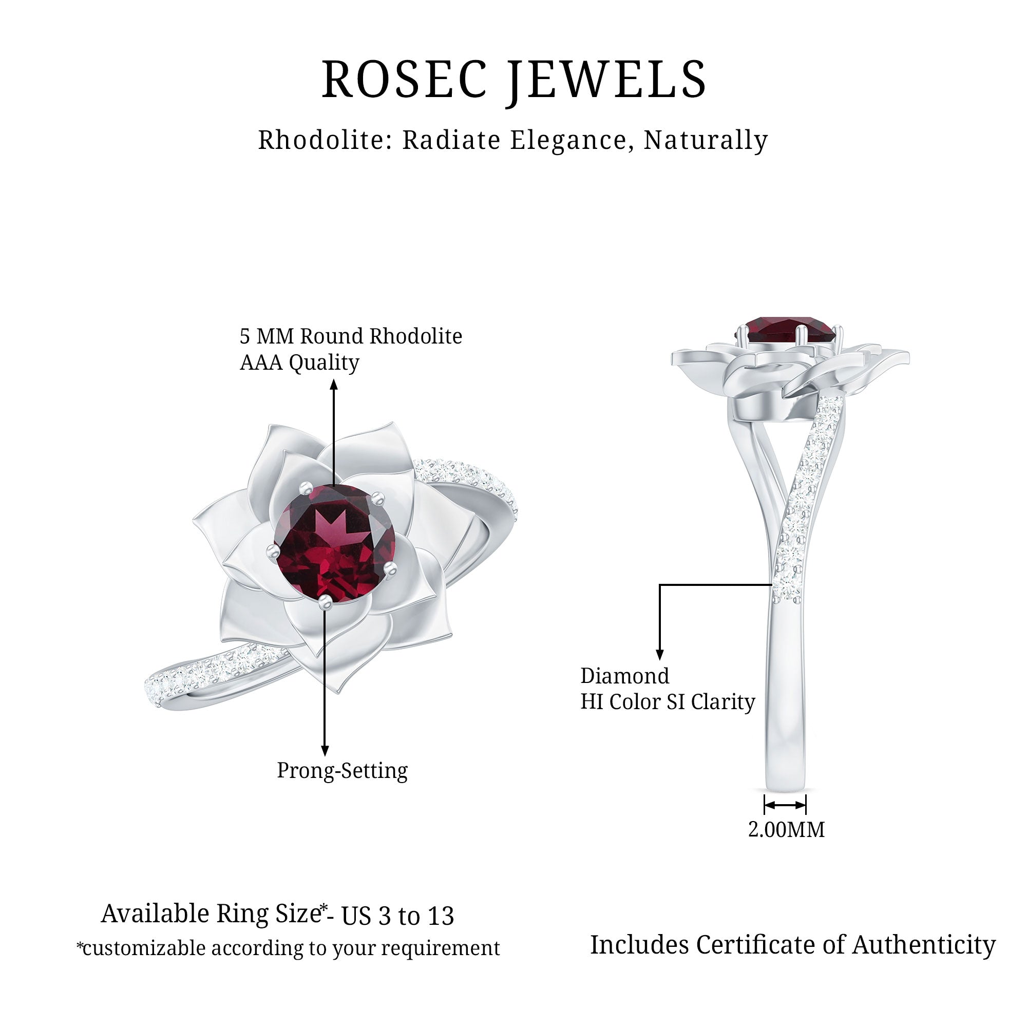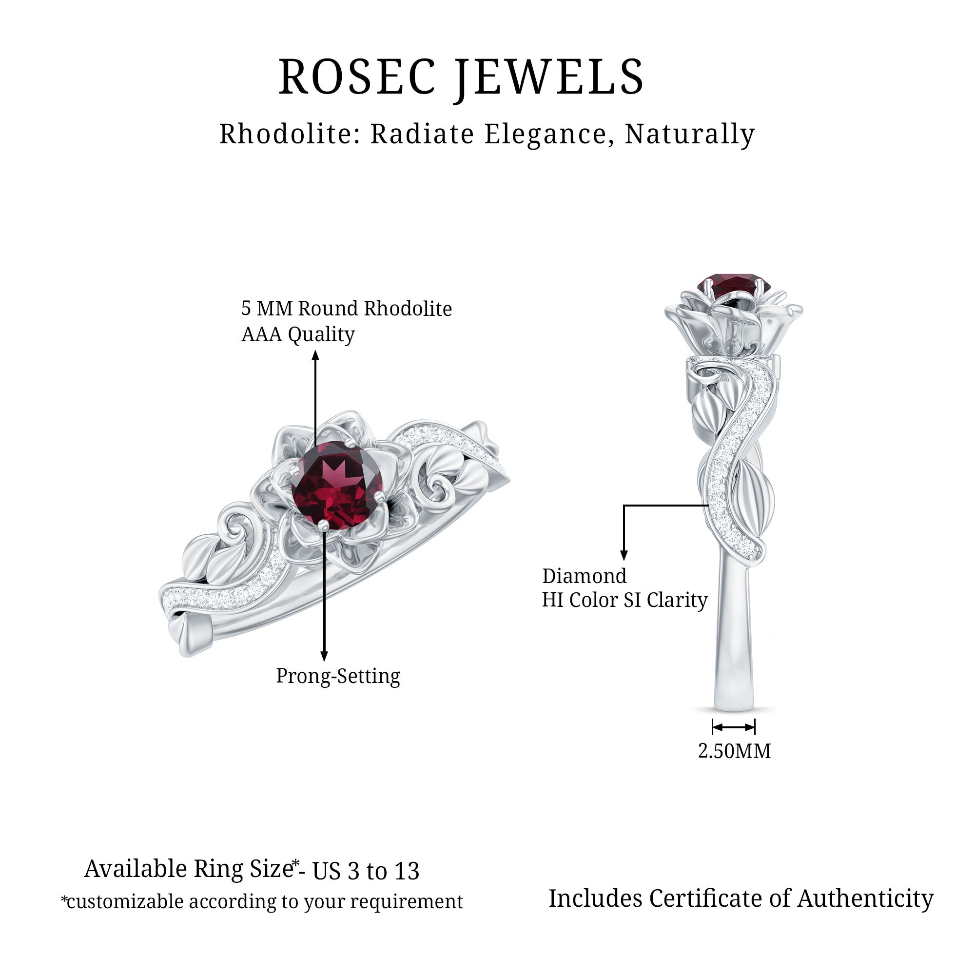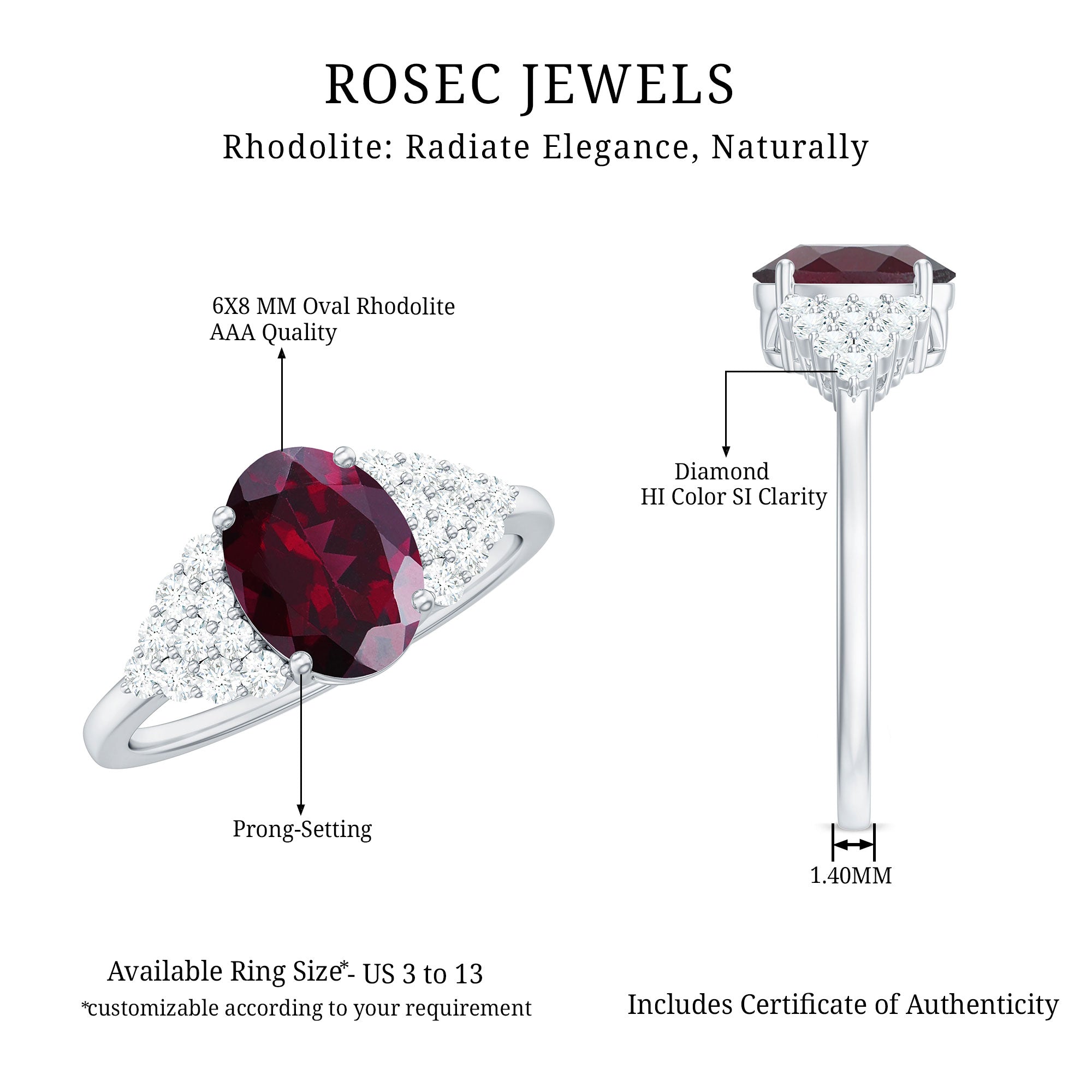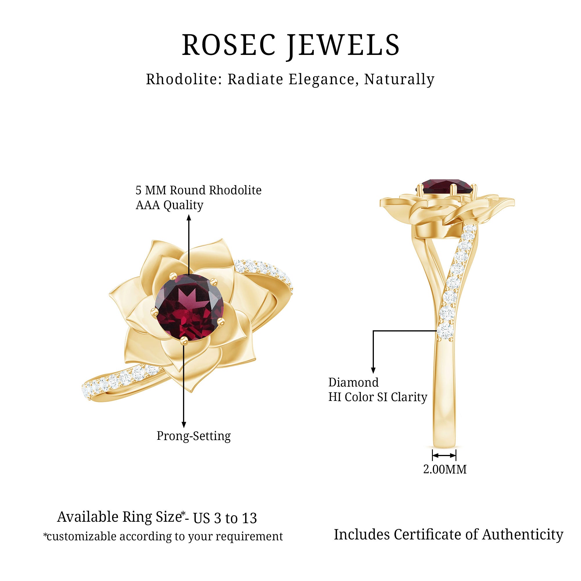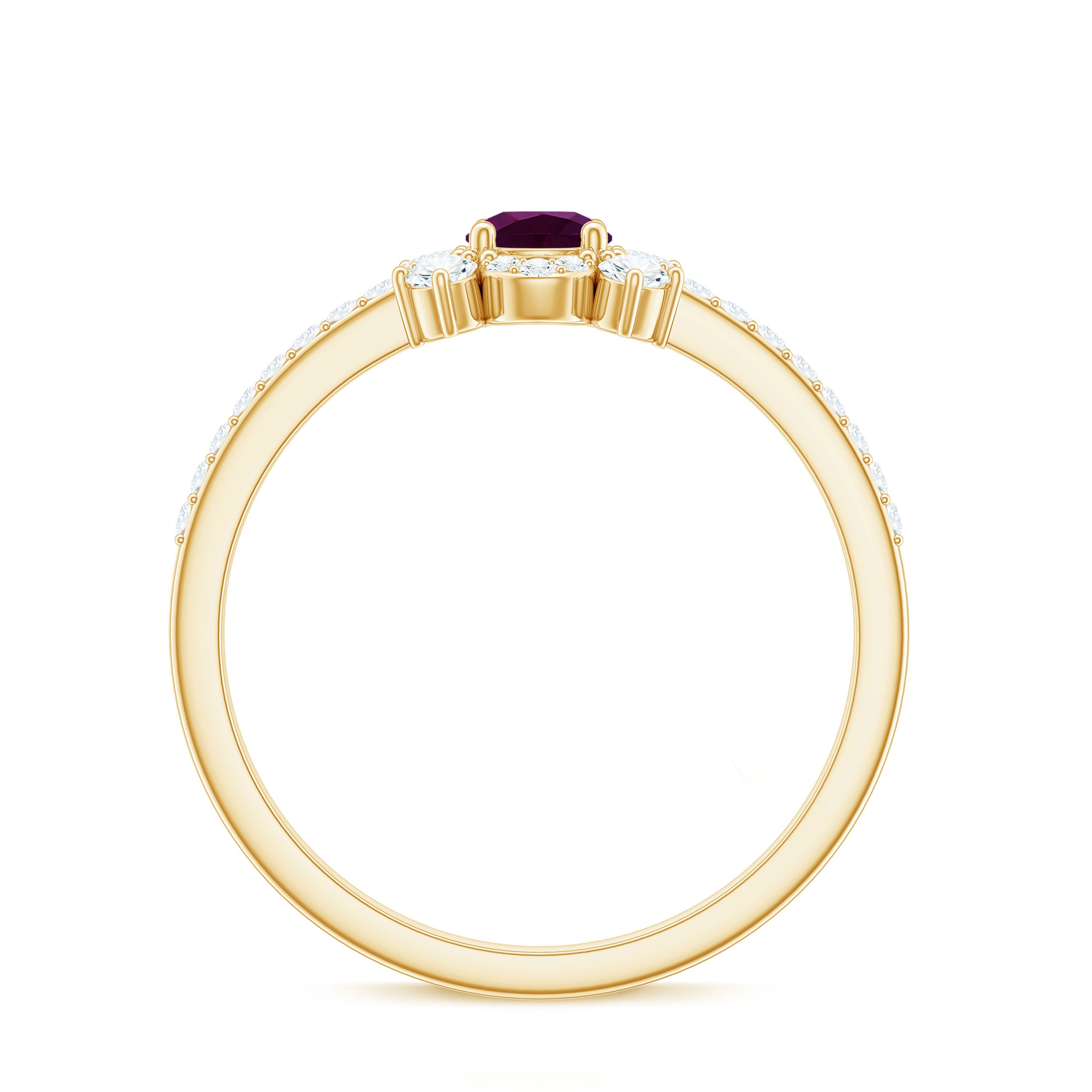 Adorned with the Single Stone of Rhodolite that takes all the center stage, a Rhodolite Solitaire Ring is the go-to choice of ring style. The Rhodolite Solitaire here is at least 6 MM in size. Despite its understated style, this ring style pleases many senses of style, which makes it a highly versatile Rhodolite Engagement Ring. For a classic aesthetic, a Round Cut Rhodolite Ring works best. While for a fancier aesthetic, nothing better than a ring fashioned in princess, marquise, or pear-cut Rhodolite. If you fancy a vintage vibe, you won’t find a better pick than a Rhodolite Ring adorned with Asscher, Emerald, or Cushion Cut.