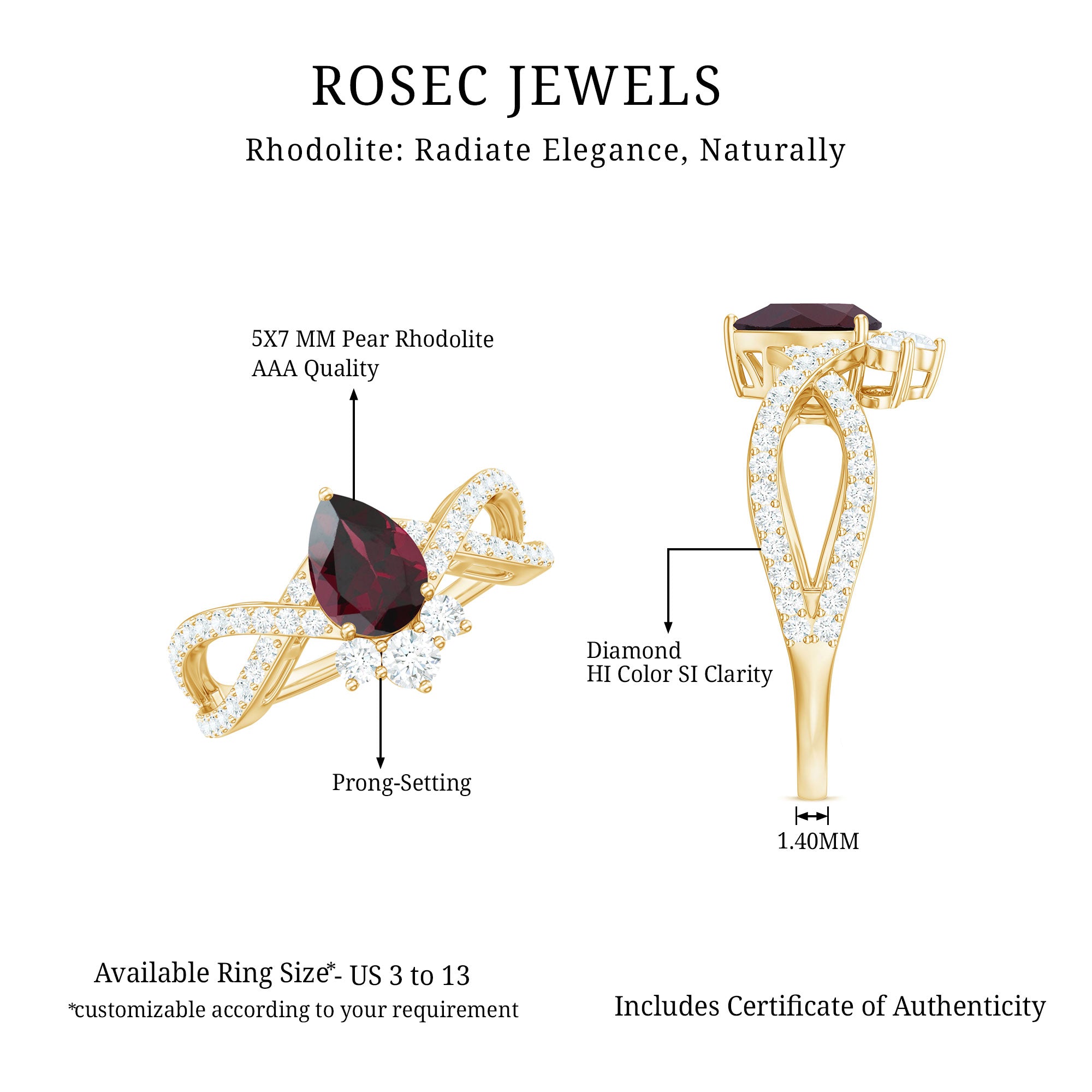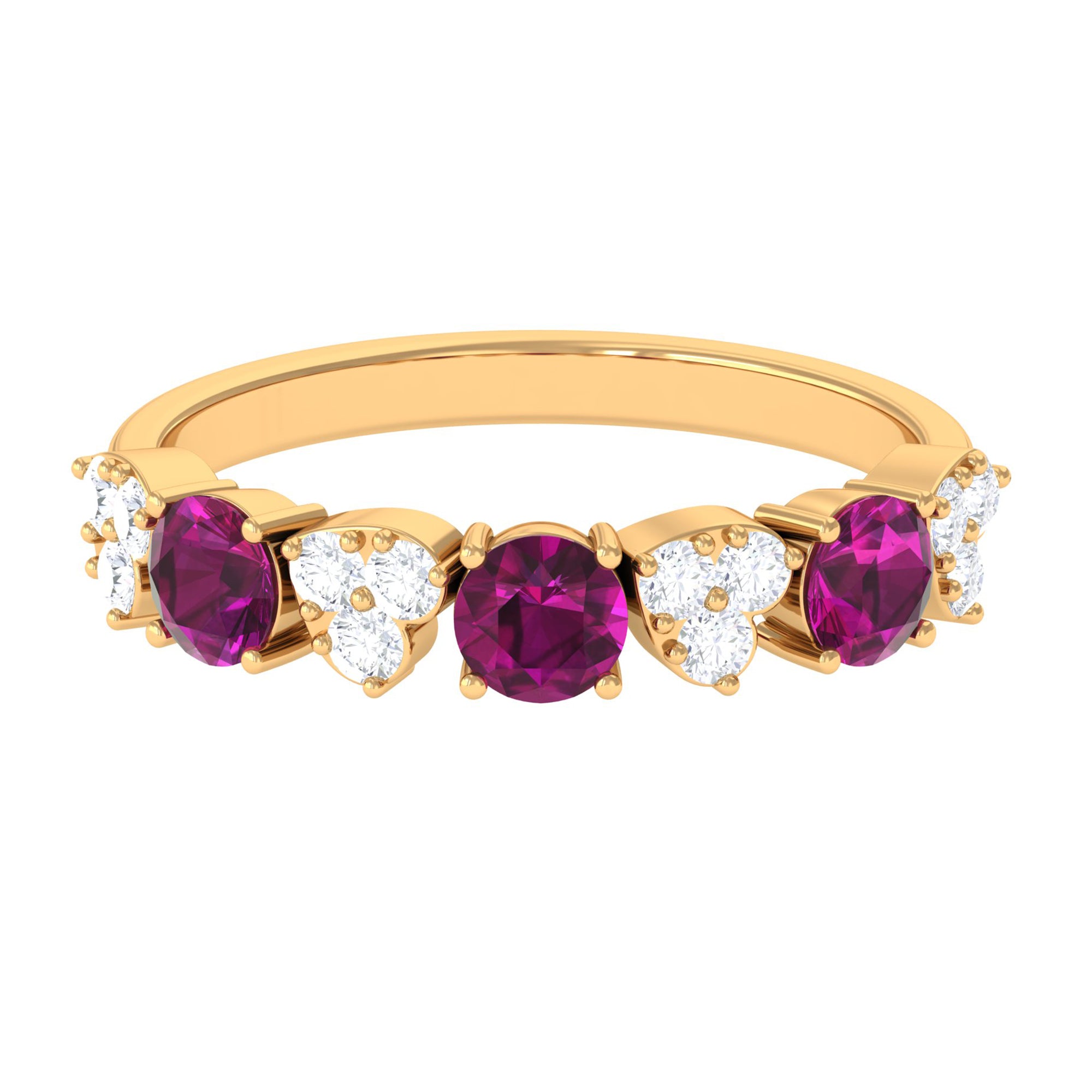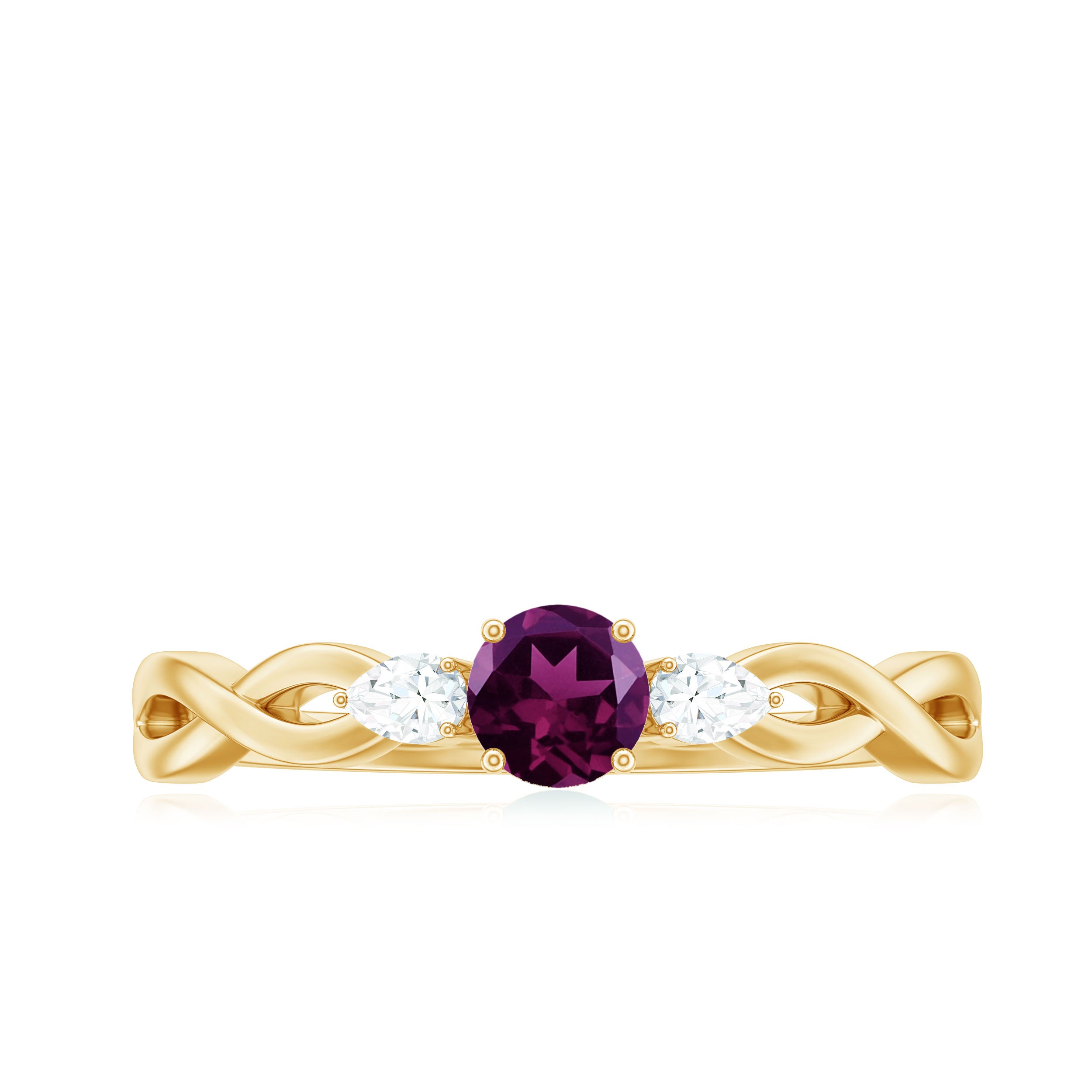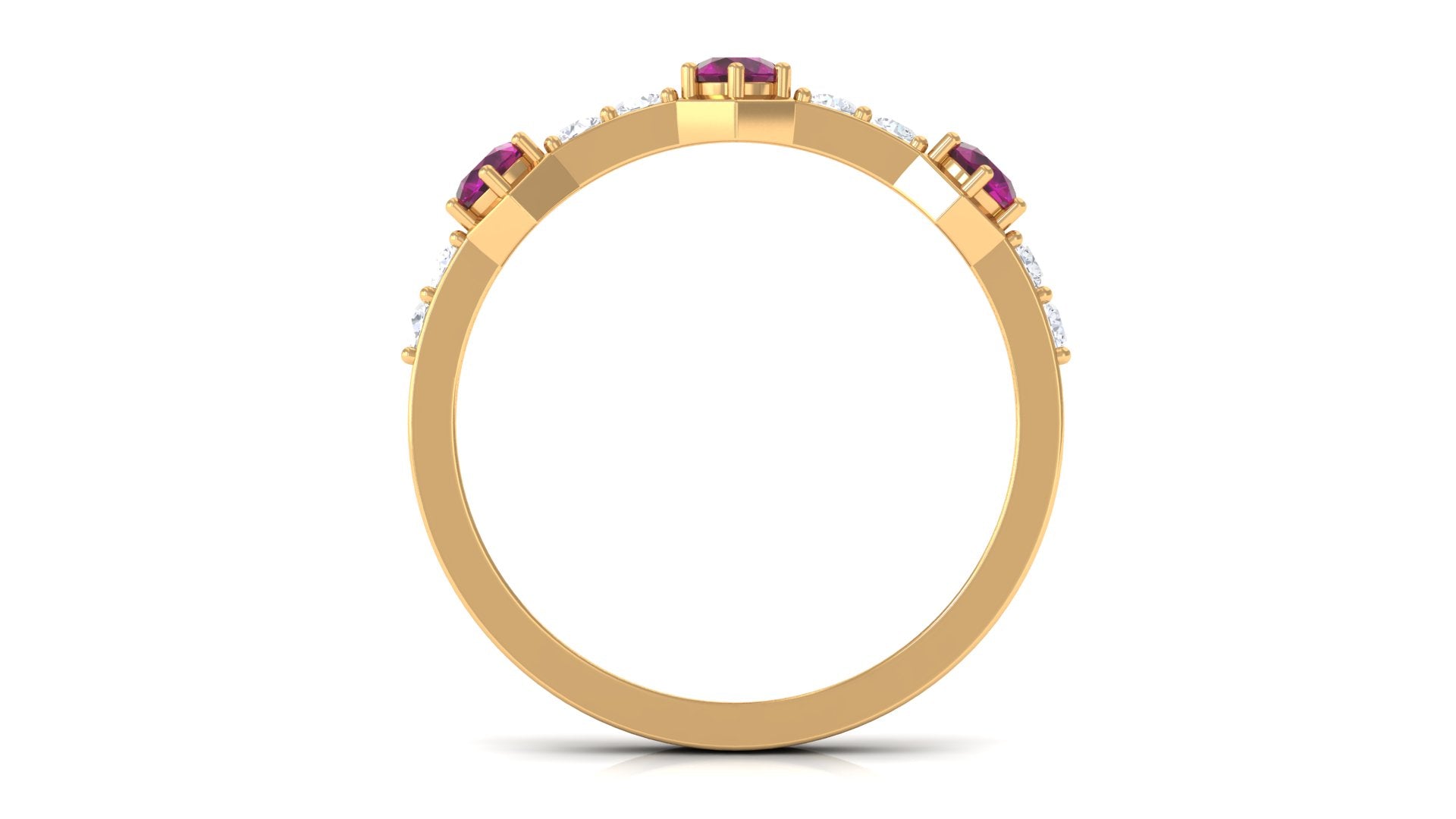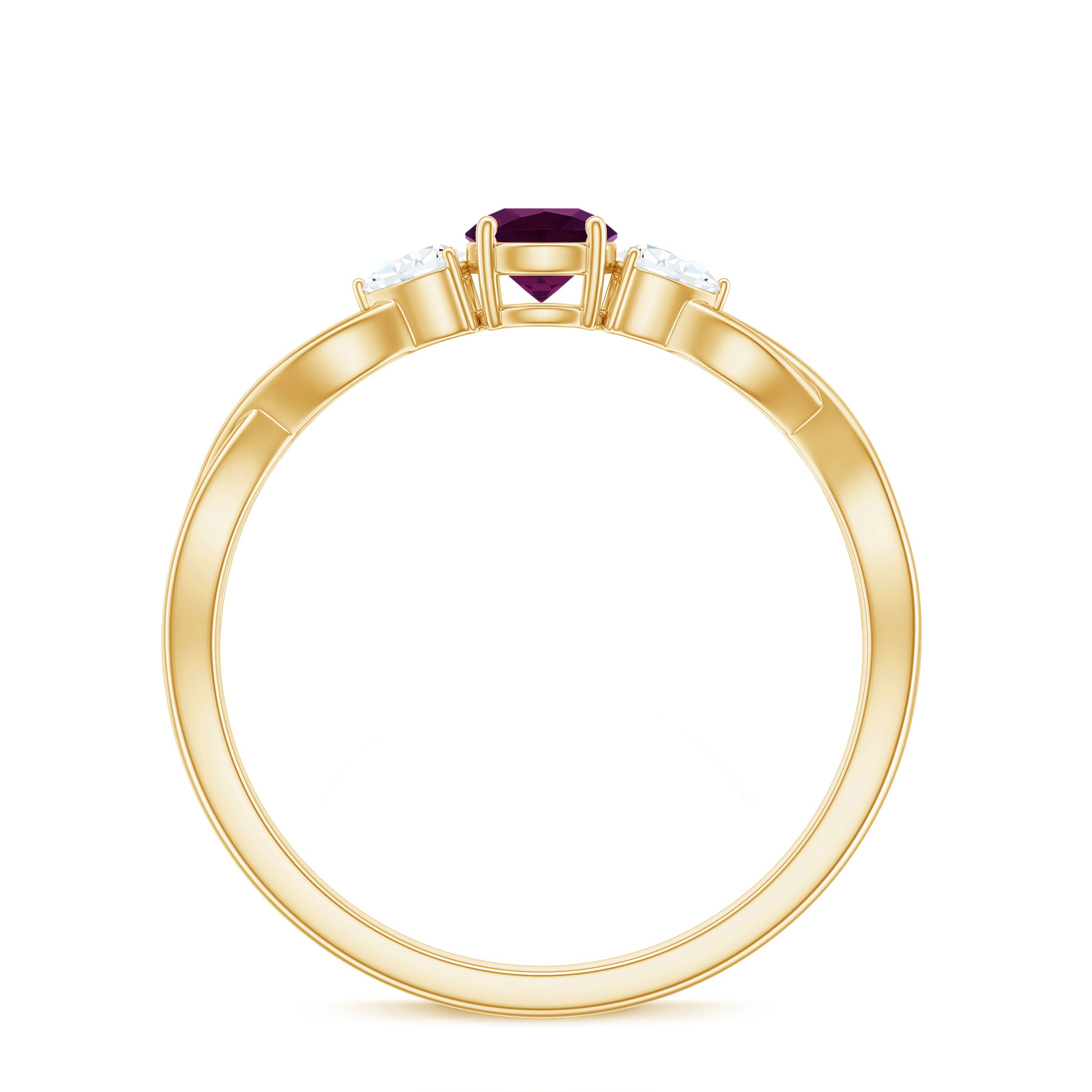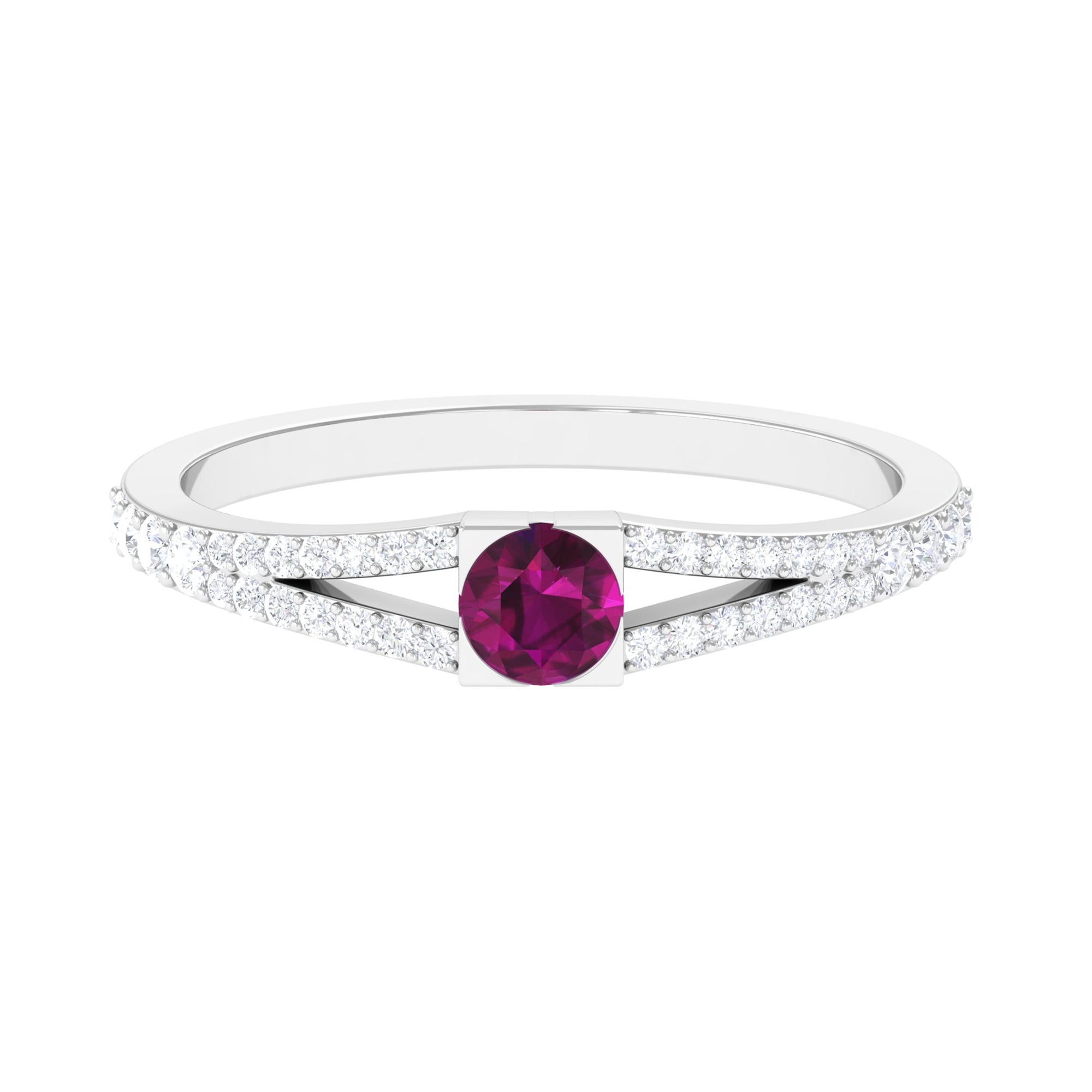 Adorned with the Single Stone of Rhodolite that takes all the center stage, a Rhodolite Solitaire Ring is the go-to choice of ring style. The Rhodolite Solitaire here is at least 6 MM in size. Despite its understated style, this ring style pleases many senses of style, which makes it a highly versatile Rhodolite Engagement Ring. For a classic aesthetic, a Round Cut Rhodolite Ring works best. While for a fancier aesthetic, nothing better than a ring fashioned in princess, marquise, or pear-cut Rhodolite. If you fancy a vintage vibe, you won’t find a better pick than a Rhodolite Ring adorned with Asscher, Emerald, or Cushion Cut.