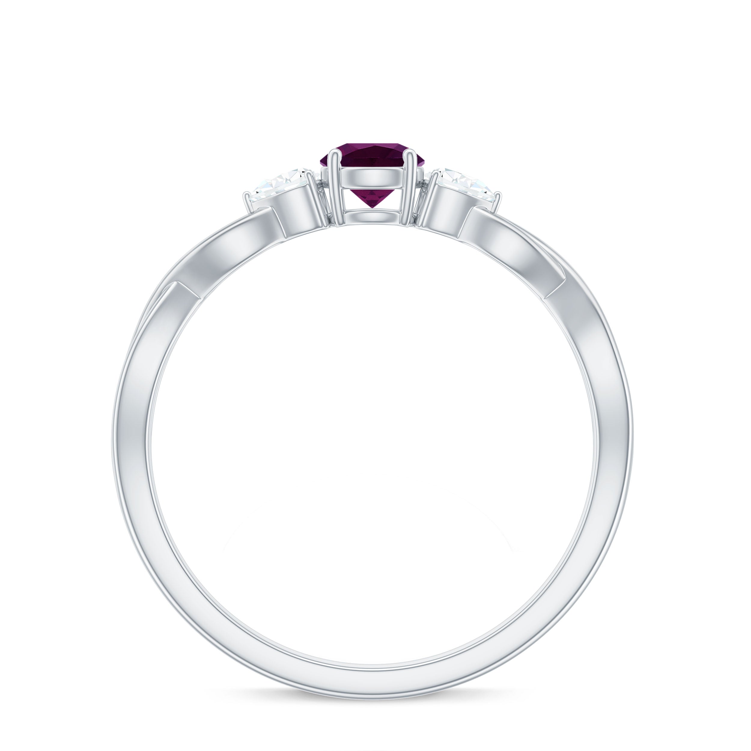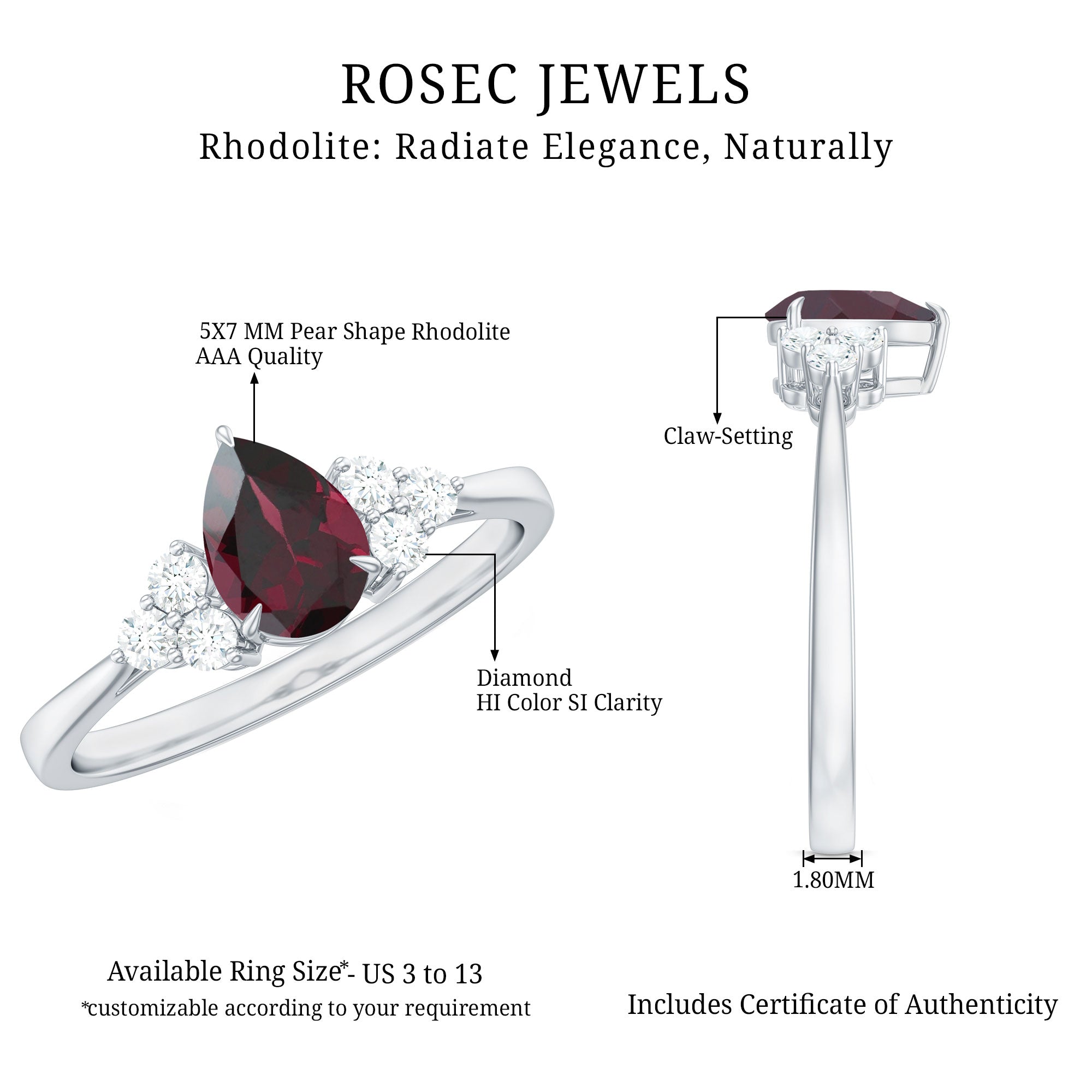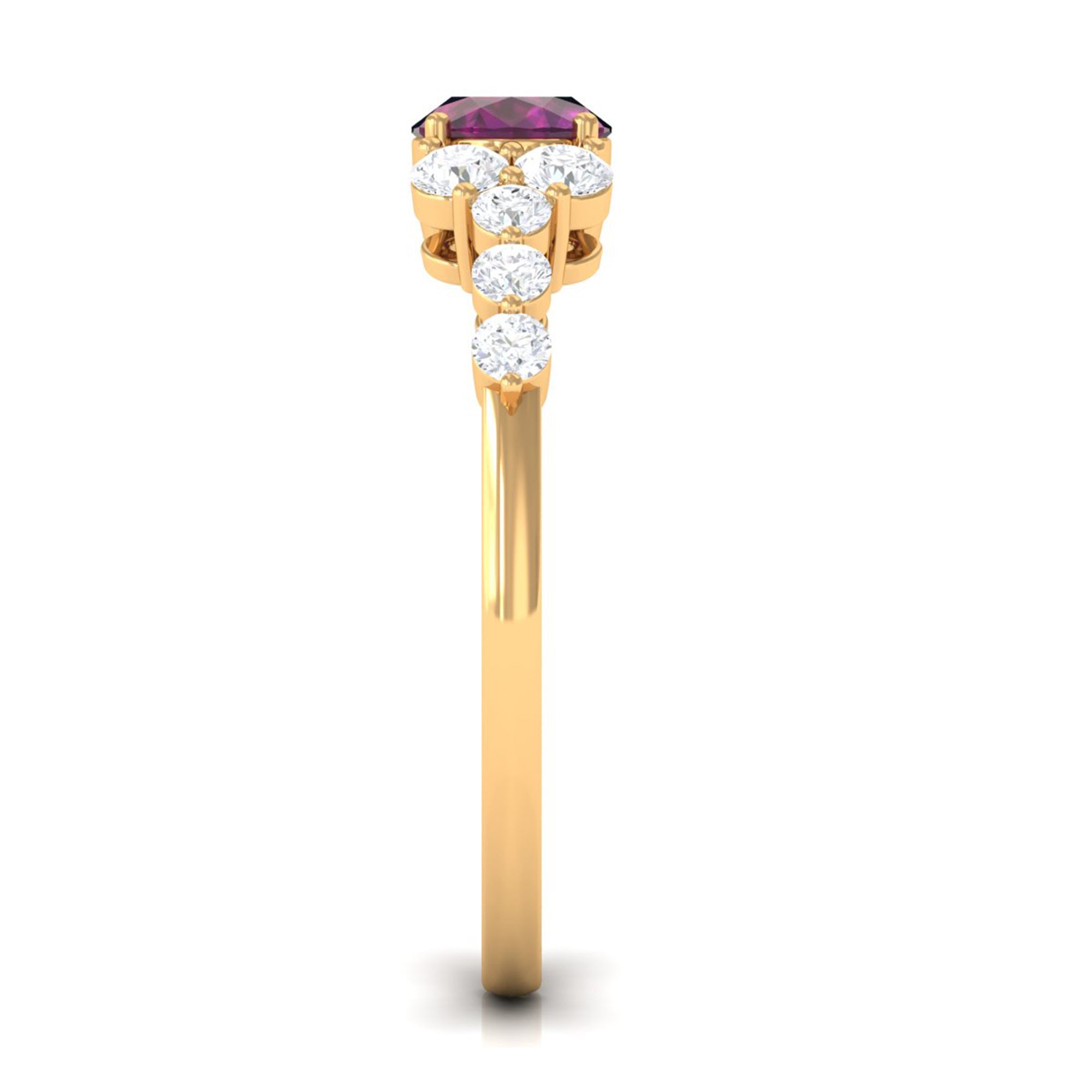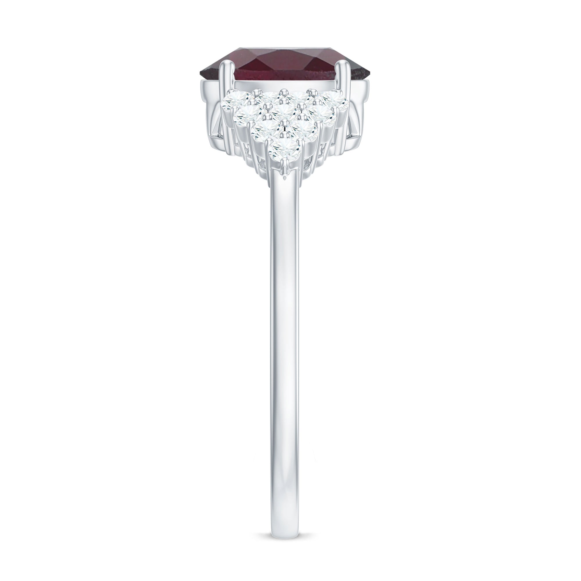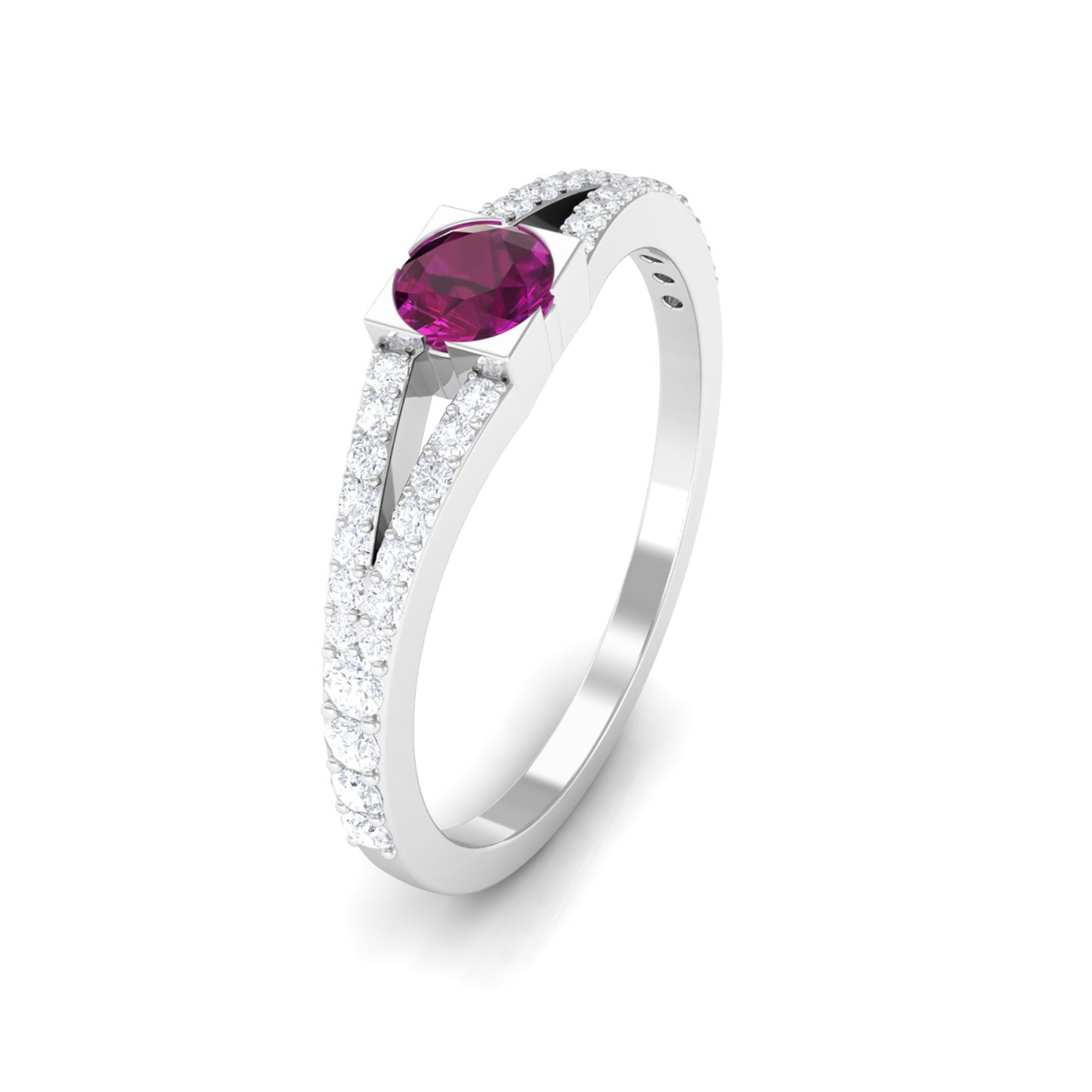 Adorned with the Single Stone of Rhodolite that takes all the center stage, a Rhodolite Solitaire Ring is the go-to choice of ring style. The Rhodolite Solitaire here is at least 6 MM in size. Despite its understated style, this ring style pleases many senses of style, which makes it a highly versatile Rhodolite Engagement Ring. For a classic aesthetic, a Round Cut Rhodolite Ring works best. While for a fancier aesthetic, nothing better than a ring fashioned in princess, marquise, or pear-cut Rhodolite. If you fancy a vintage vibe, you won’t find a better pick than a Rhodolite Ring adorned with Asscher, Emerald, or Cushion Cut.