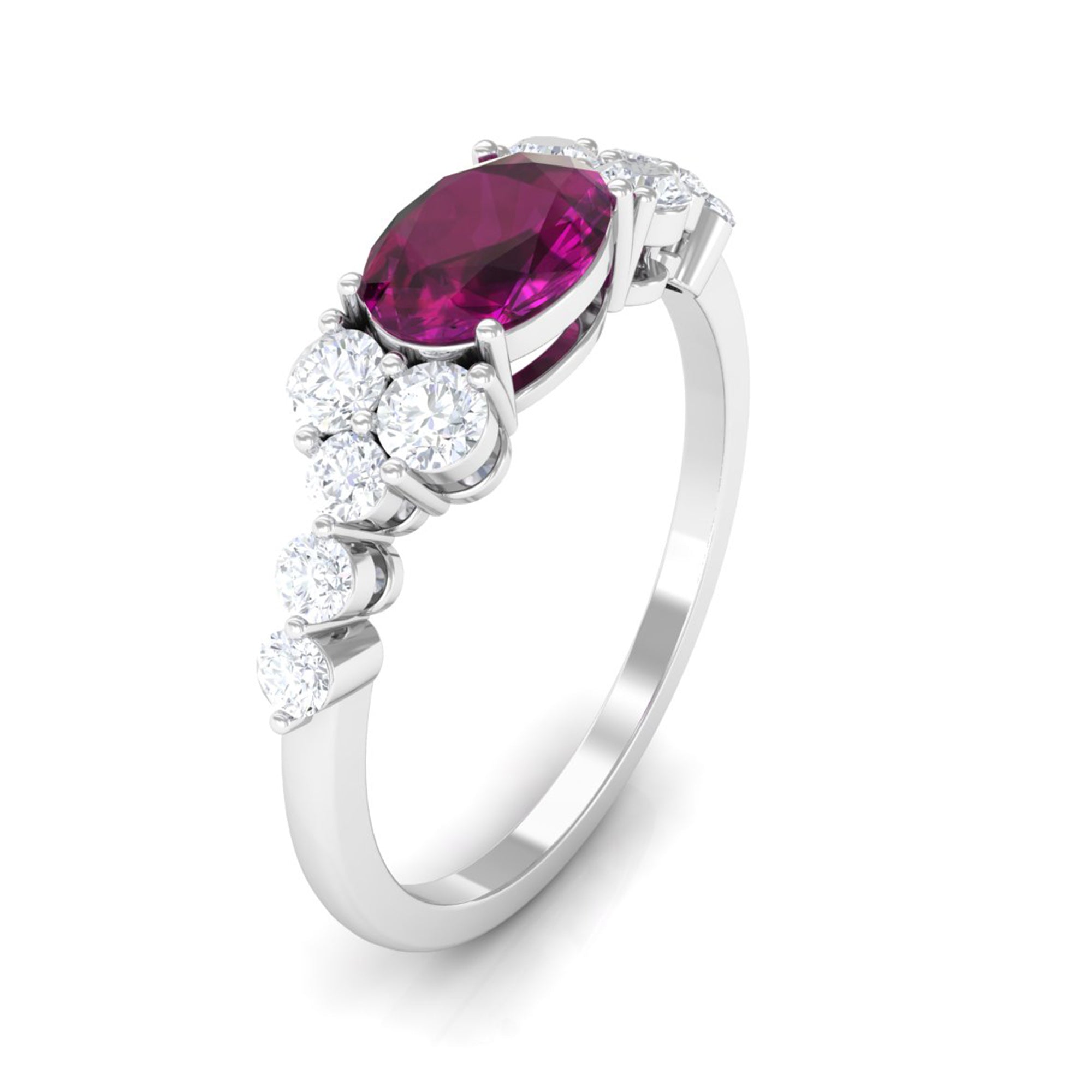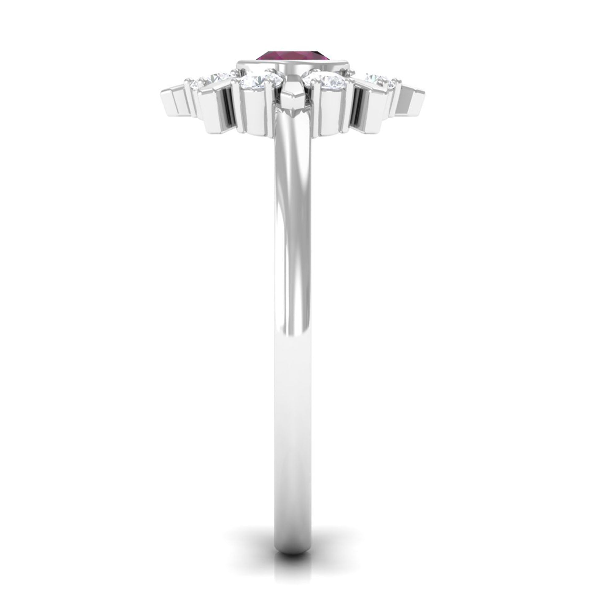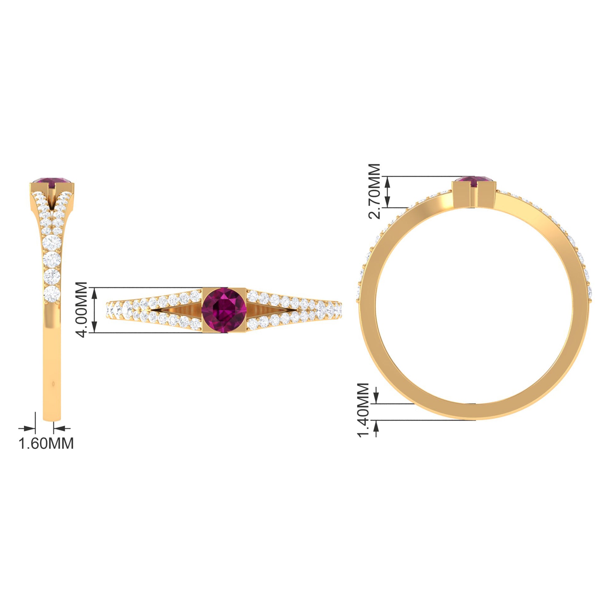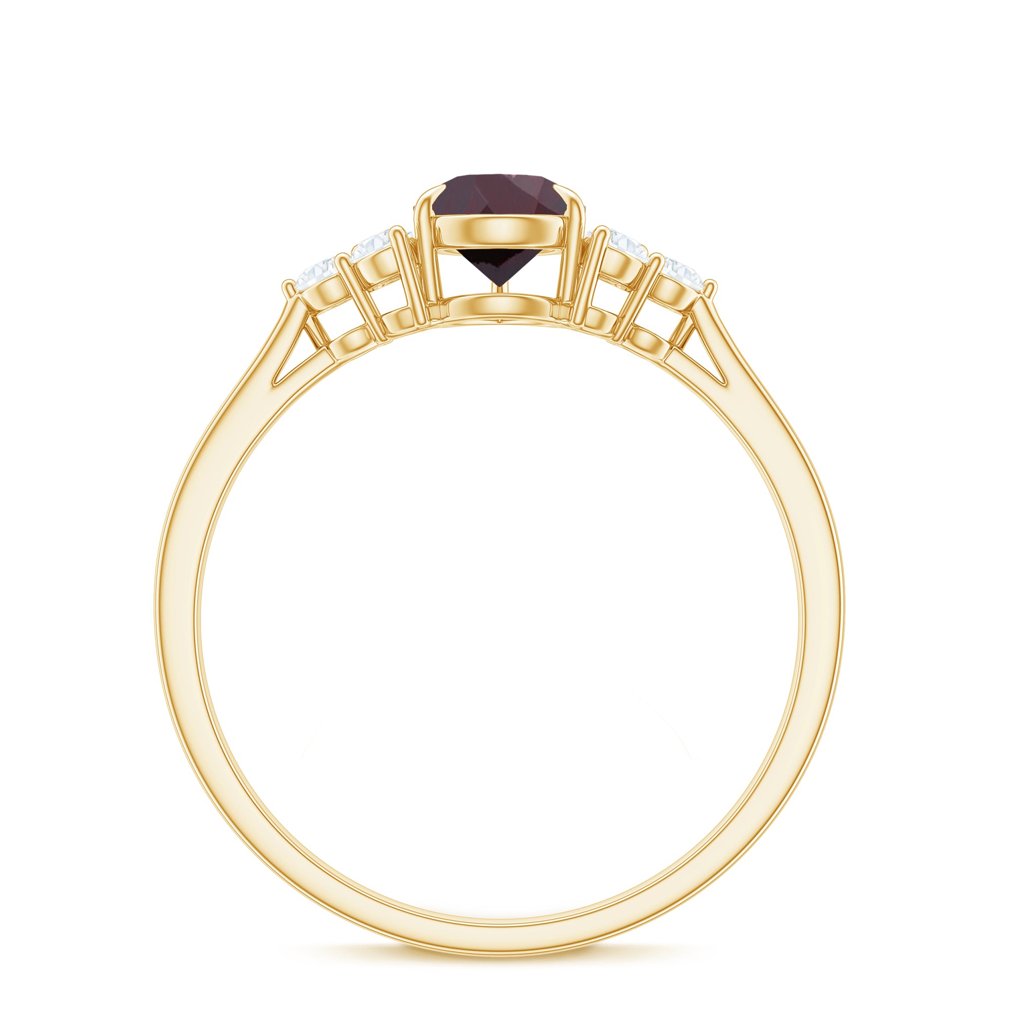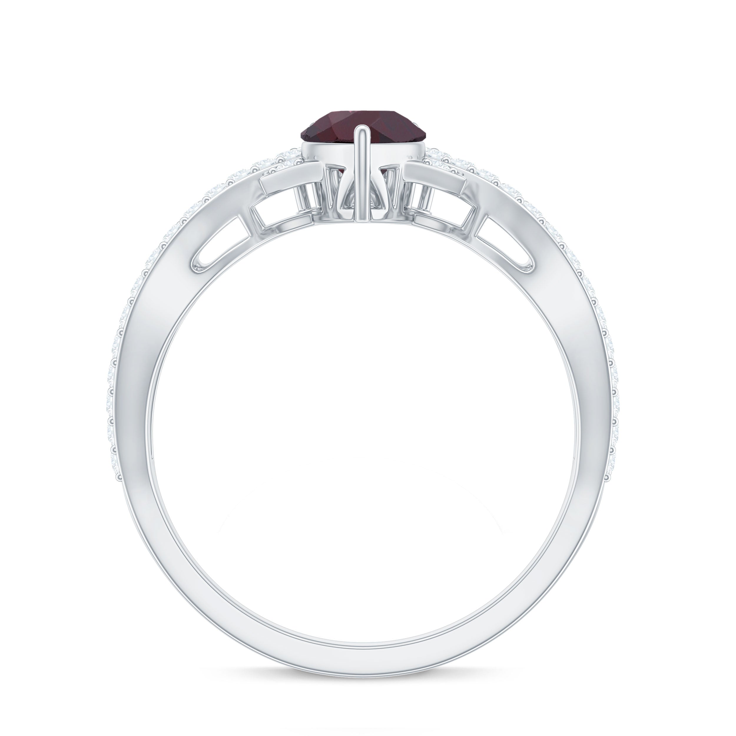 Adorned with the Single Stone of Rhodolite that takes all the center stage, a Rhodolite Solitaire Ring is the go-to choice of ring style. The Rhodolite Solitaire here is at least 6 MM in size. Despite its understated style, this ring style pleases many senses of style, which makes it a highly versatile Rhodolite Engagement Ring. For a classic aesthetic, a Round Cut Rhodolite Ring works best. While for a fancier aesthetic, nothing better than a ring fashioned in princess, marquise, or pear-cut Rhodolite. If you fancy a vintage vibe, you won’t find a better pick than a Rhodolite Ring adorned with Asscher, Emerald, or Cushion Cut.