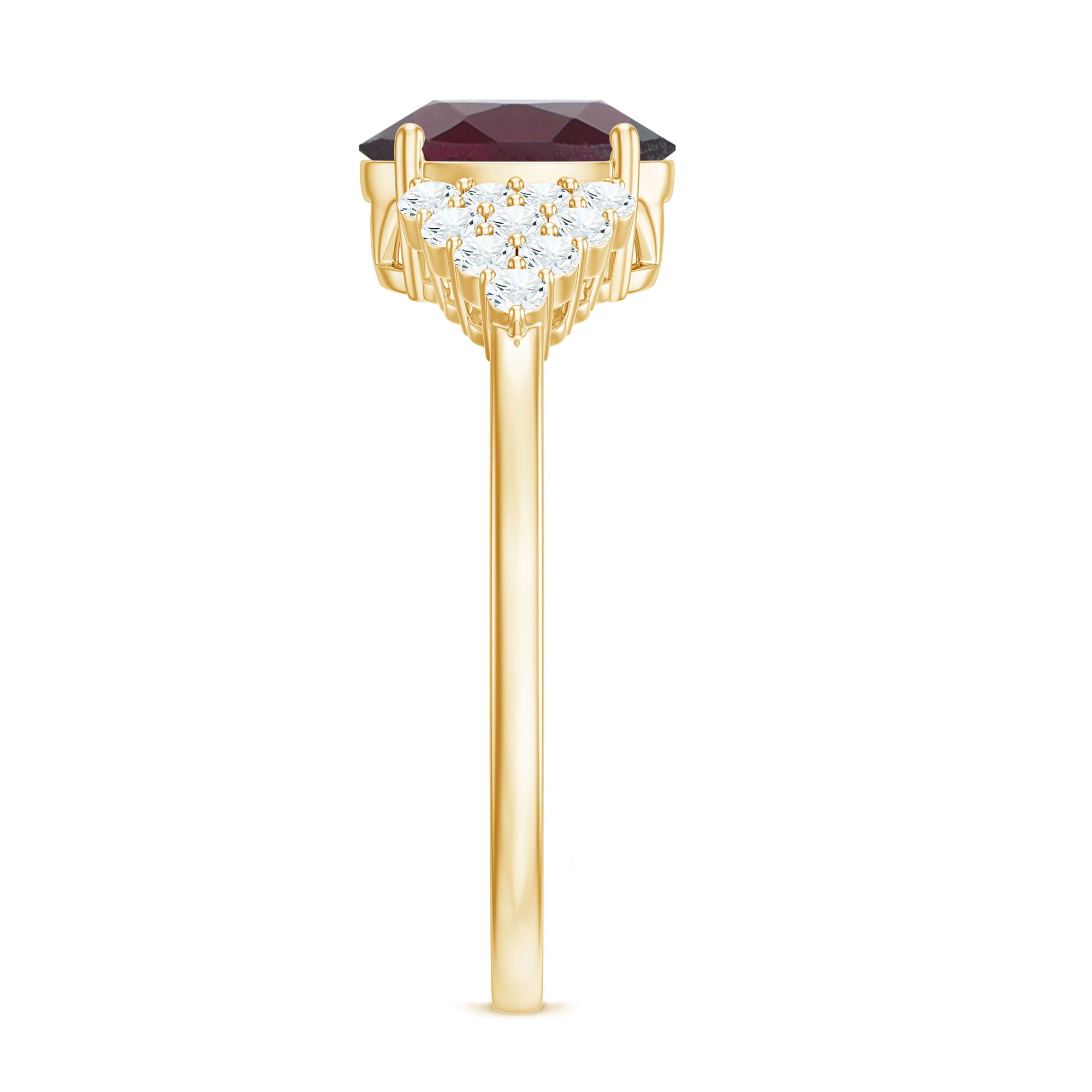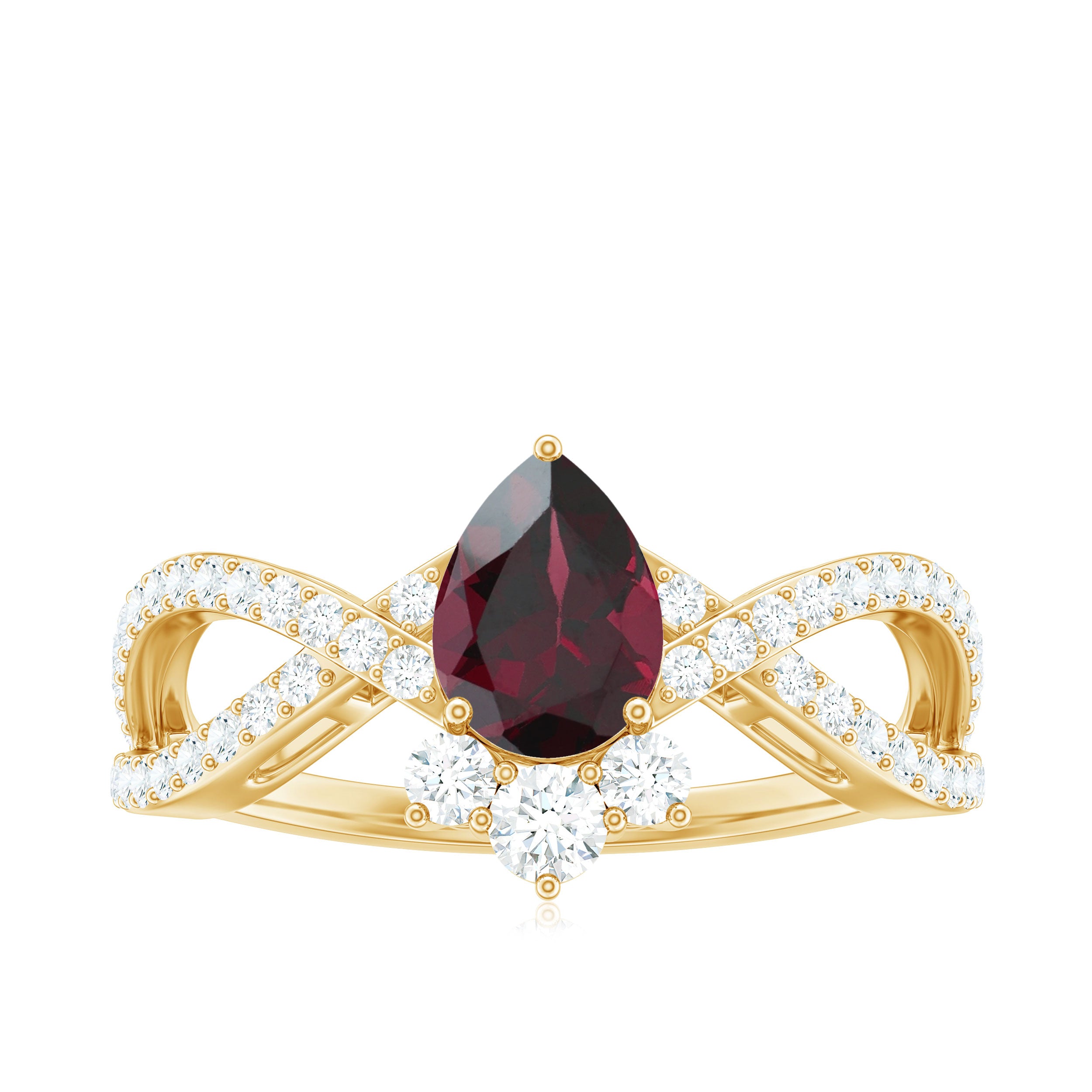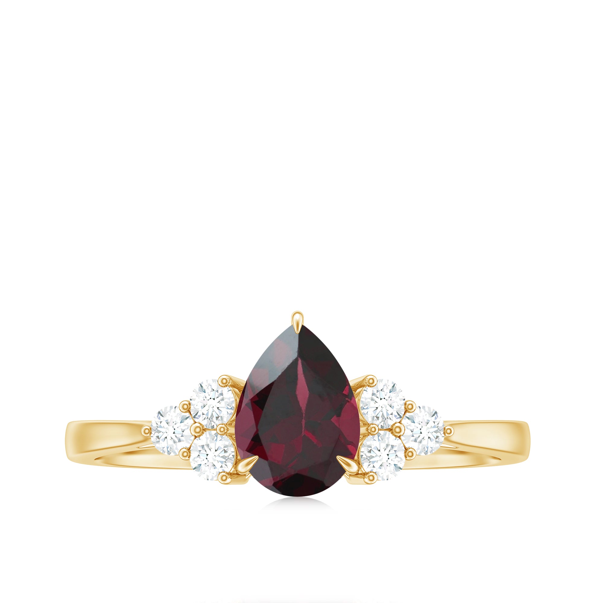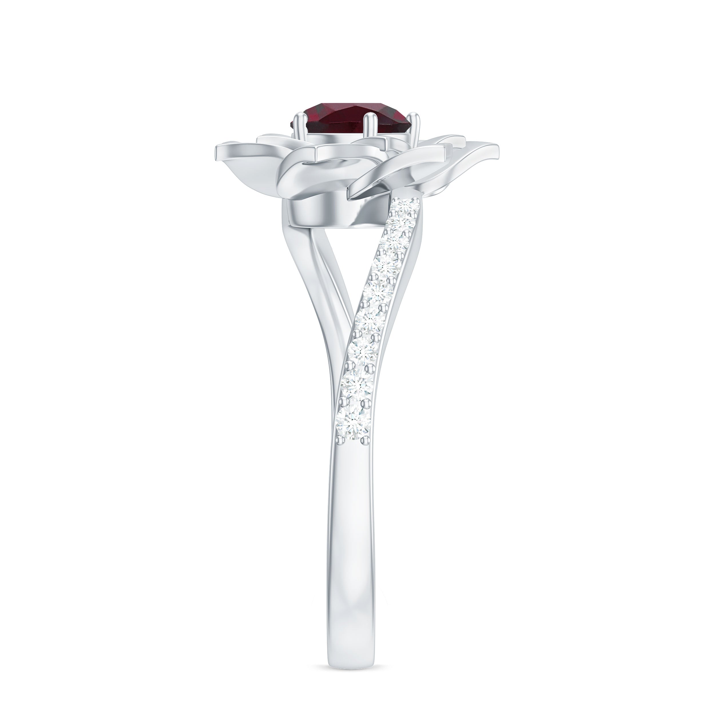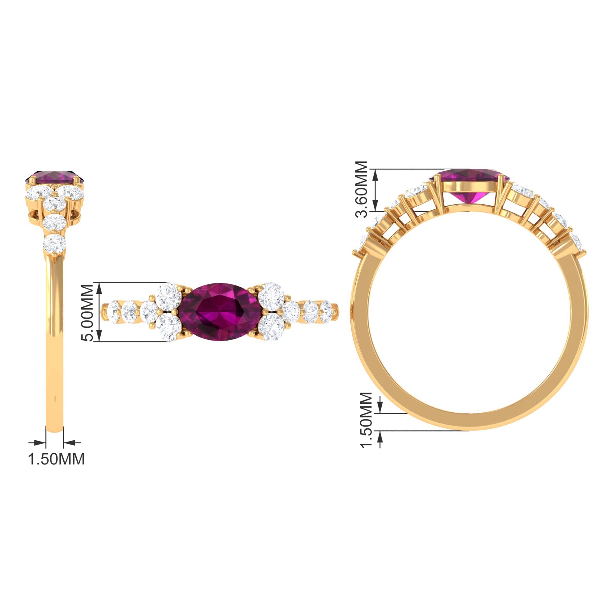 Adorned with the Single Stone of Rhodolite that takes all the center stage, a Rhodolite Solitaire Ring is the go-to choice of ring style. The Rhodolite Solitaire here is at least 6 MM in size. Despite its understated style, this ring style pleases many senses of style, which makes it a highly versatile Rhodolite Engagement Ring. For a classic aesthetic, a Round Cut Rhodolite Ring works best. While for a fancier aesthetic, nothing better than a ring fashioned in princess, marquise, or pear-cut Rhodolite. If you fancy a vintage vibe, you won’t find a better pick than a Rhodolite Ring adorned with Asscher, Emerald, or Cushion Cut.