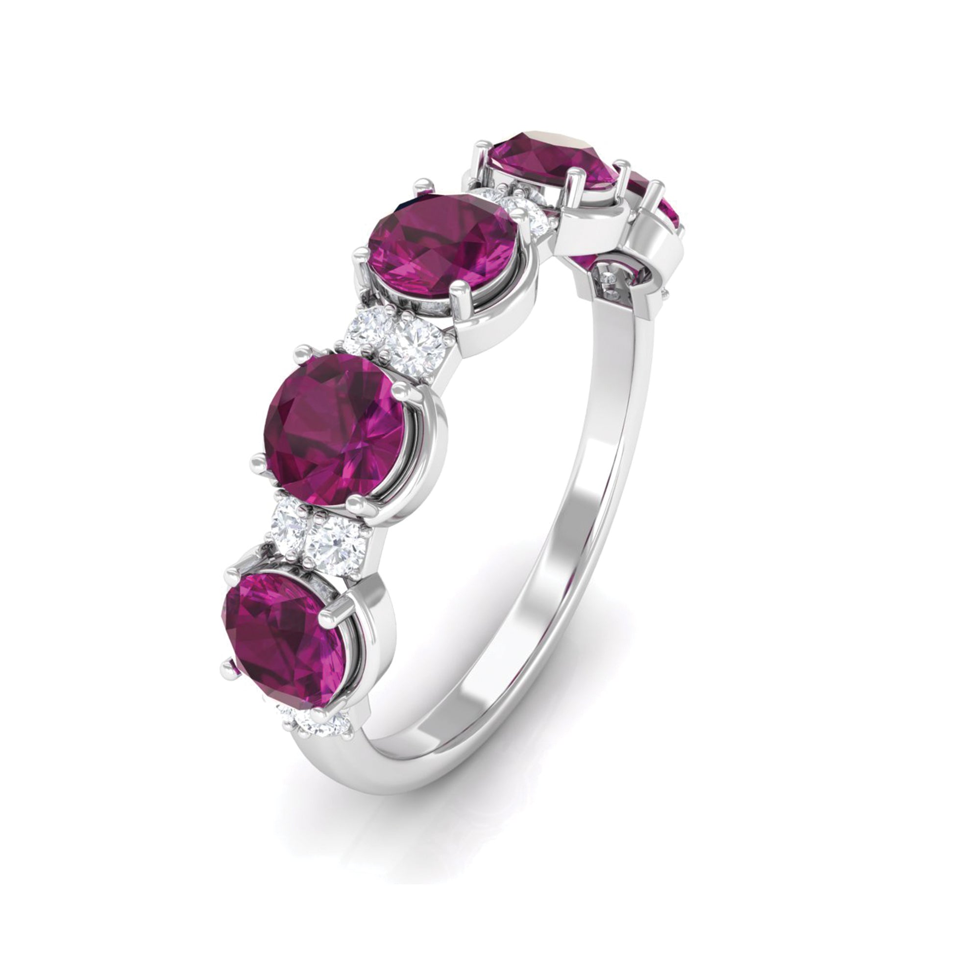 Rhodolite is prized for its high refractive index, which helps it sparkle truly phenomenally. That’s also something that drives great aesthetic appeal for a Rhodolite Band Ring that is embedded with this beautiful gemstone all over.