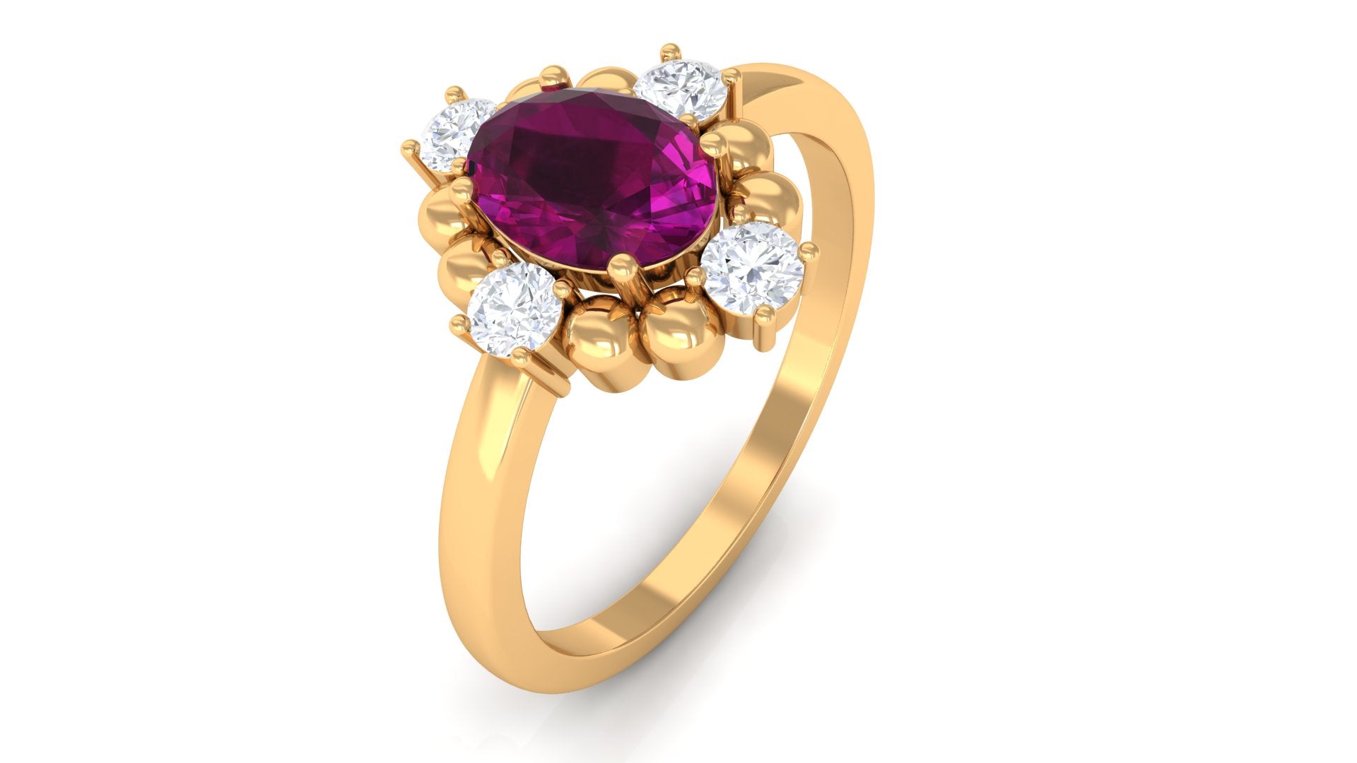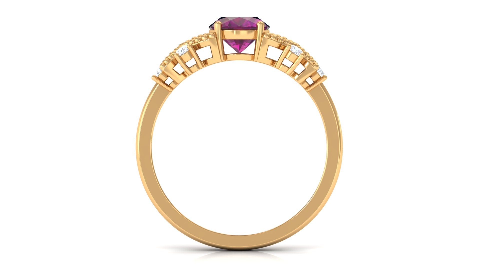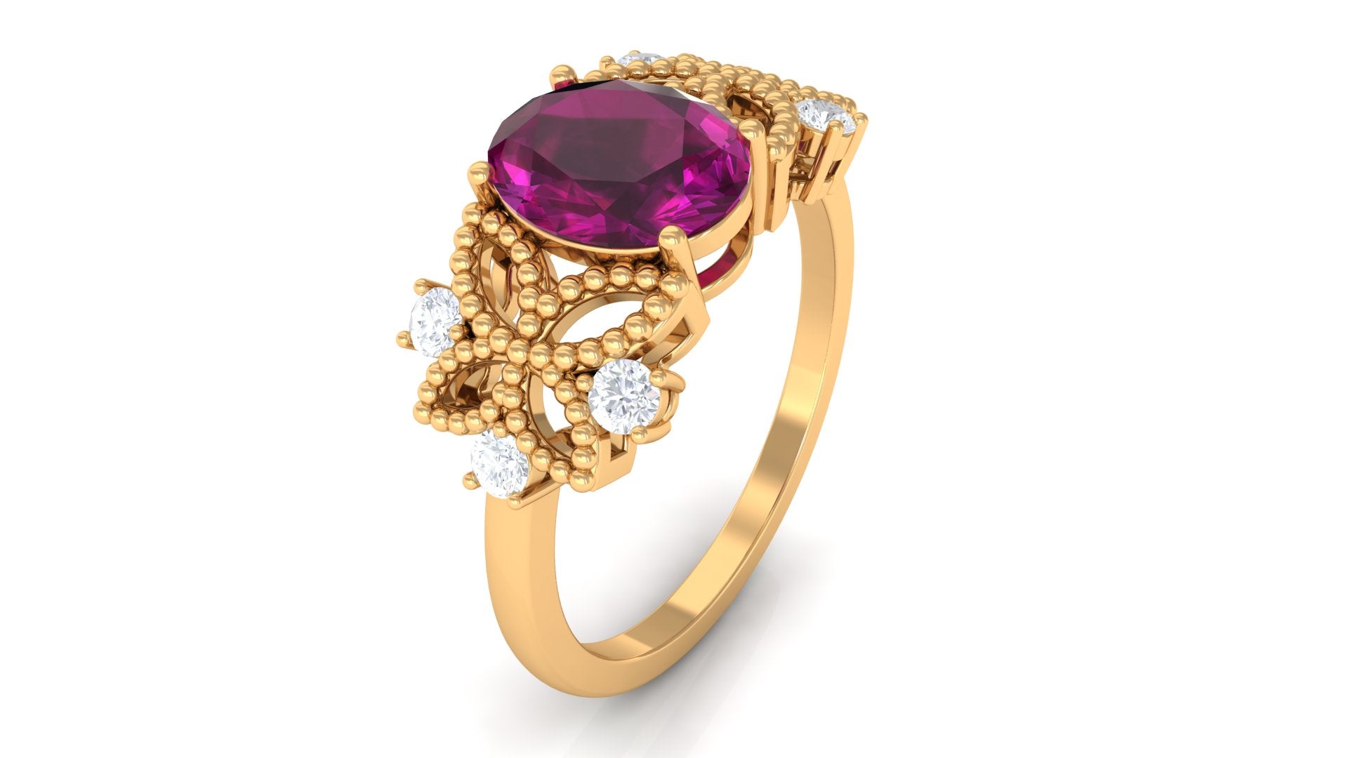 Inspired by the old-school designs from Art Deco, Edwardian, and Victorian Eras, a Vintage Rhodolite Ring looks like a wearable piece of art. It boasts ornately crafted filigree, milgrain, and retro detailing as well as artistic abstract patterns that ooze a vintage vibe. Apart from that, it makes for a beautiful Rhodolite Engagement Ring for the ones who desire a love emblem that carries a story.
