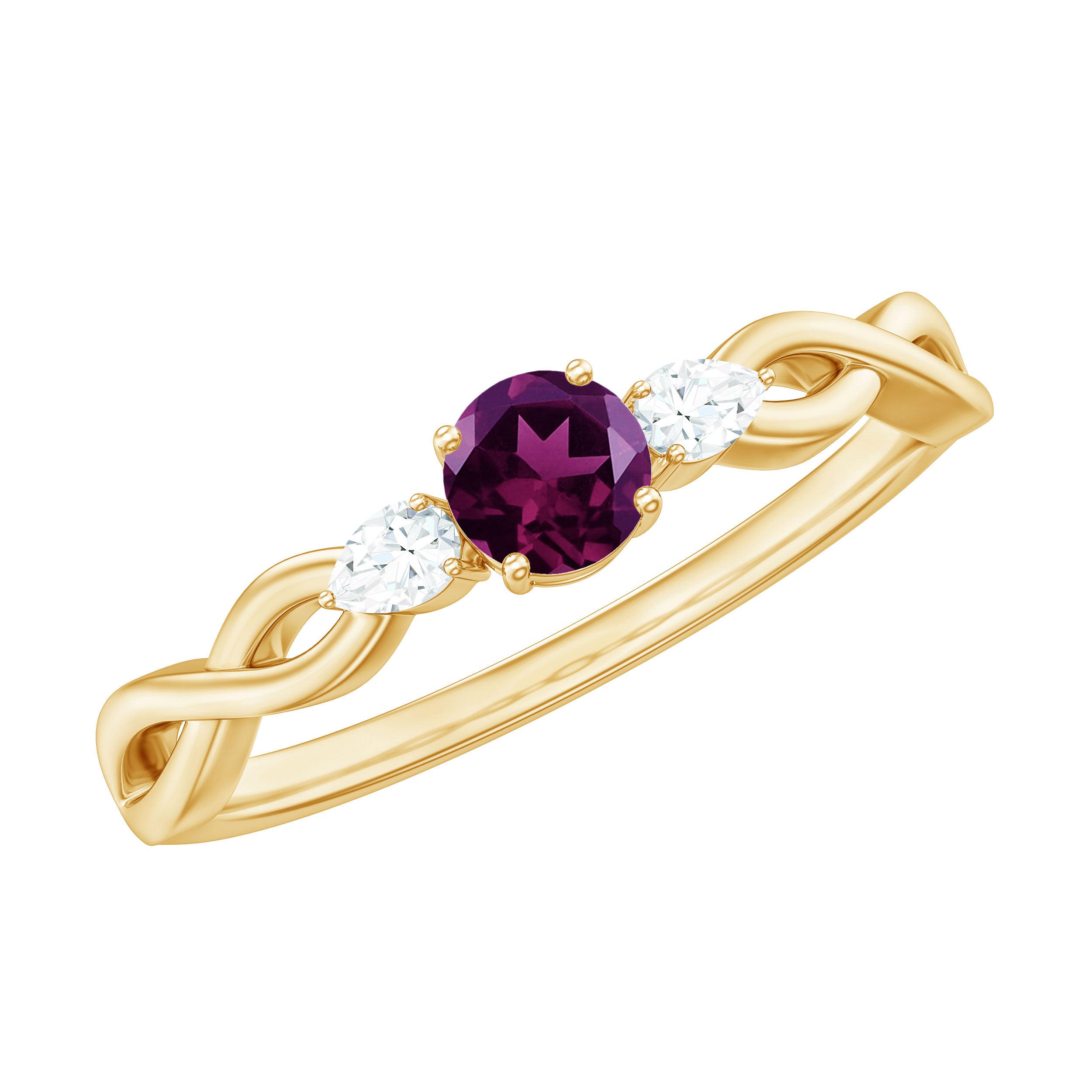 A Rhodolite Promise Ring is one such exceptional ring that isn’t characterized by a specific style. It facilitates you with many options of designs. It could be an understated Rhodolite Solitaire Ring that isn’t any more than 4 MM in size. While if you fancy an eye-striking appeal, it is also beautified with elegant floral motifs, accents of diamond/moissanite, or meaningful infinity symbol. However, the most popular out of all is a Rhodolite Heart Ring. If you haven’t guessed by the name by now, a Rhodolite Promise Ring signifies that you’re ready to take your relationship to the next stage and works as an emblem of your promise of commitment.