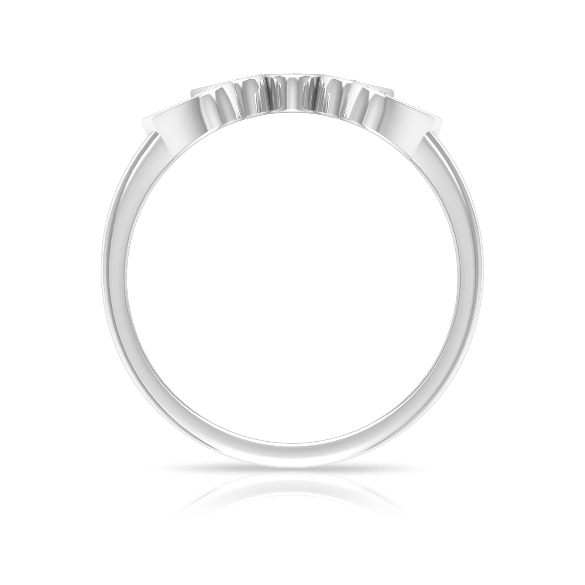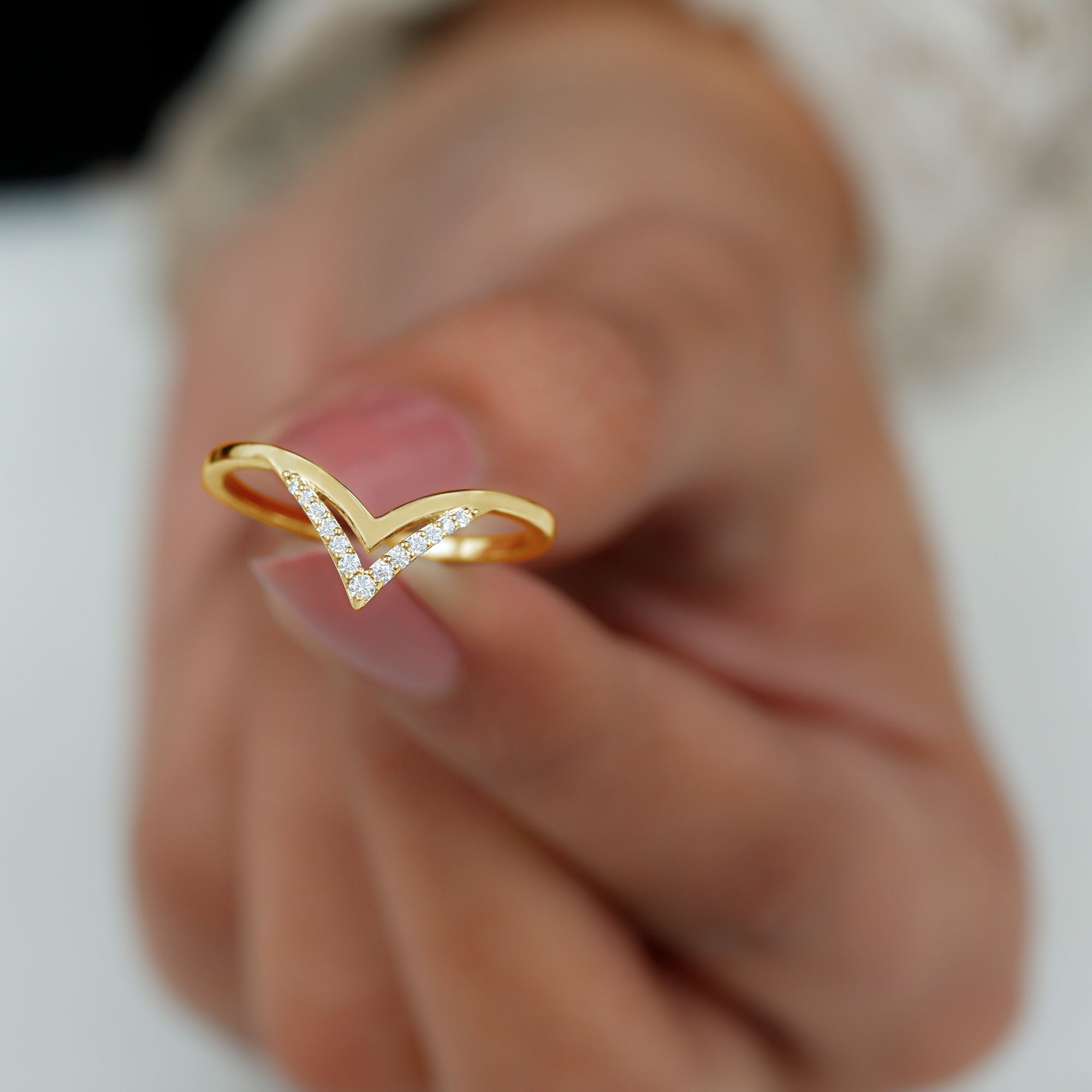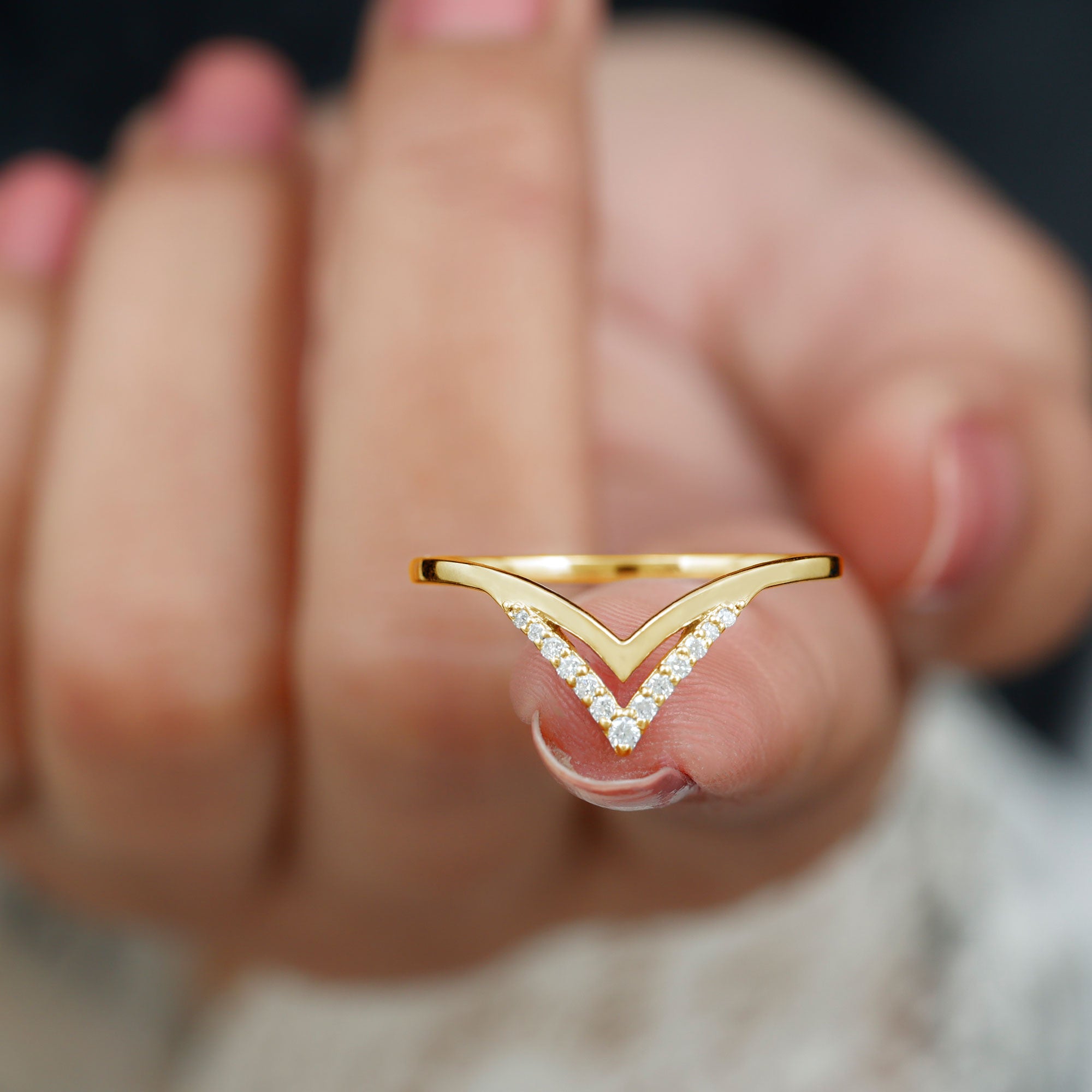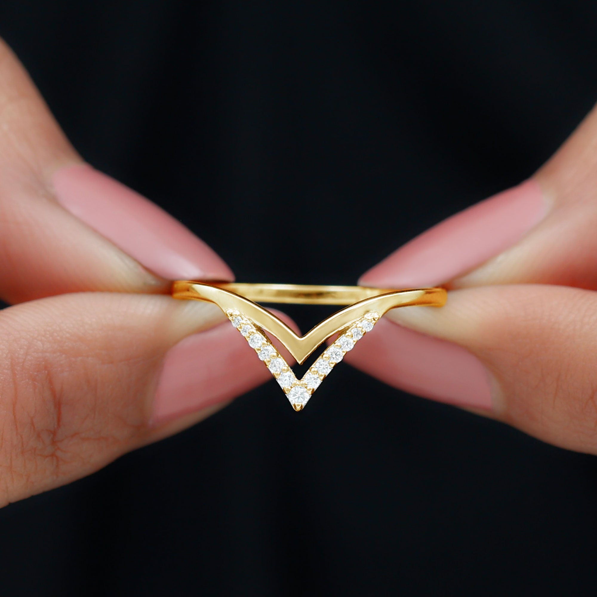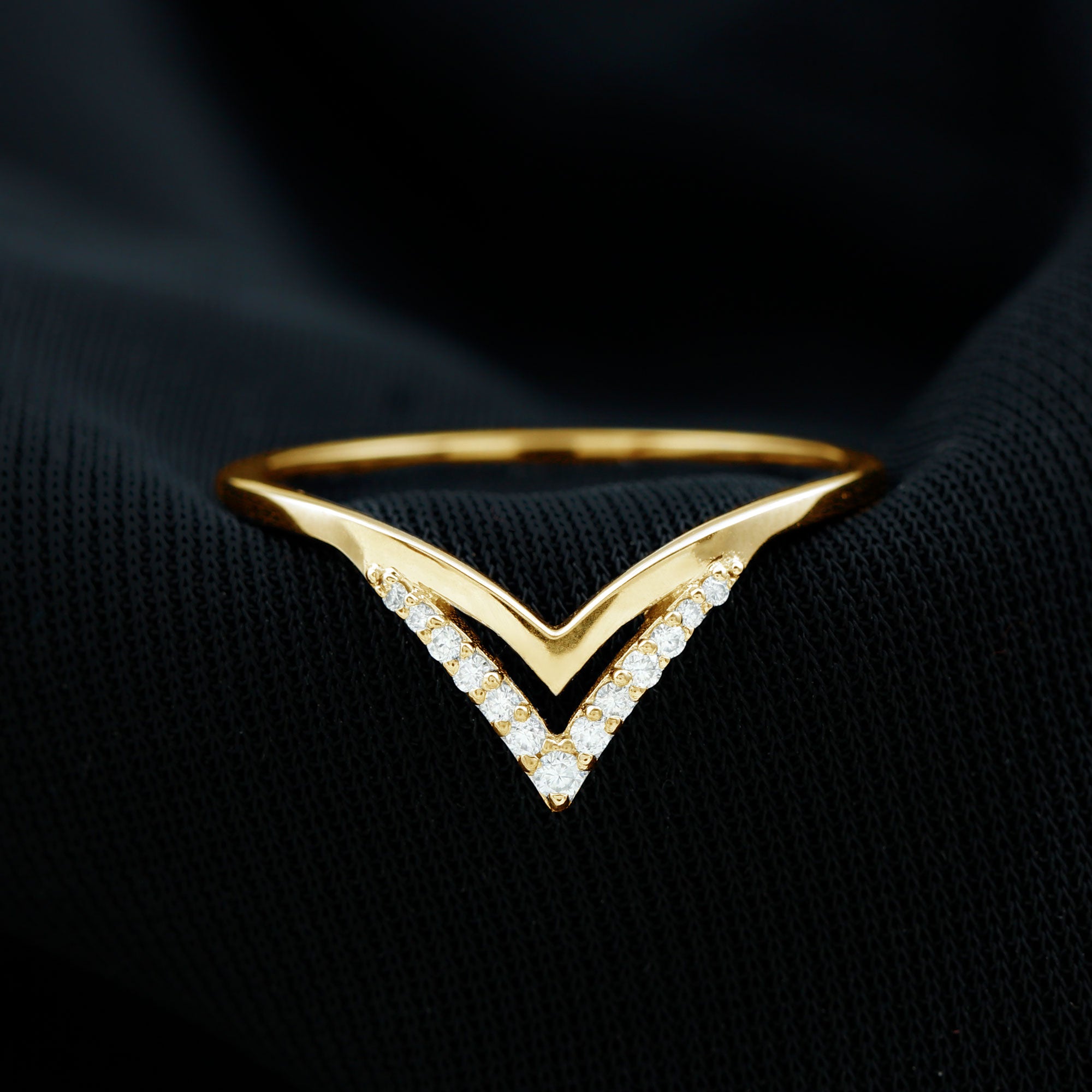 These V-shaped enhancers, commonly called wishbone rings, are designed with a stylish dip that fits around the center stone of other rings perfectly. Modern brides who love bold, stackable looks are choosing chevron moissanite ring enhancers.