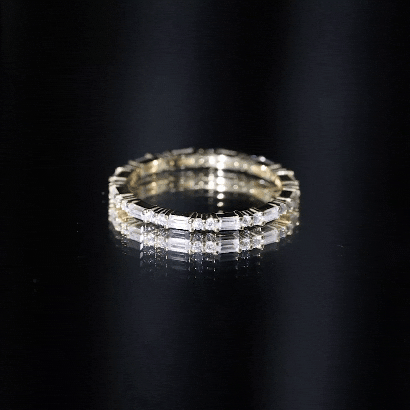 These eternal bands feature shimmering diamonds in a row, along the entire band, creating a more luxurious look. Those who love classic brilliance and eternal beauty would definitely love these engagement ring enhancers.