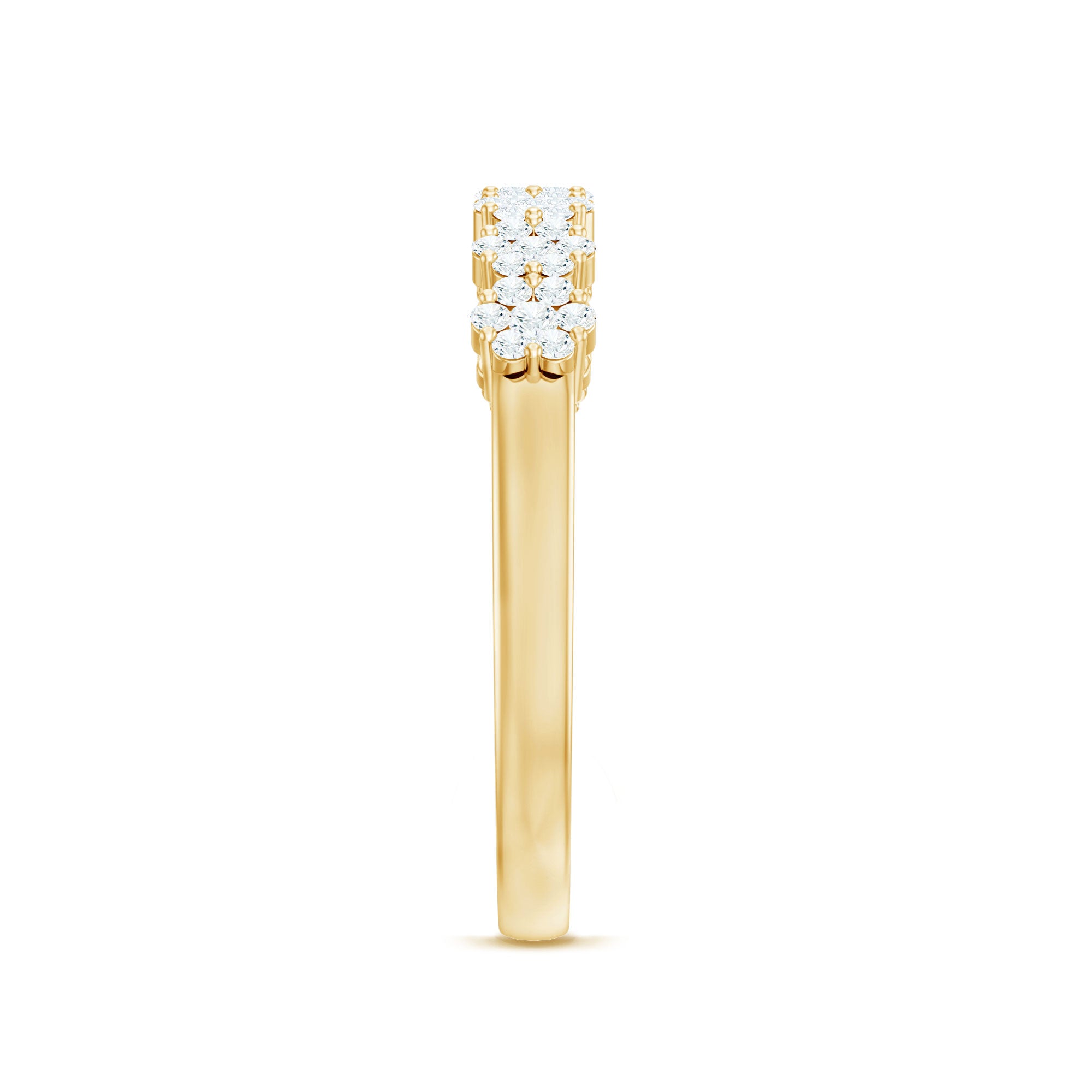 Nothing commemorates eternal love better than gemstone eternity bands. The style itself is enough to speak of that. Well, Eternity Bands feature a row of uniformly sized gemstones studded all along the band in an unbreakable circle (reflecting on your everlasting love). Eternity Bands in our collection can be adorned with the most classic colored stones or even more flashy ones, all crafted in white, yellow, and rose gold.