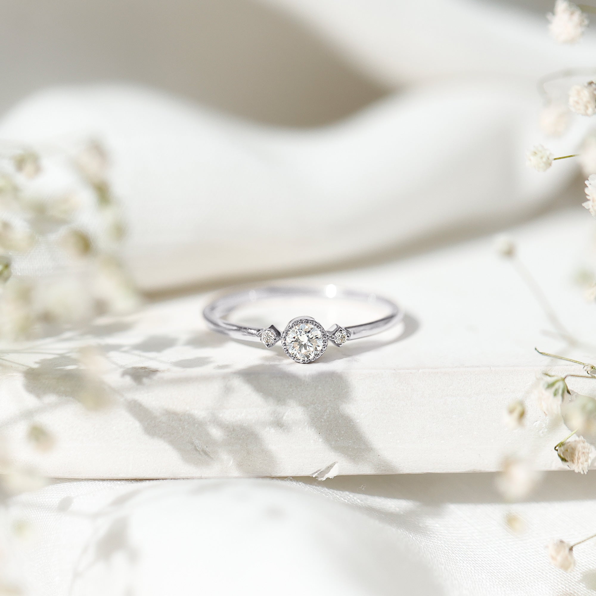 Wish to know a little secret? Not only does it sparkle at its best, but also deceives your eye by offering the illusion of a bigger center stone. So, you could totally take it to mean that it offers you the best of both worlds, making it one of the most unique gemstone rings for women out there!