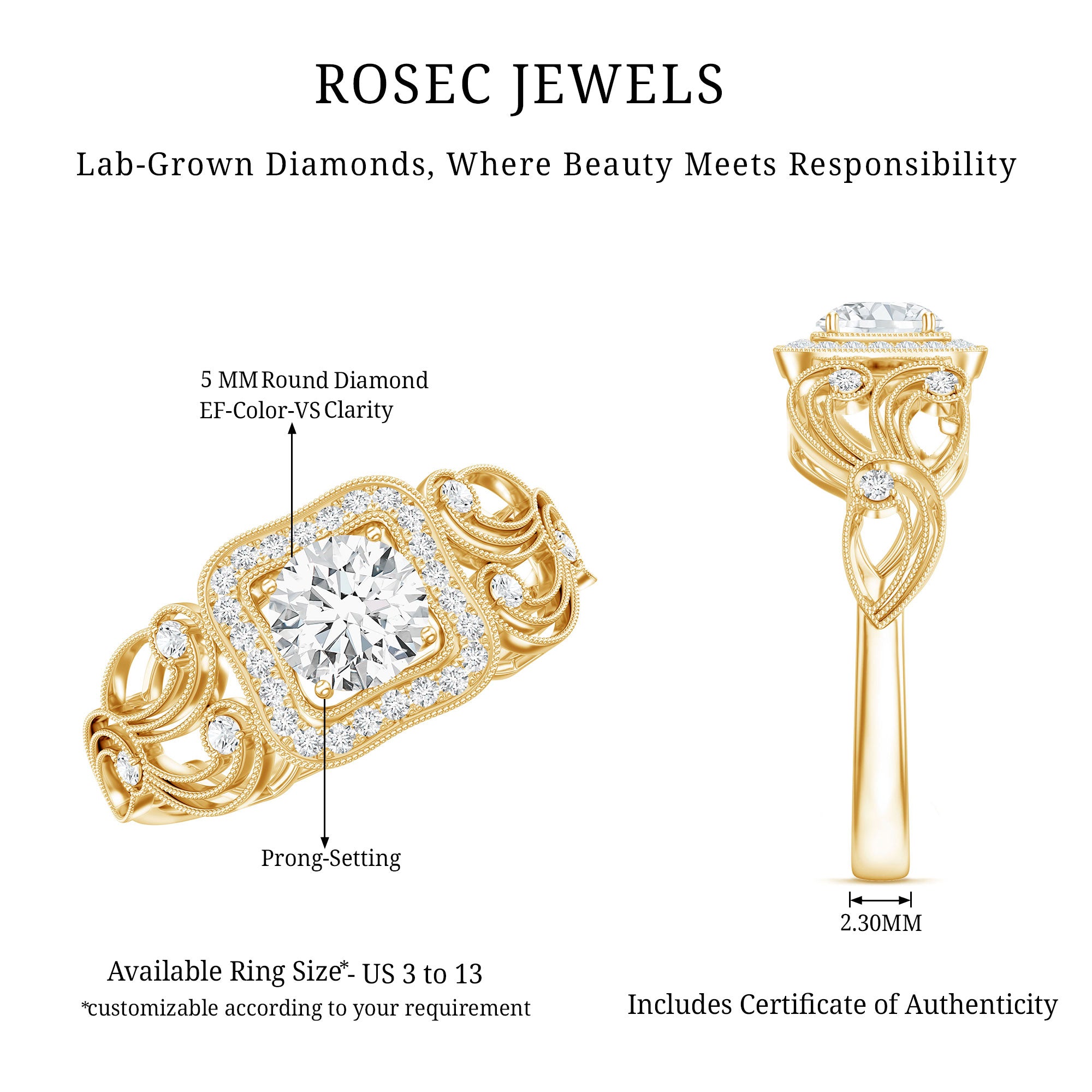 The Center Stone could be of the most traditional round shape or be on the fancier end of the spectrum (pear, marquise, etc.) or even ooze a vintage vibe (Asscher, emerald, etc). You’d be surprised to note what big a difference the shape plays in defining the aesthetics of your Solitaire Ring. The options are endless and everything ultimately boils down to your preference.
