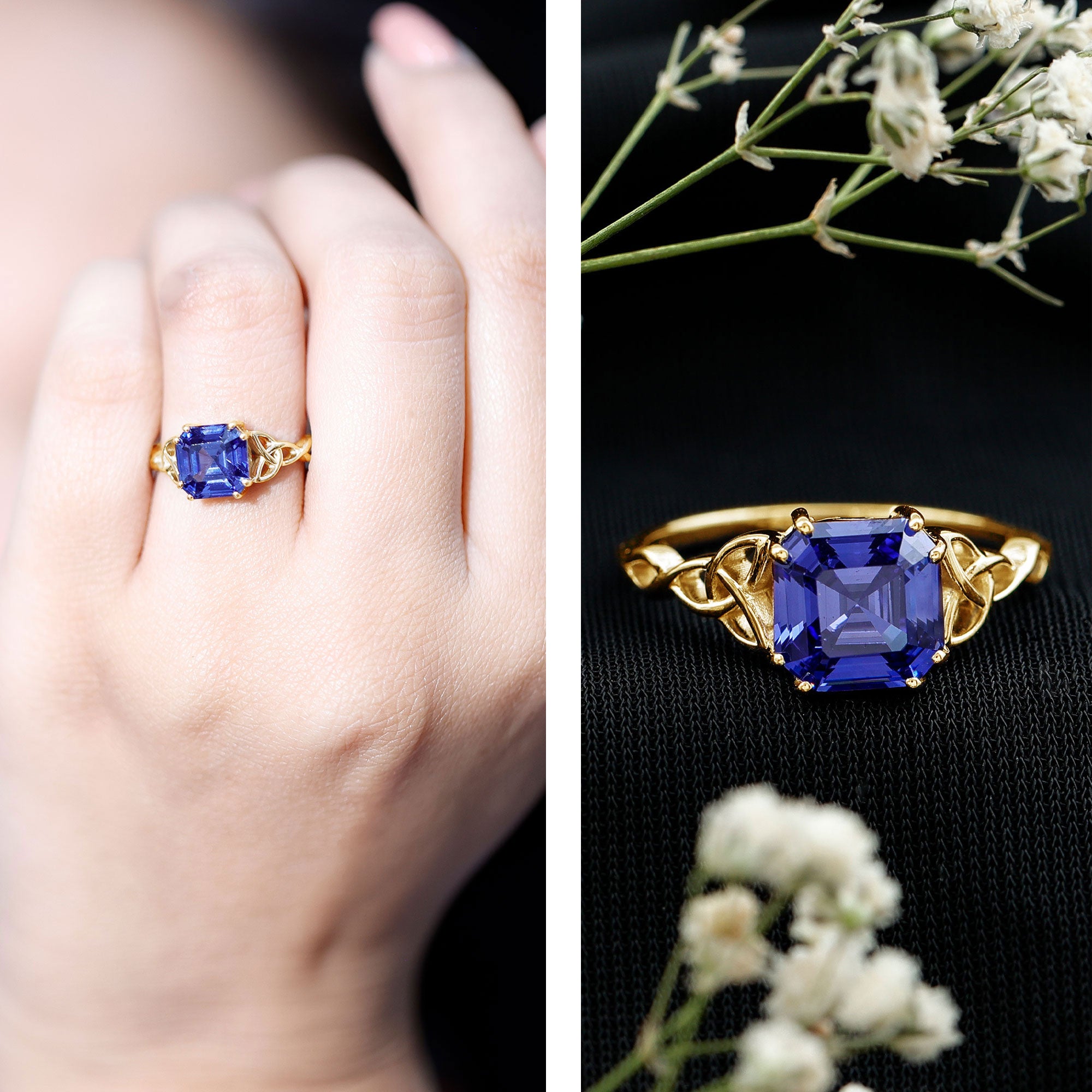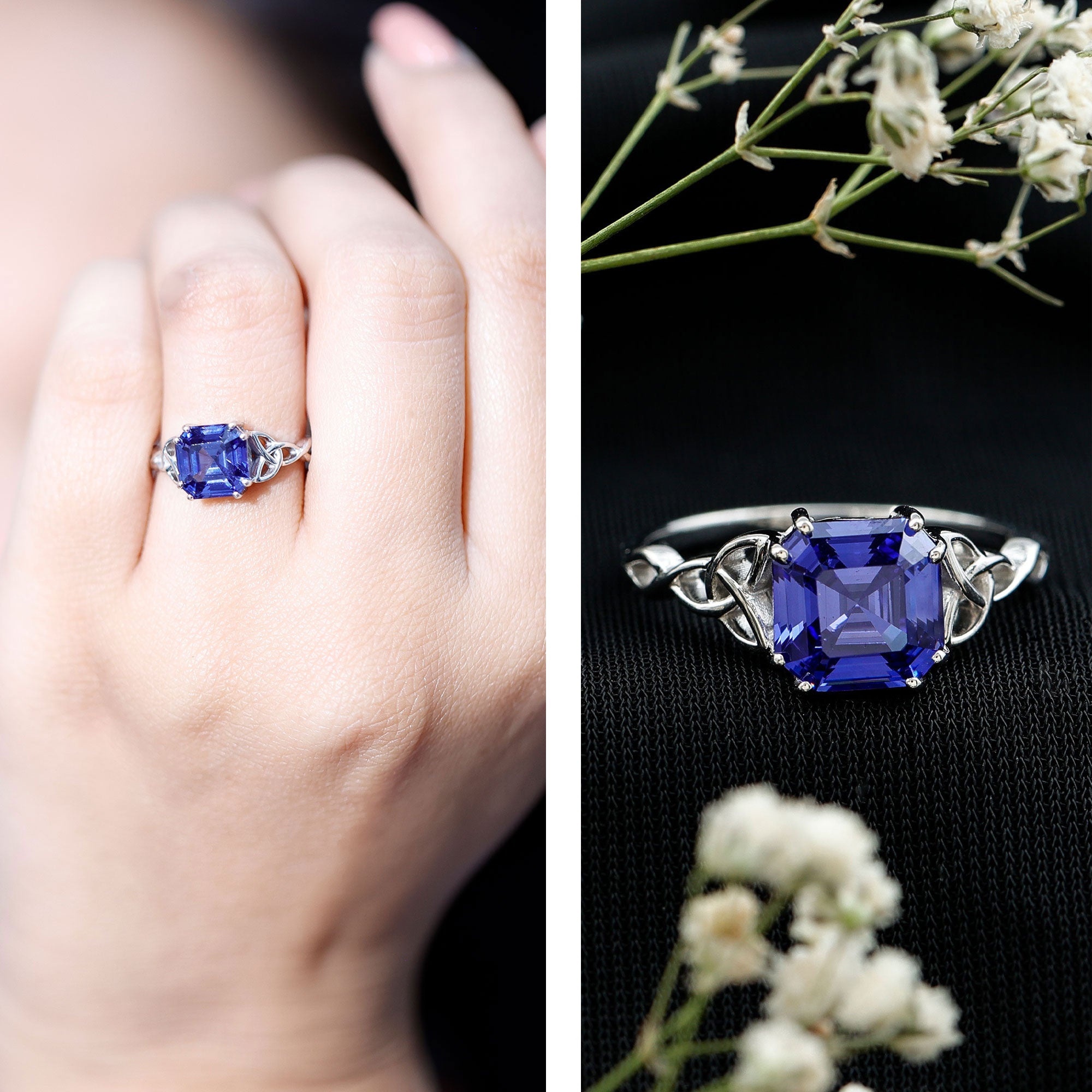 Wish to know a little secret? Not only does it sparkle at its best, but also deceives your eye by offering the illusion of a bigger center stone. So, you could totally take it to mean that it offers you the best of both worlds, making it one of the most unique gemstone rings for women out there!