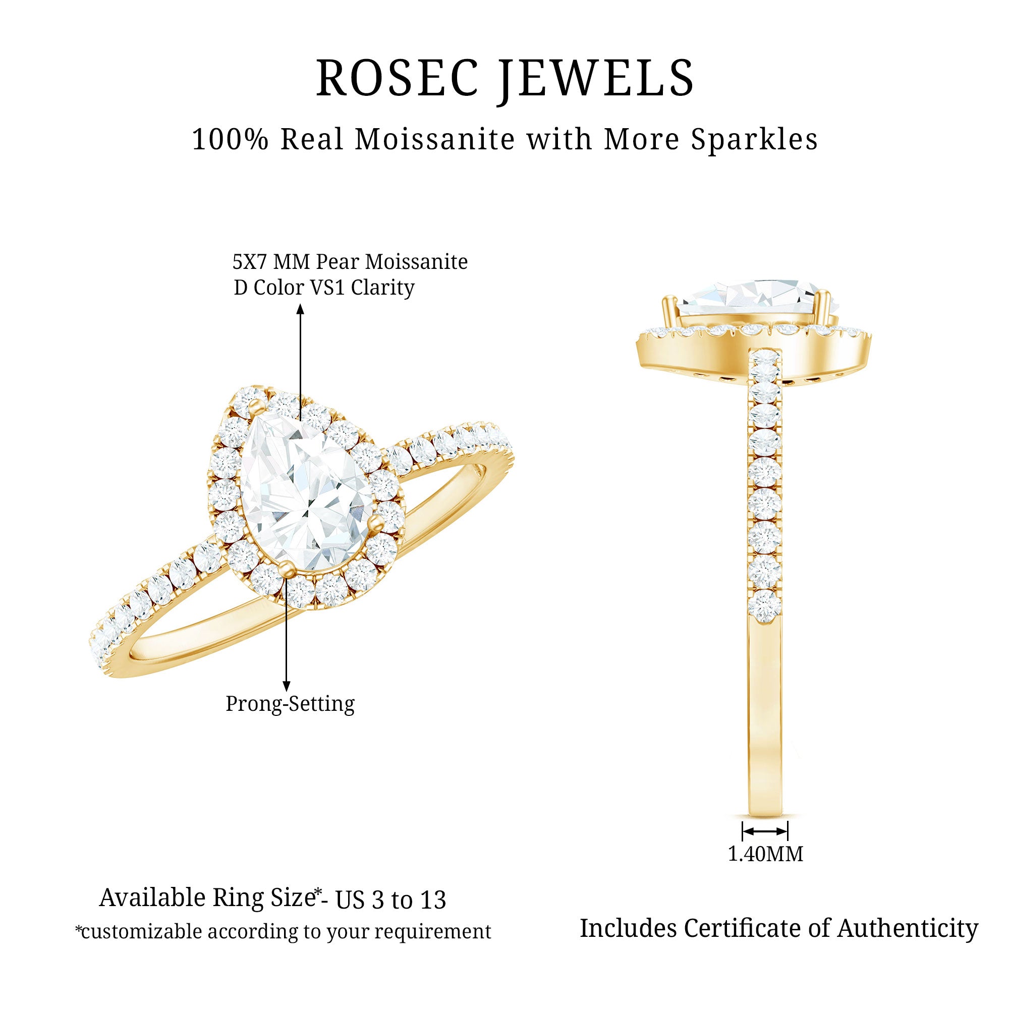 • Hallmarked Gold: The Gold we ornament each of your ring in has also been hallmarked. The hallmark on the gold reflects on the purity of the gold, which is expressed in terms of karats or fineness. It assures you of the genuineness of the gold. Please note that we only handcraft rings in 14K Gold since it strikes the perfect balance between durability and purity.