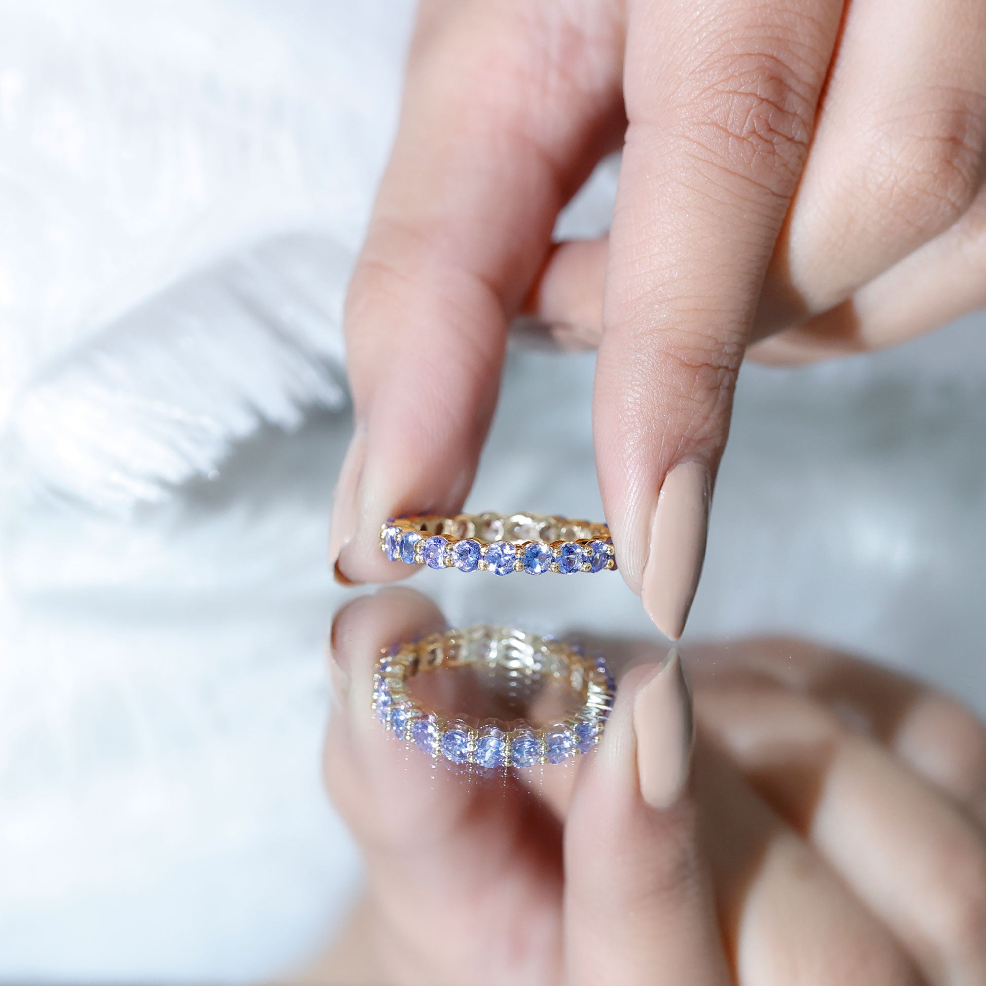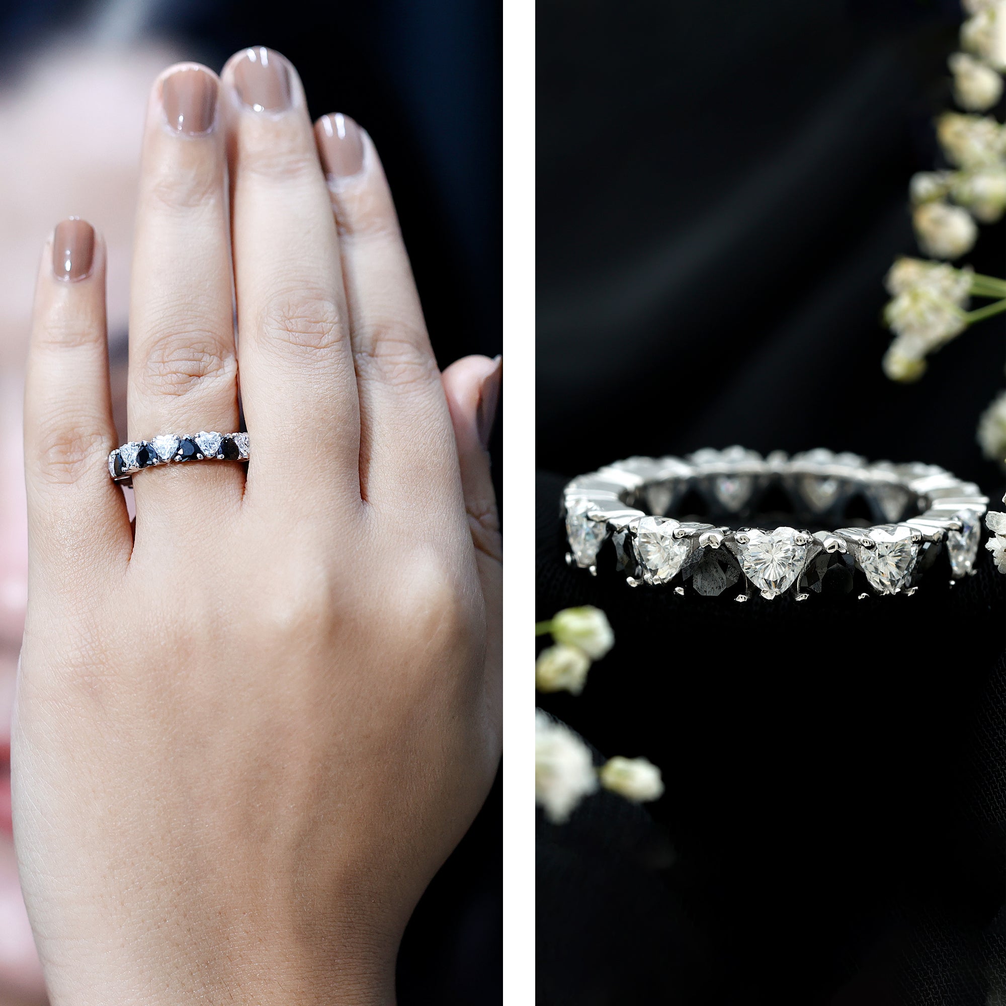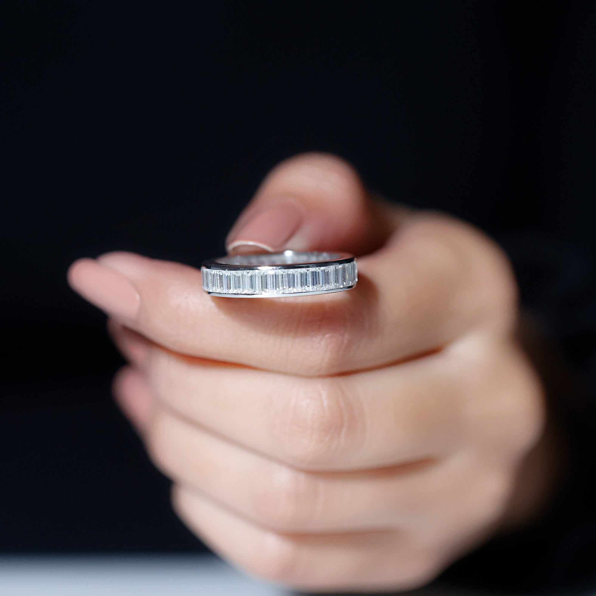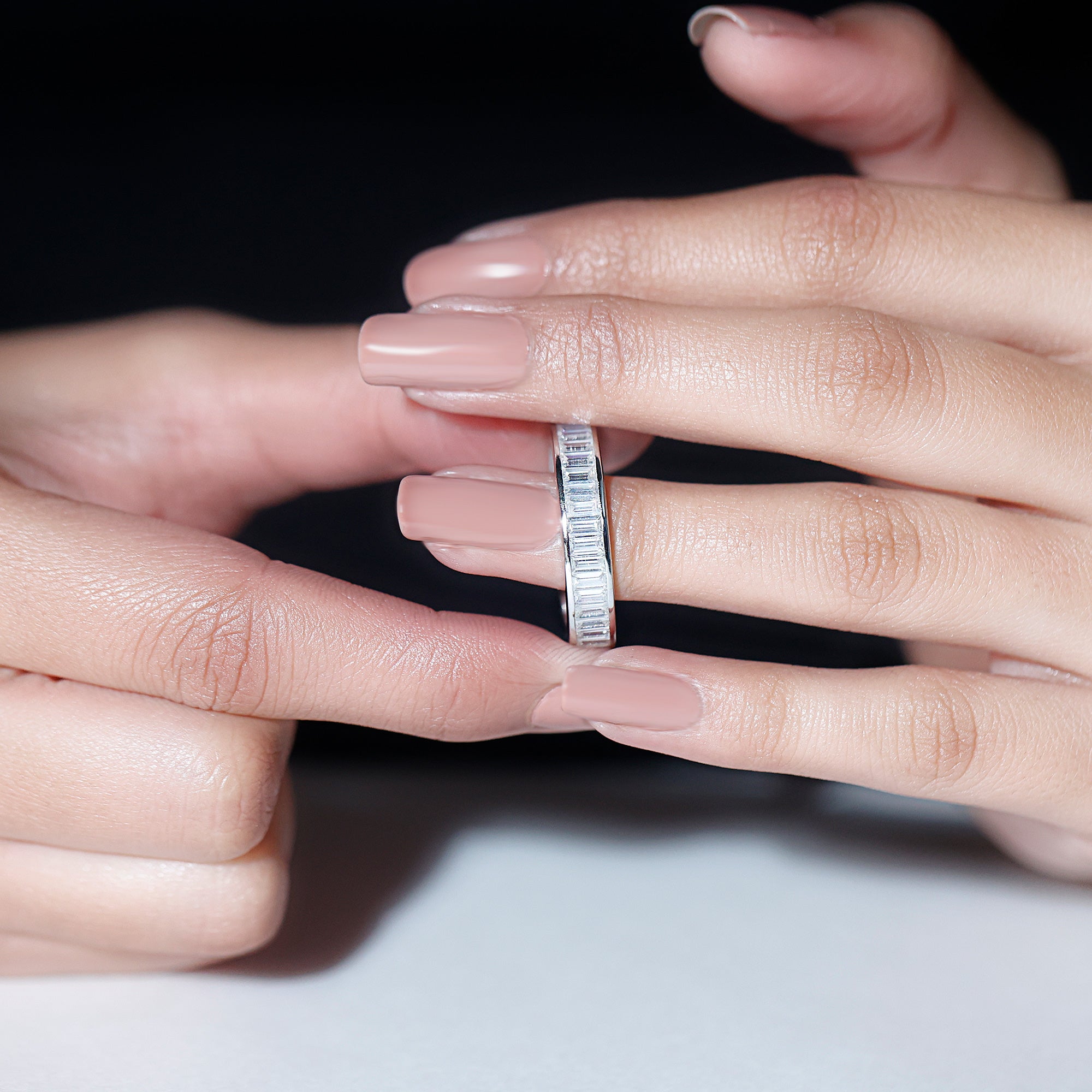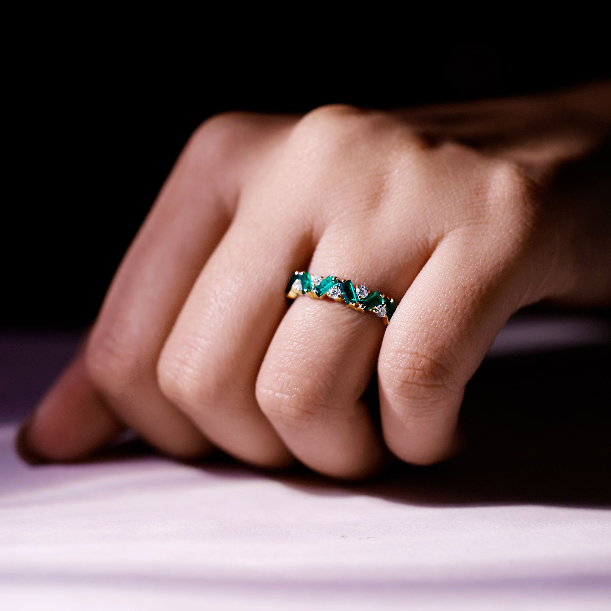Typically, it is a type of metal ring that features gemstones set in a continuous band around the circumference of the ring. If you’re seeking something simple to flaunt regularly, a band with subtle colored stones such as Morganite, Aquamarine, Moissanite, or a Classic 14K White Gold Gemstone Band could be the one. While if you’re a little more fond of a pop of color, deeply hued stones such as Ruby, Blue Sapphire, Emerald etc., or a Yellow or Rose Gold Gemstone Band might do the job right.