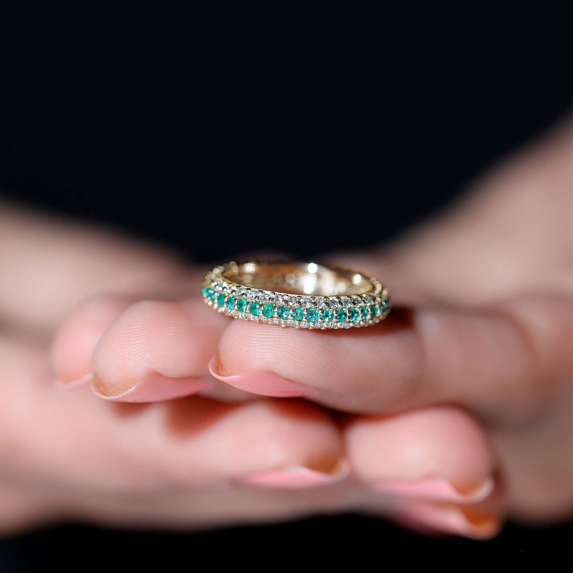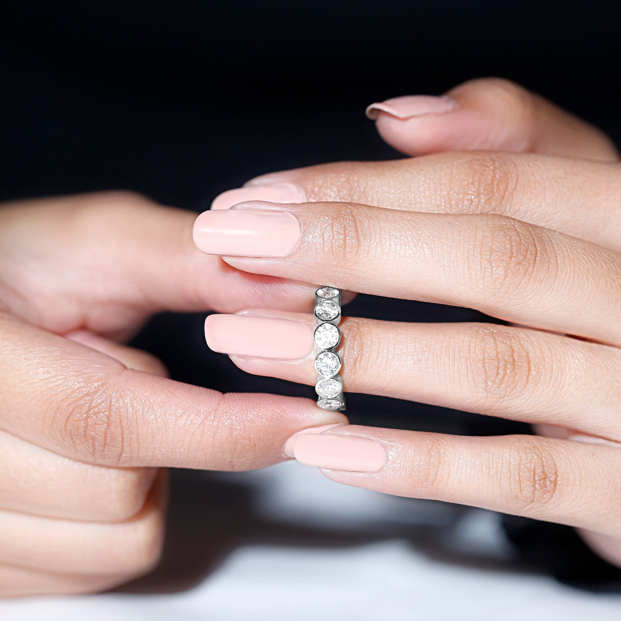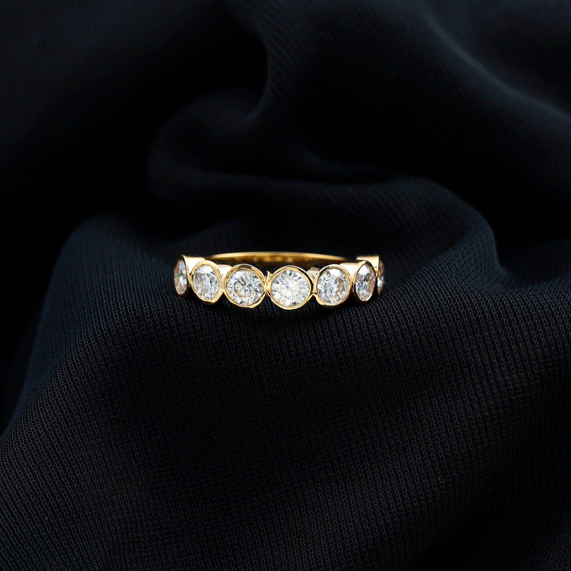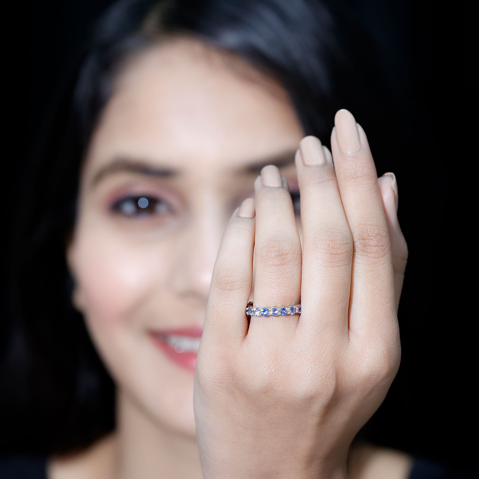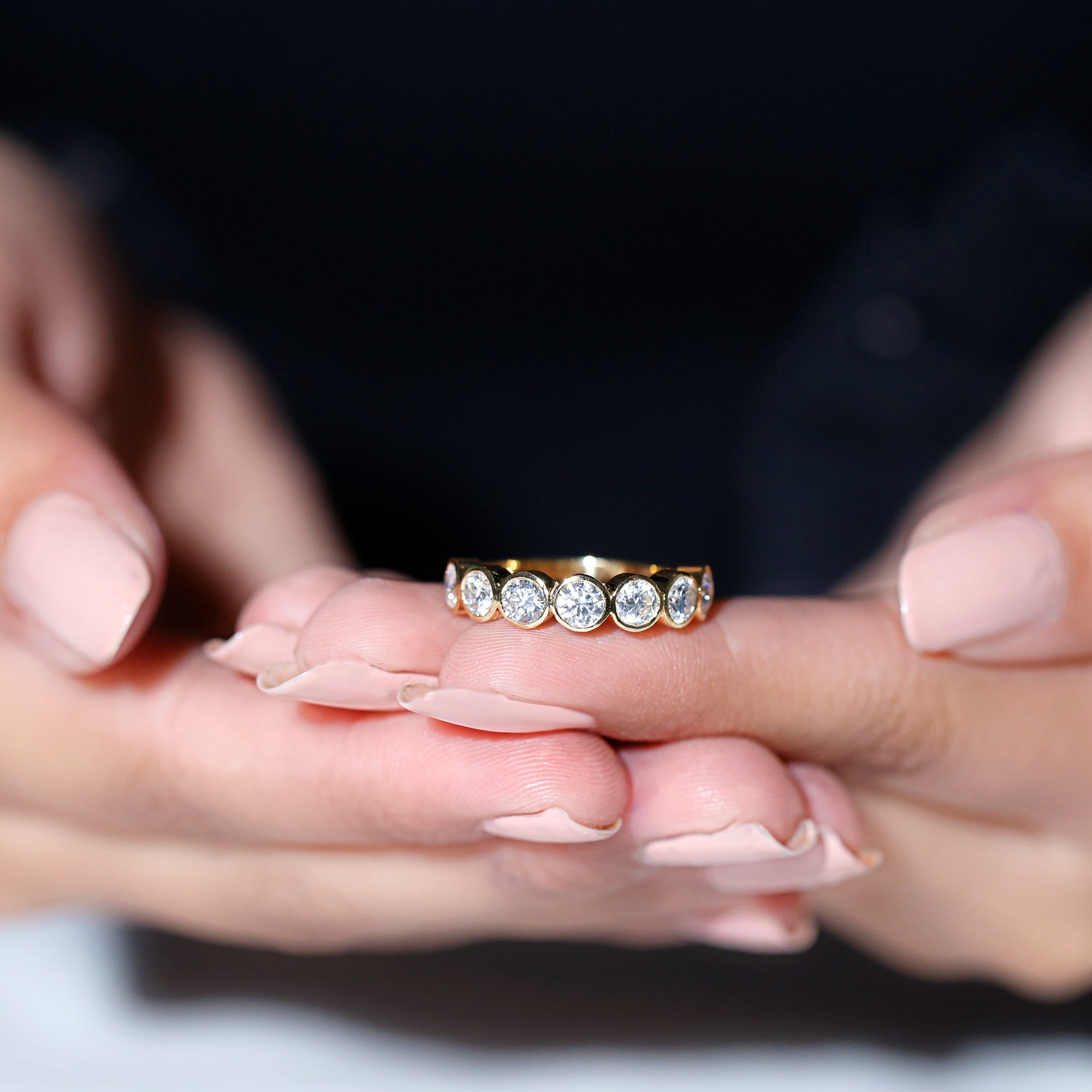 Typically, it is a type of metal ring that features gemstones set in a continuous band around the circumference of the ring. If you’re seeking something simple to flaunt regularly, a band with subtle colored stones such as Morganite, Aquamarine, Moissanite, or a Classic 14K White Gold Gemstone Band could be the one. While if you’re a little more fond of a pop of color, deeply hued stones such as Ruby, Blue Sapphire, Emerald etc., or a Yellow or Rose Gold Gemstone Band might do the job right.