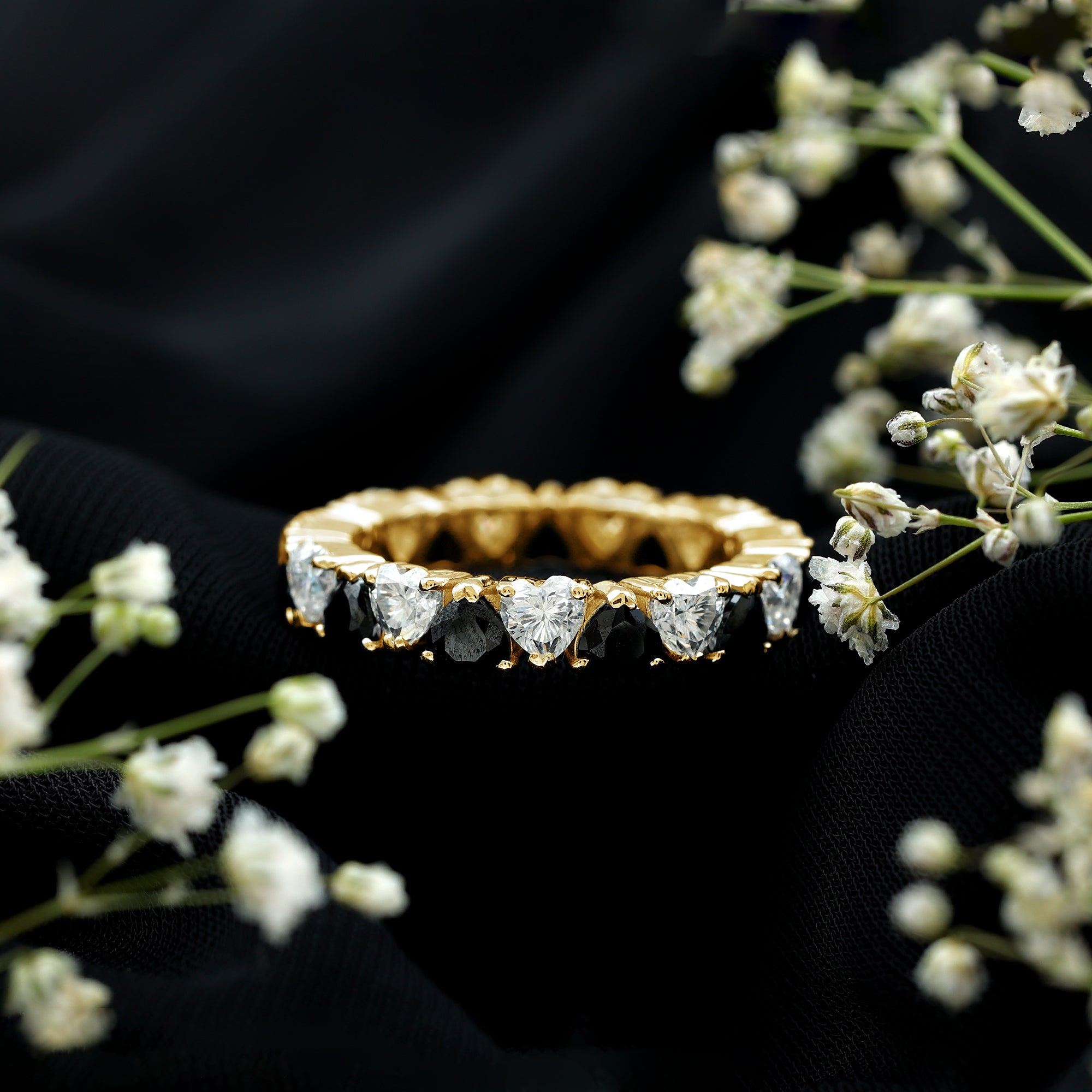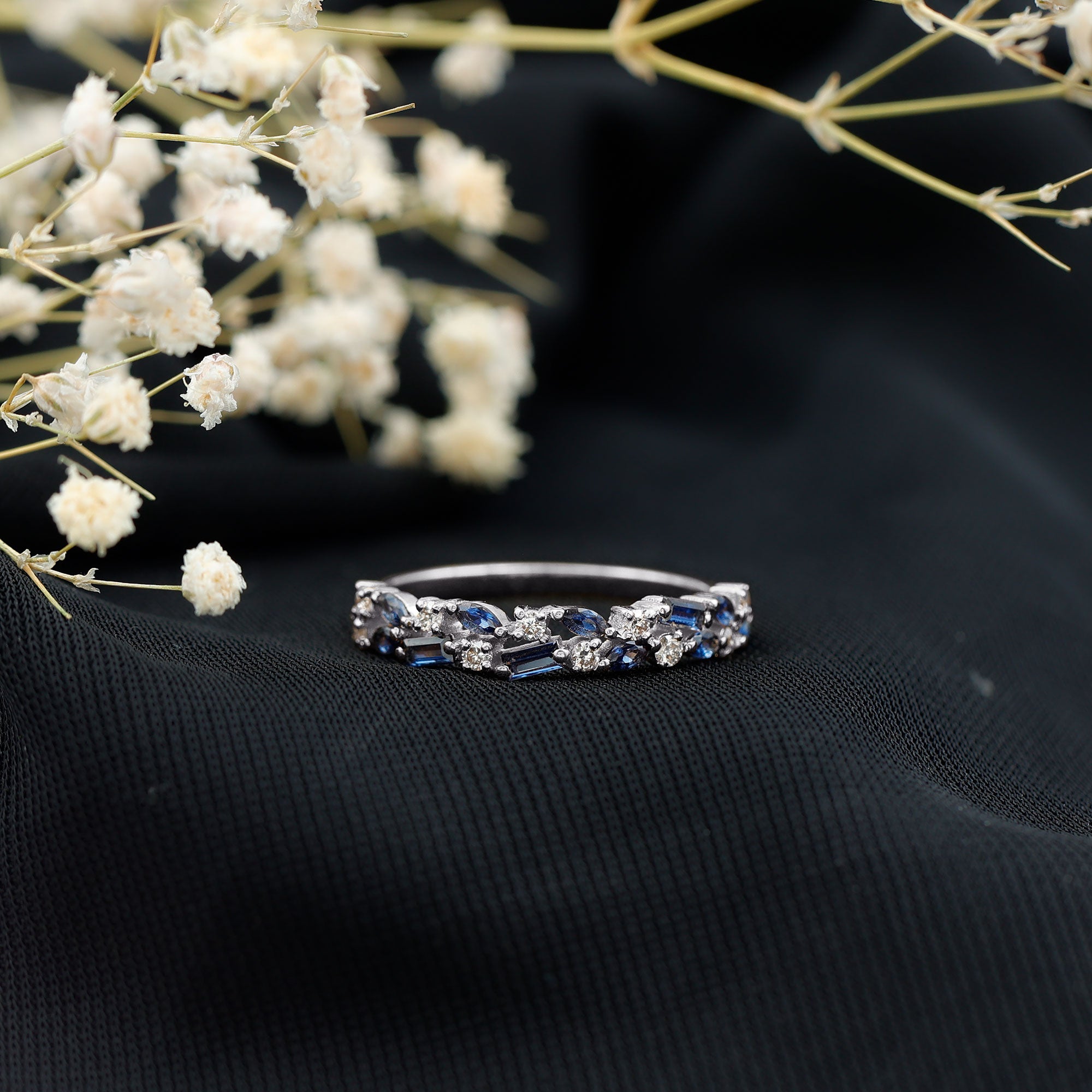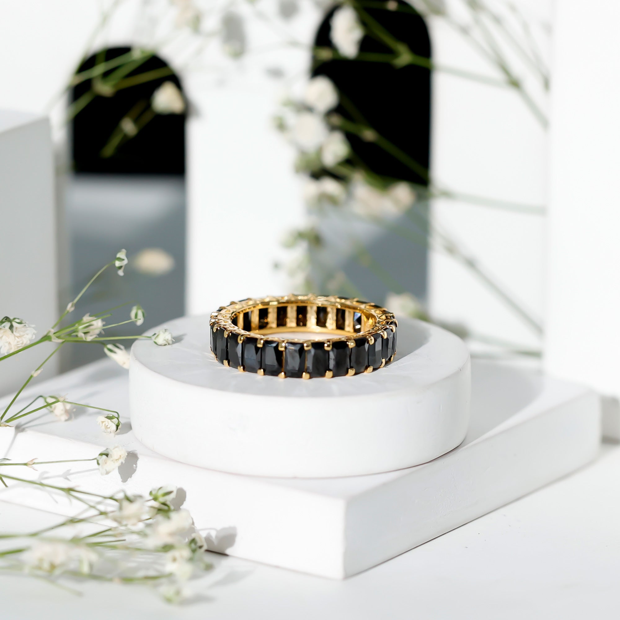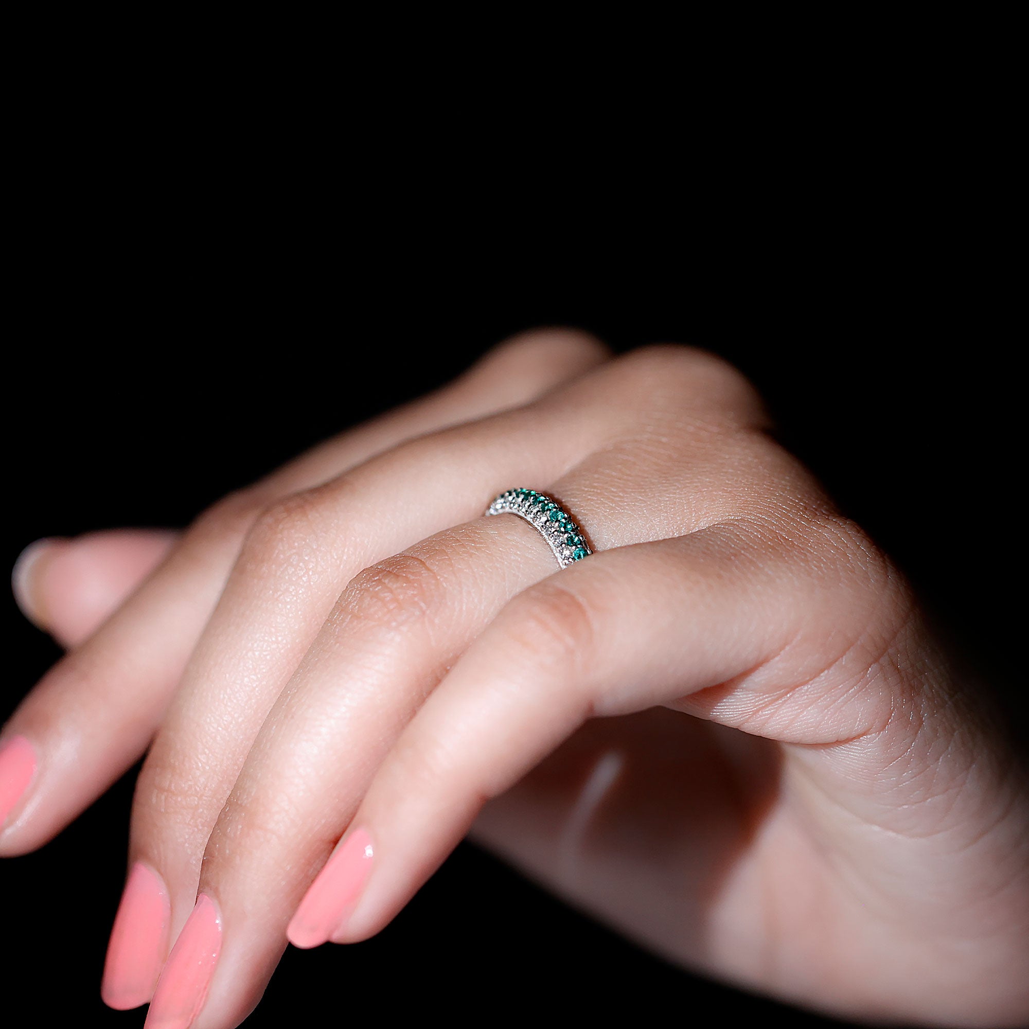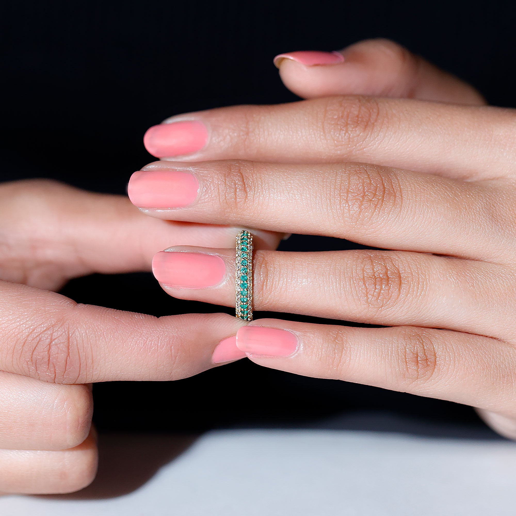 Typically, it is a type of metal ring that features gemstones set in a continuous band around the circumference of the ring. If you’re seeking something simple to flaunt regularly, a band with subtle colored stones such as Morganite, Aquamarine, Moissanite, or a Classic 14K White Gold Gemstone Band could be the one. While if you’re a little more fond of a pop of color, deeply hued stones such as Ruby, Blue Sapphire, Emerald etc., or a Yellow or Rose Gold Gemstone Band might do the job right.