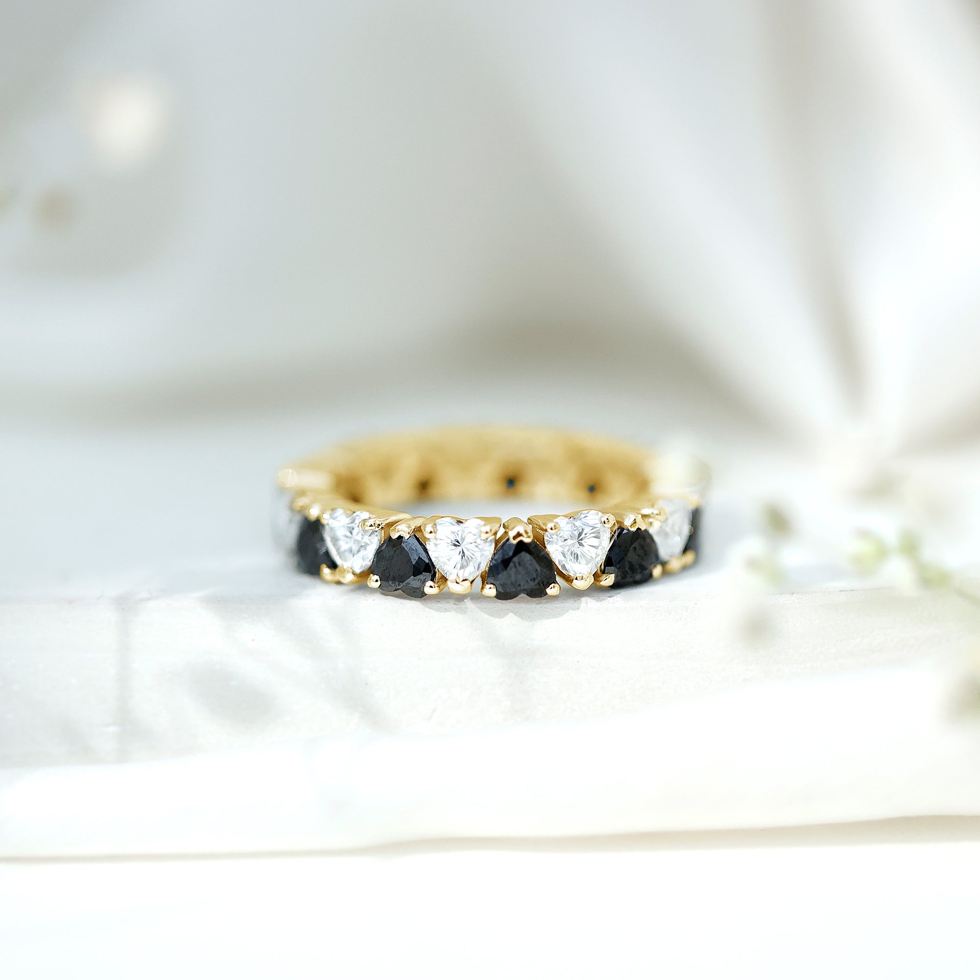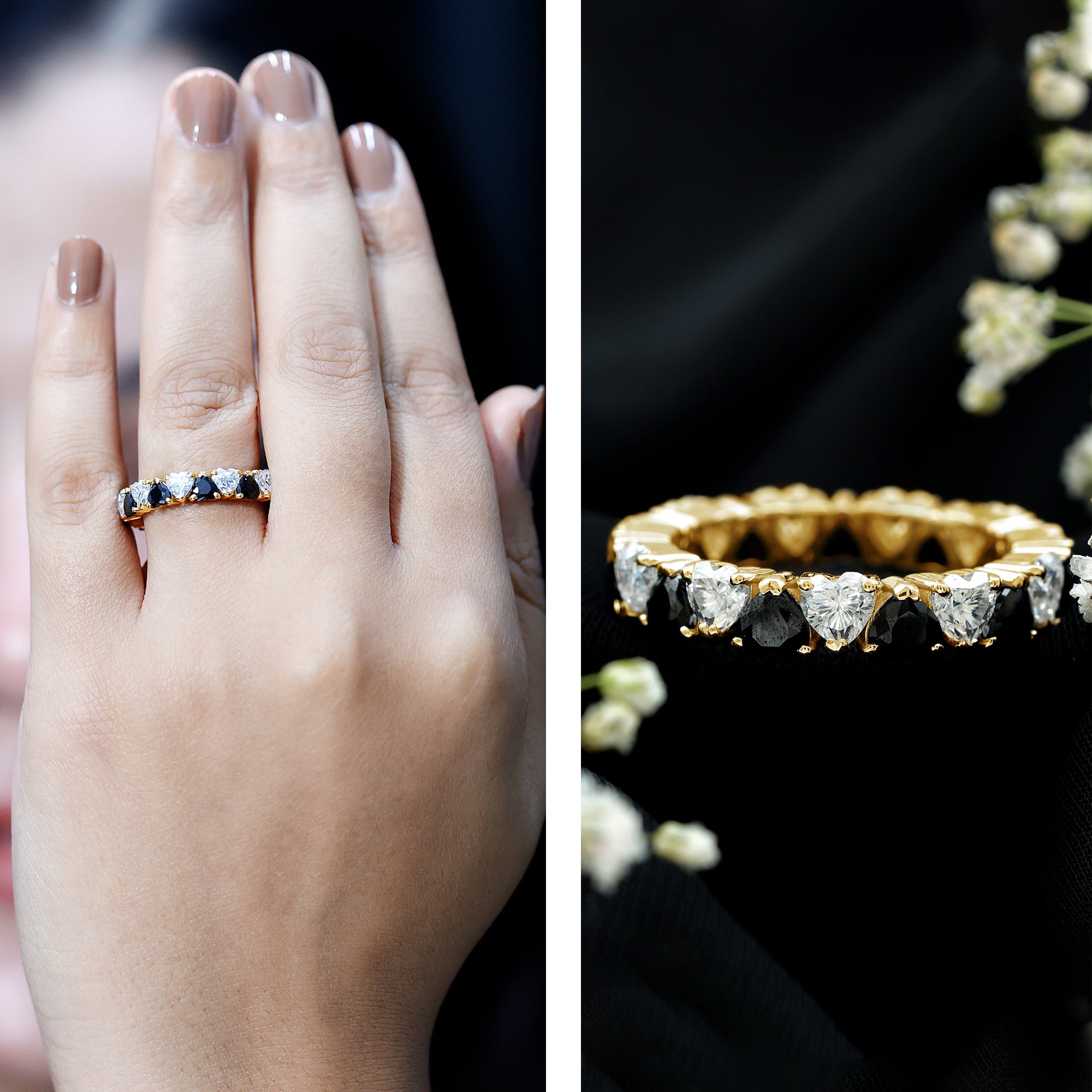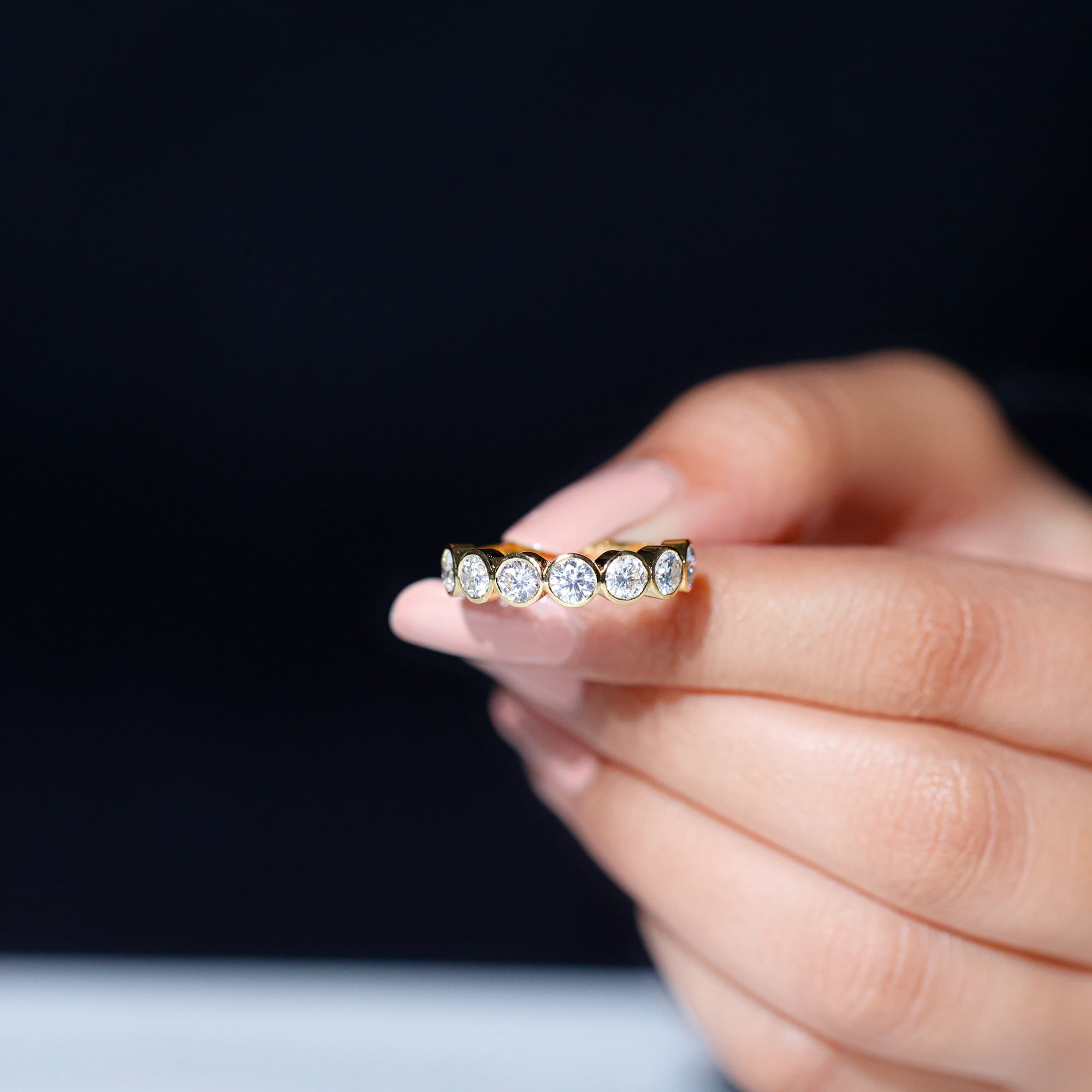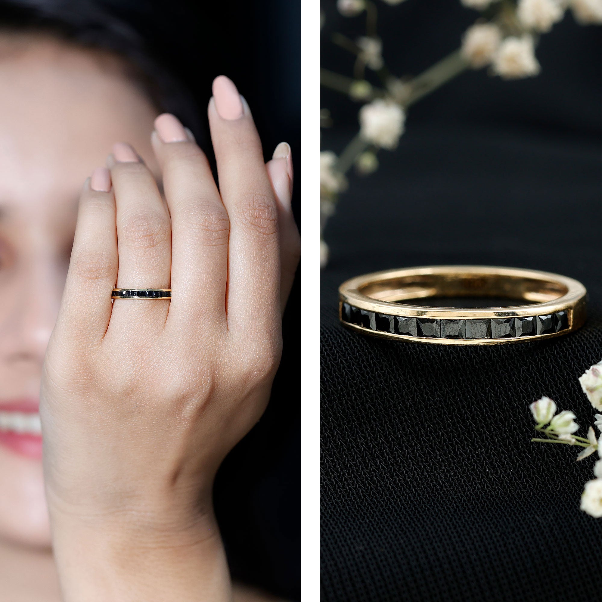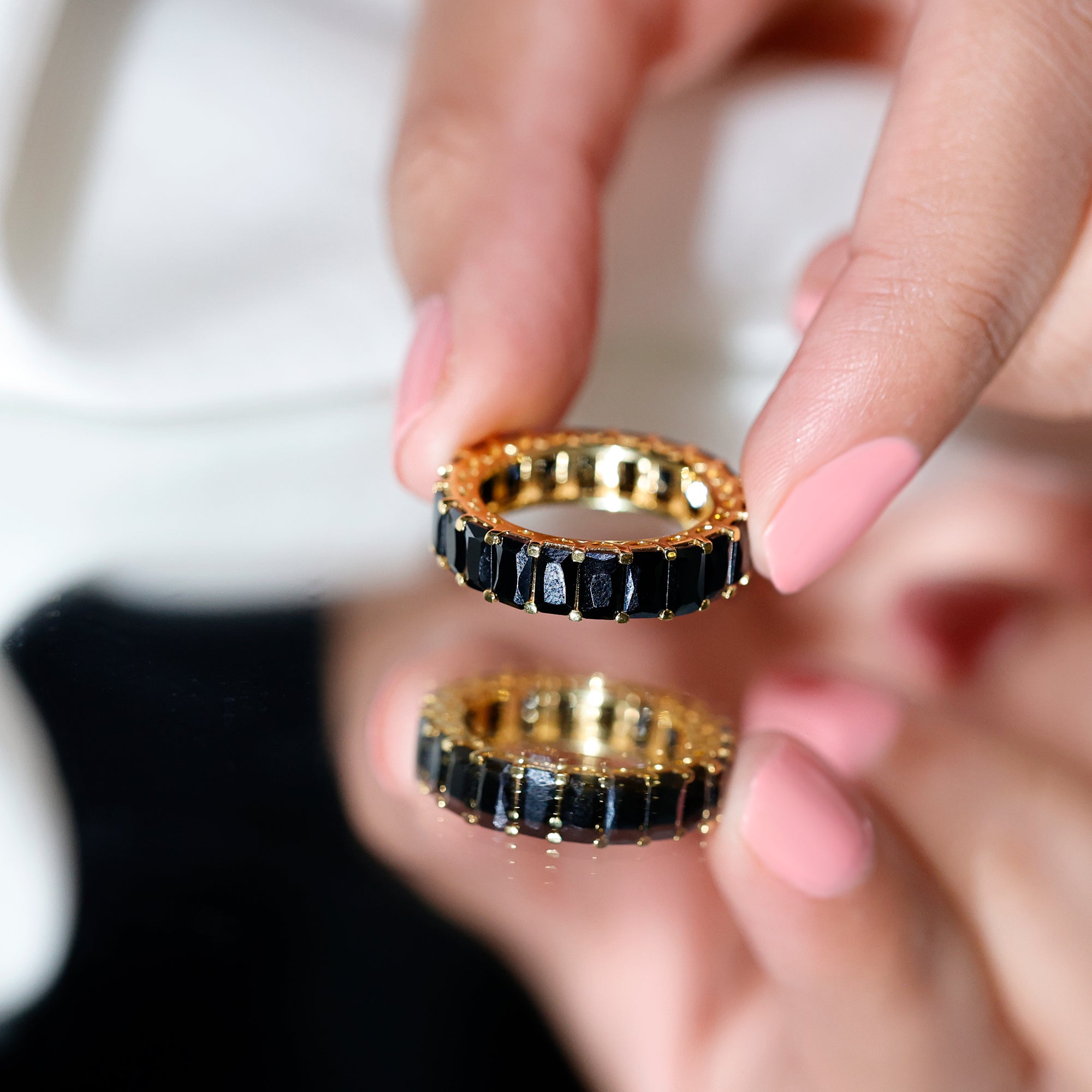 Typically, it is a type of metal ring that features gemstones set in a continuous band around the circumference of the ring. If you’re seeking something simple to flaunt regularly, a band with subtle colored stones such as Morganite, Aquamarine, Moissanite, or a Classic 14K White Gold Gemstone Band could be the one. While if you’re a little more fond of a pop of color, deeply hued stones such as Ruby, Blue Sapphire, Emerald etc., or a Yellow or Rose Gold Gemstone Band might do the job right.