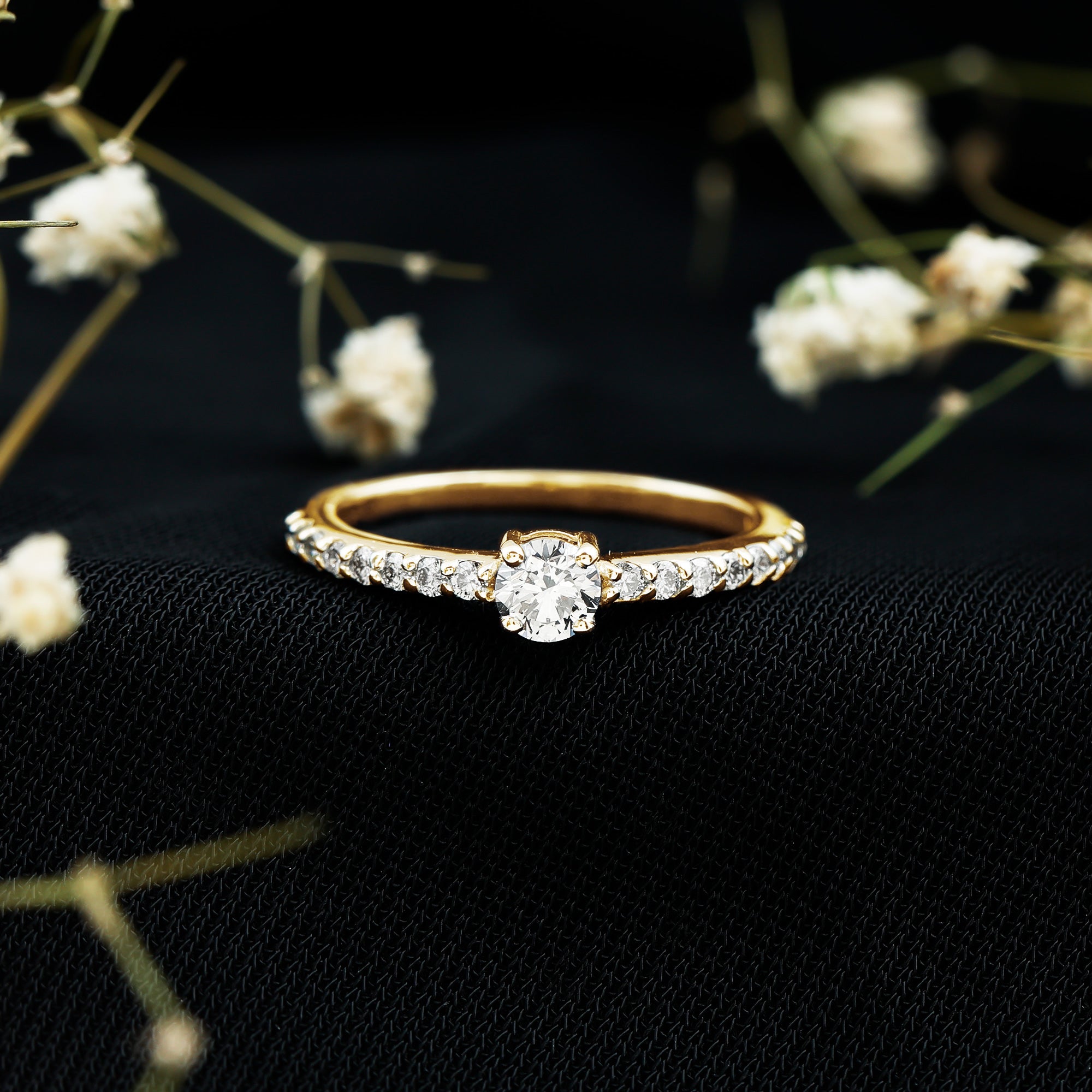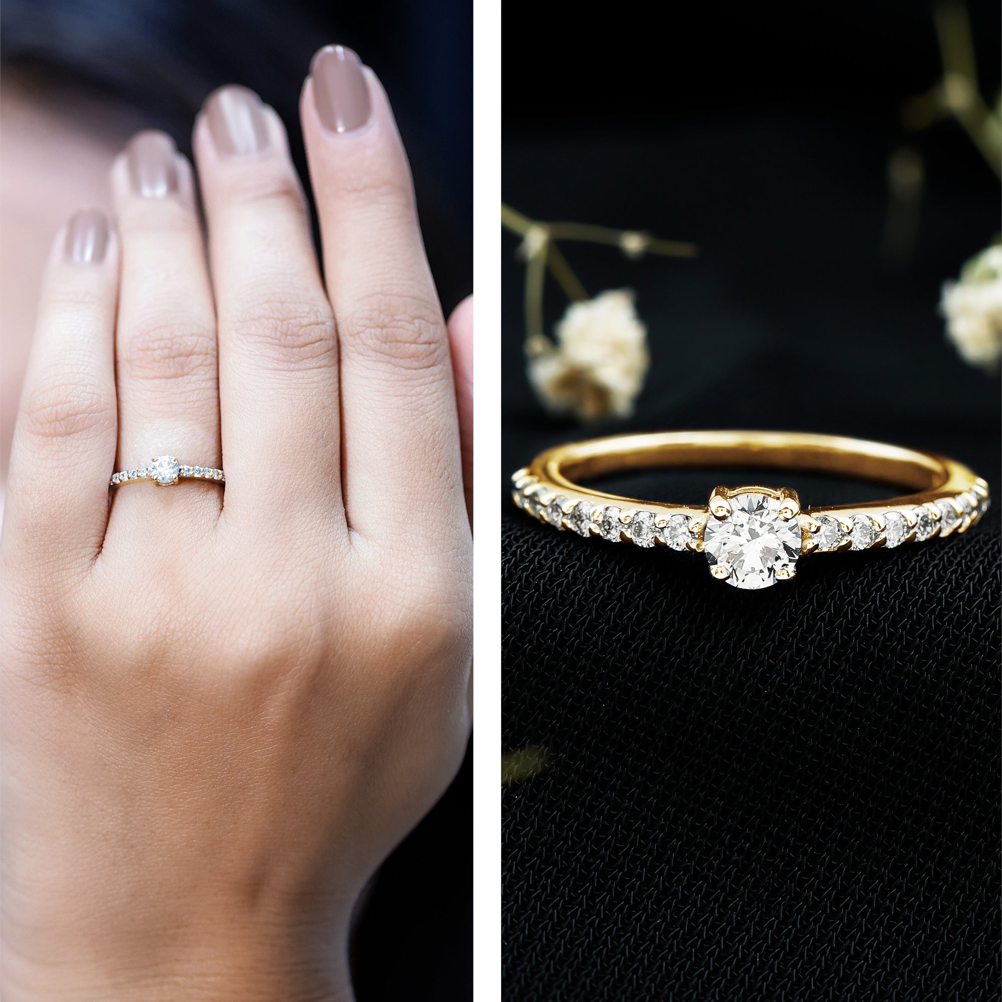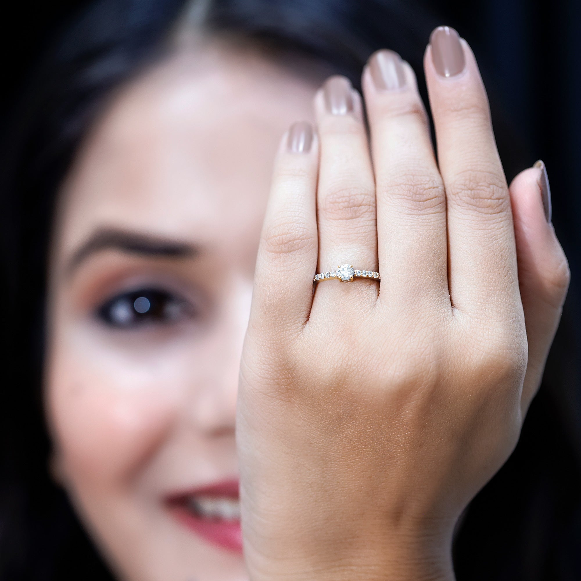 The Center Stone could be of the most traditional round shape or be on the fancier end of the spectrum (pear, marquise, etc.) or even ooze a vintage vibe (Asscher, emerald, etc). You’d be surprised to note what big a difference the shape plays in defining the aesthetics of your Solitaire Ring. The options are endless and everything ultimately boils down to your preference.