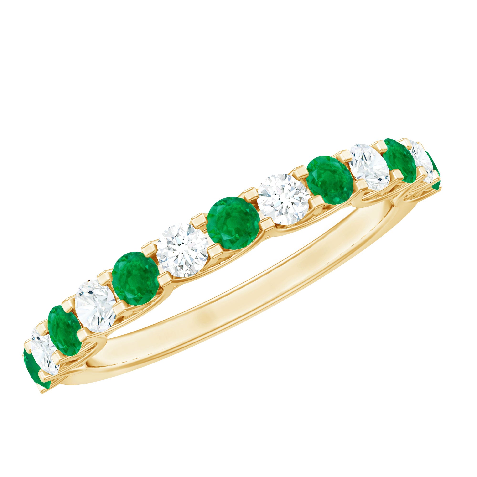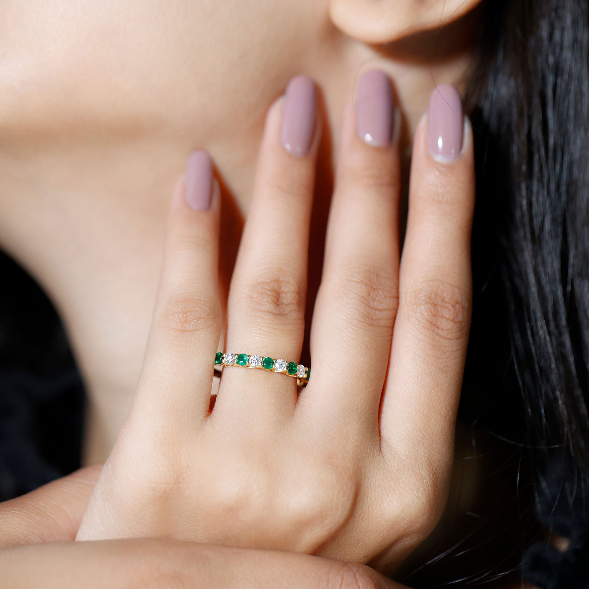 Typically, it is a type of metal ring that features gemstones set in a continuous band around the circumference of the ring. If you’re seeking something simple to flaunt regularly, a band with subtle colored stones such as Morganite, Aquamarine, Moissanite, or a Classic 14K White Gold Gemstone Band could be the one. While if you’re a little more fond of a pop of color, deeply hued stones such as Ruby, Blue Sapphire, Emerald etc., or a Yellow or Rose Gold Gemstone Band might do the job right.