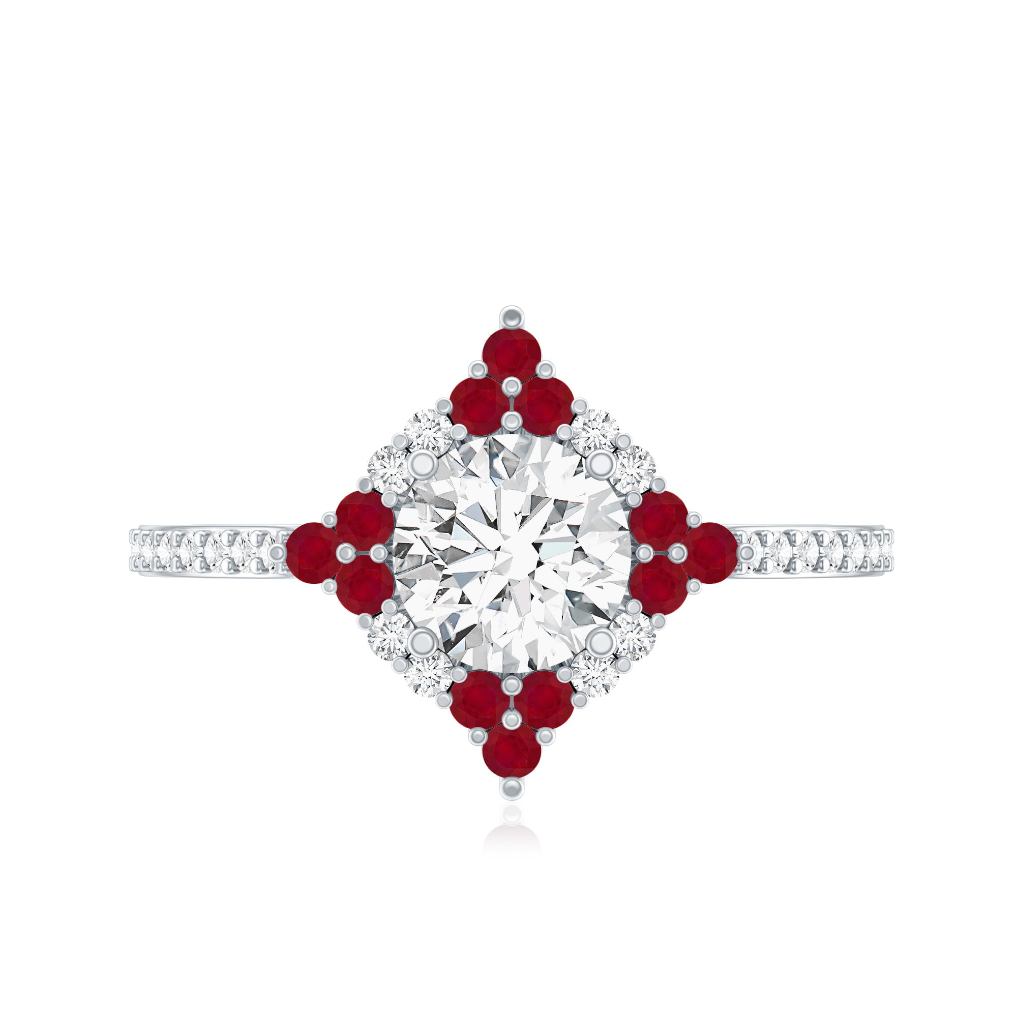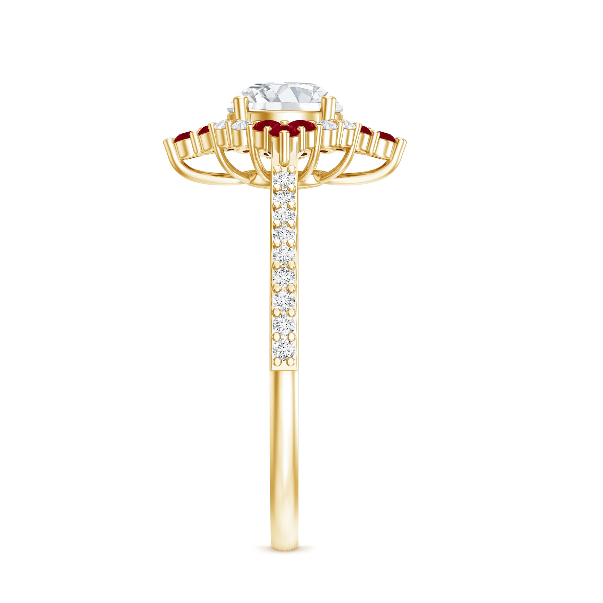 An added layer of sparkle is always a big yes! And that’s practically what drives the appeal for Gemstone Halo Rings. That’s because this style is all about sparkles and is characterized by a row of petite stones (usually diamond or moissanite) that encircle the center stone. Also, a pop of color of a colored gemstone accompanied by brilliance of diamonds/moissanite can get too hard to resist.